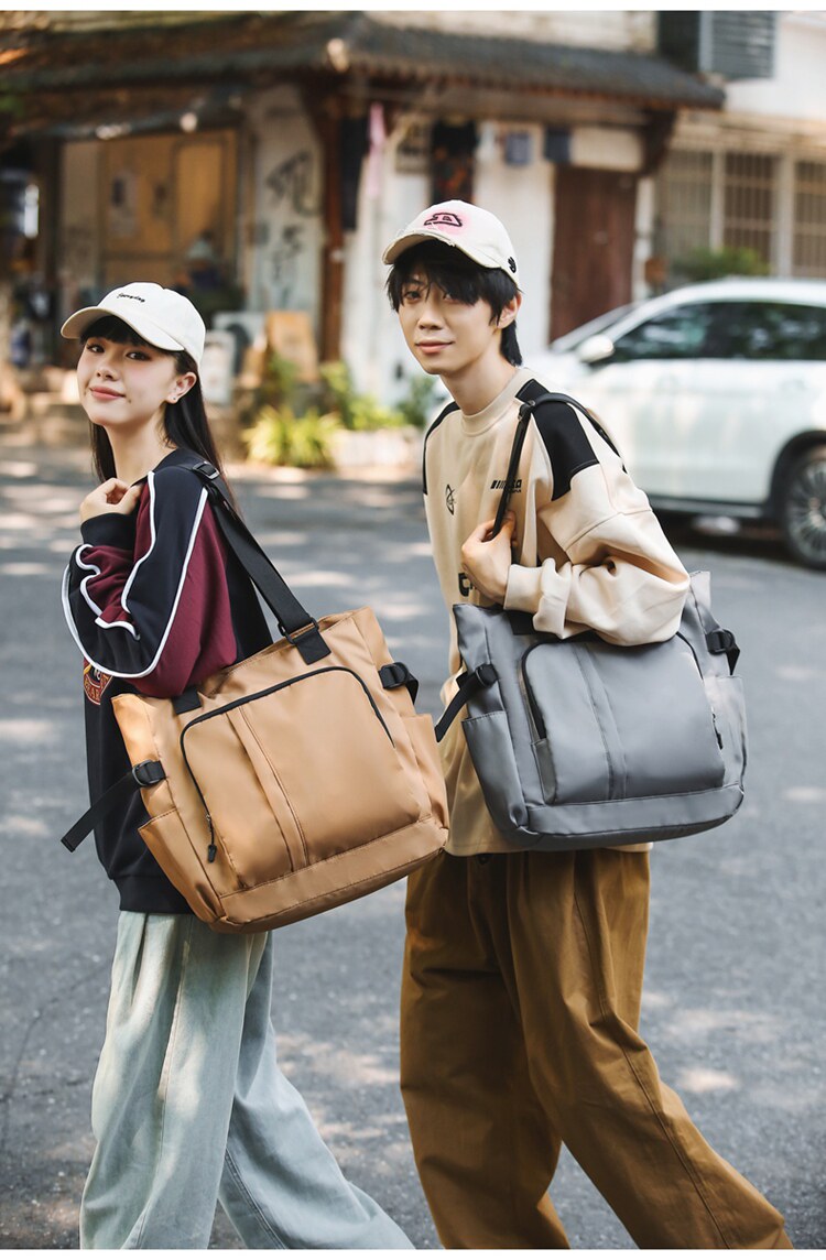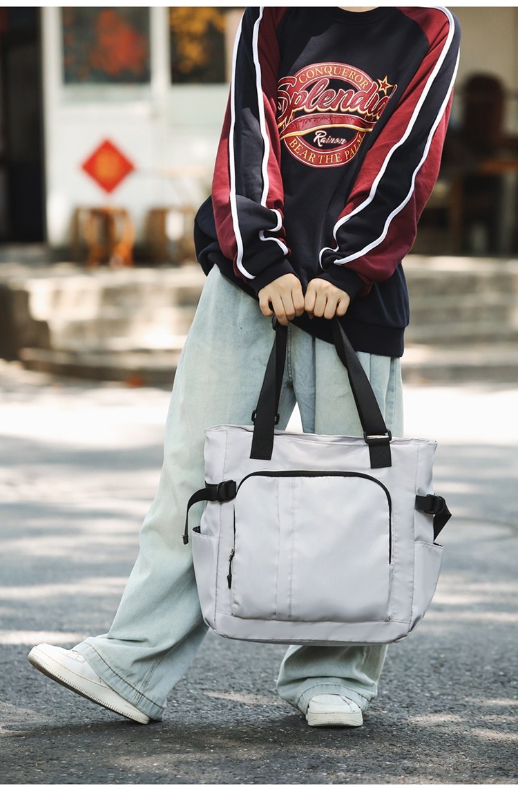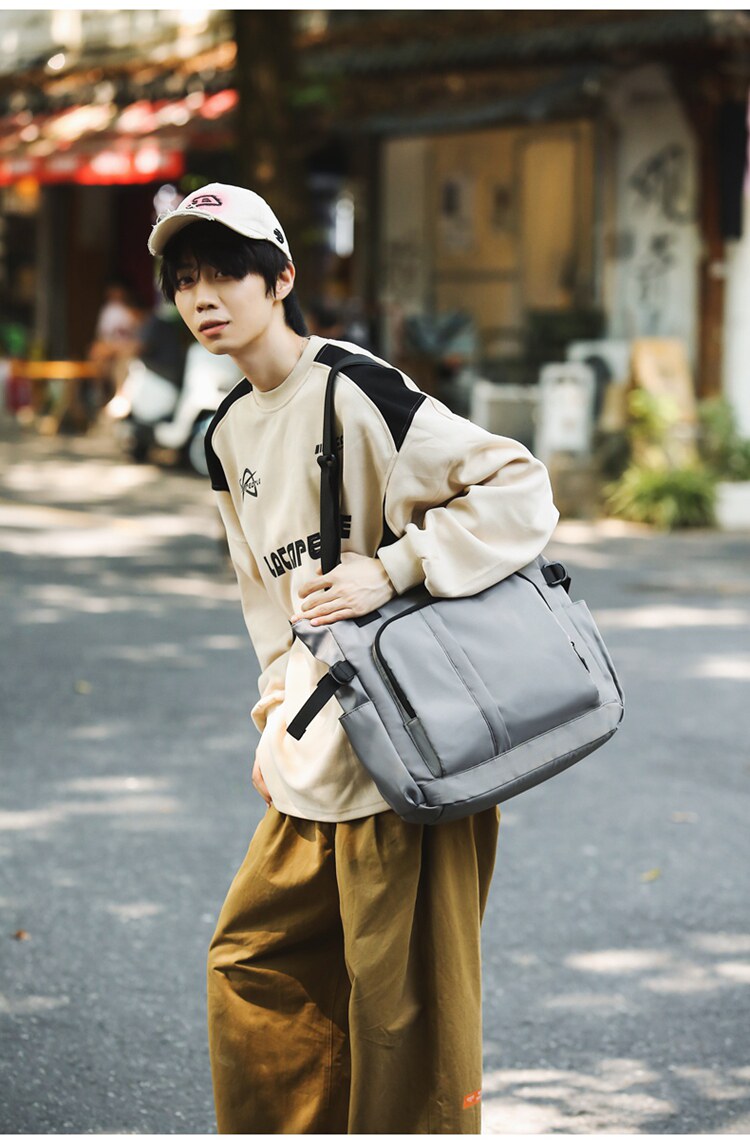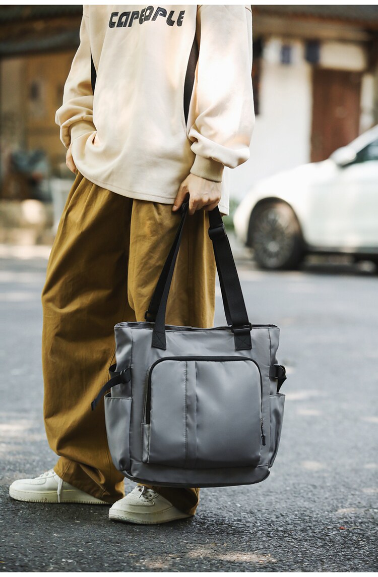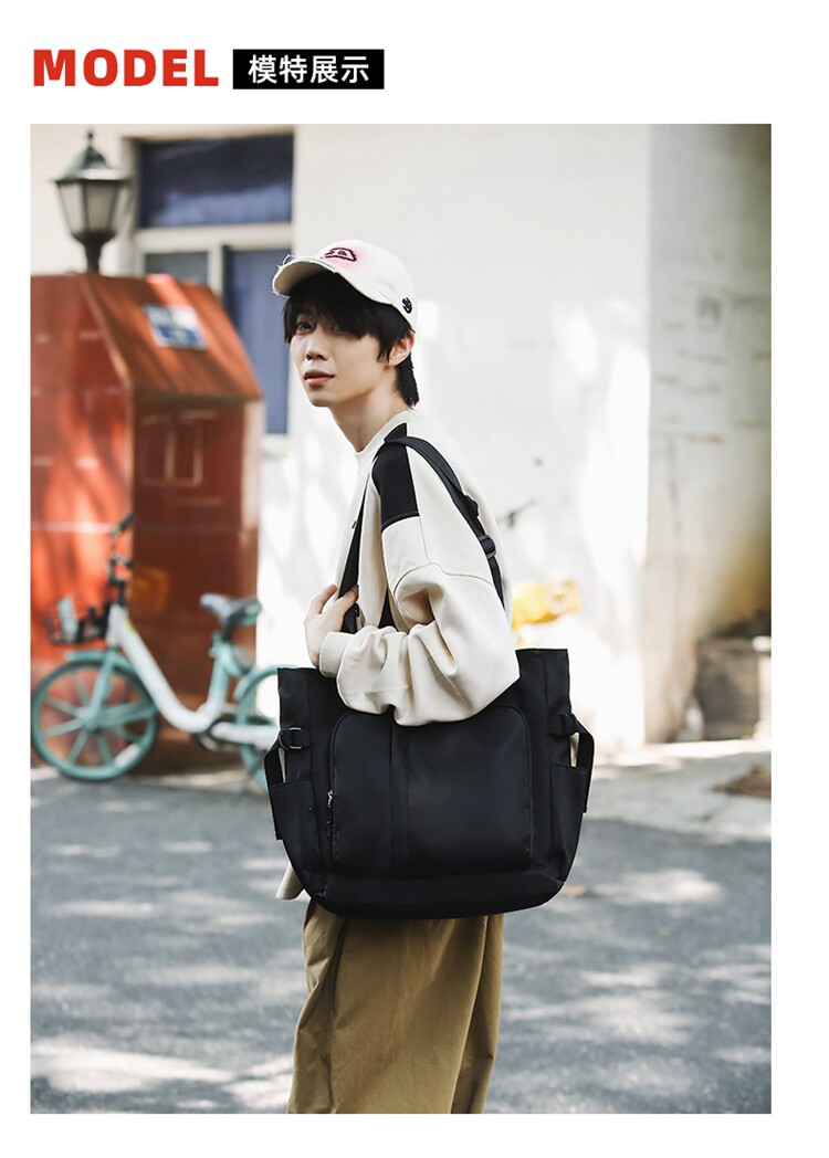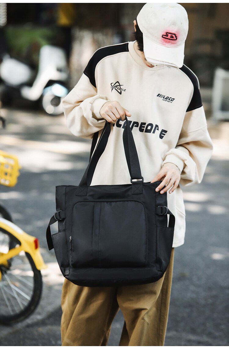 單肩包男潮牌機能通勤托特包大容量手提健身包乾濕分離學生補課包