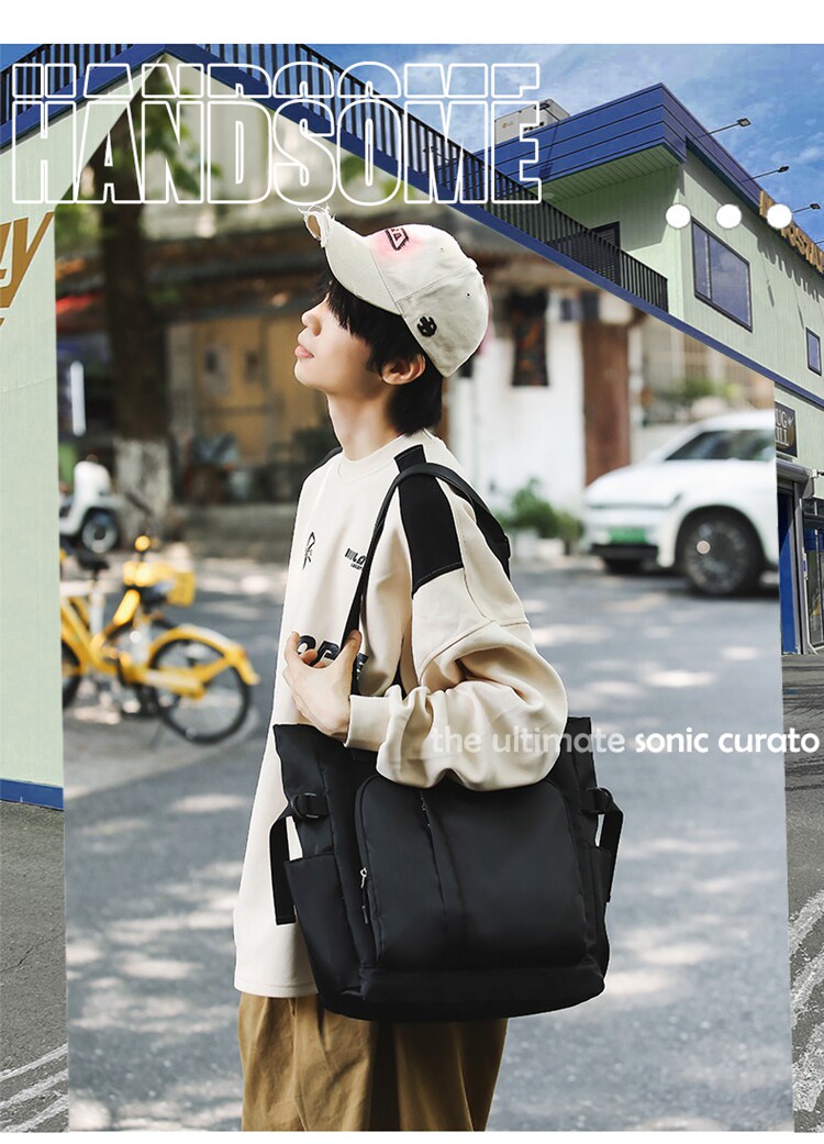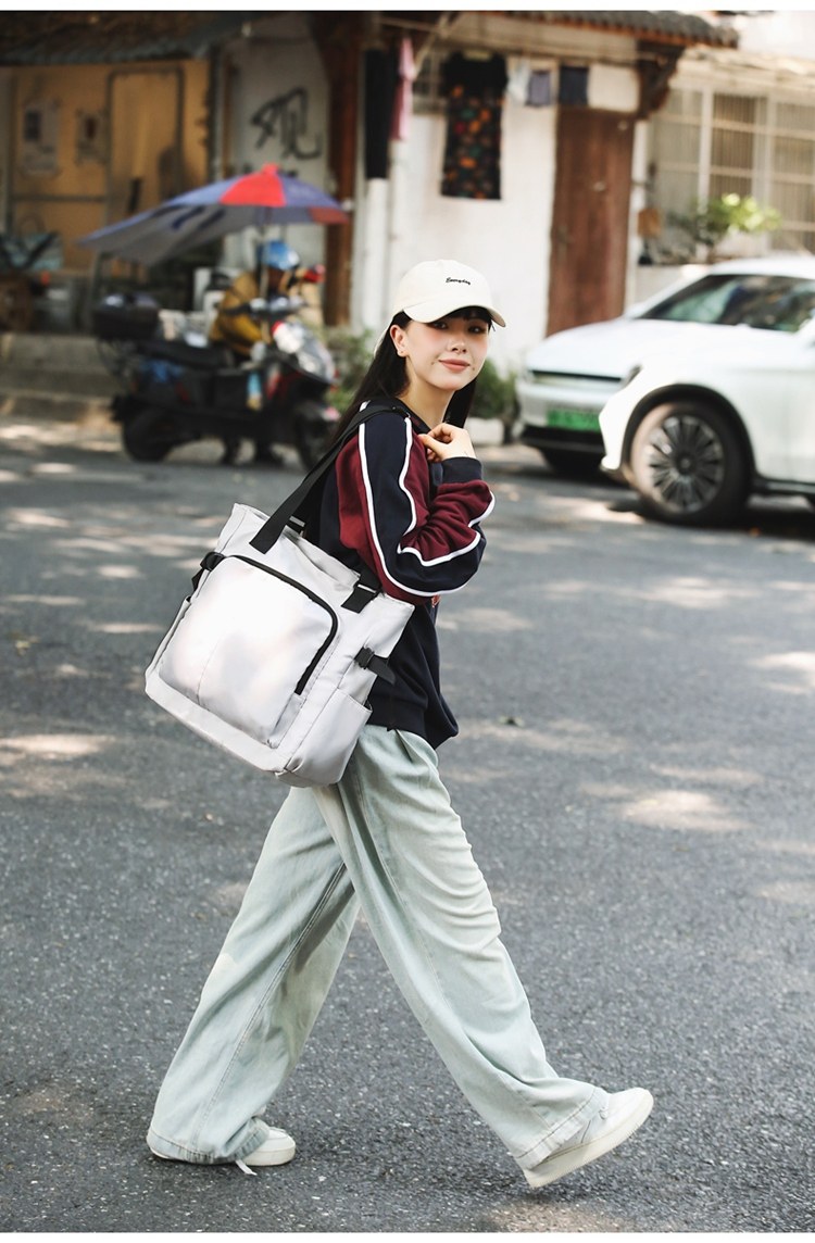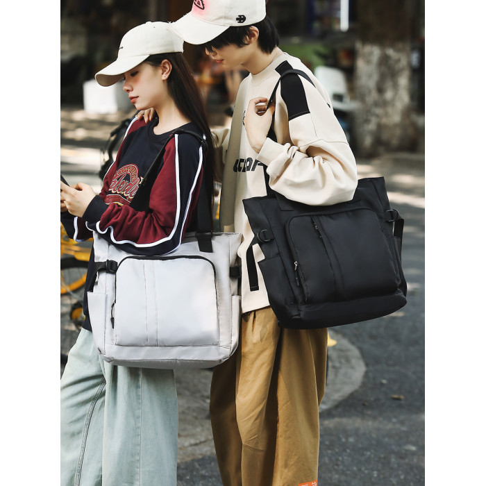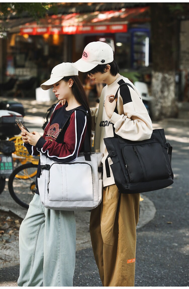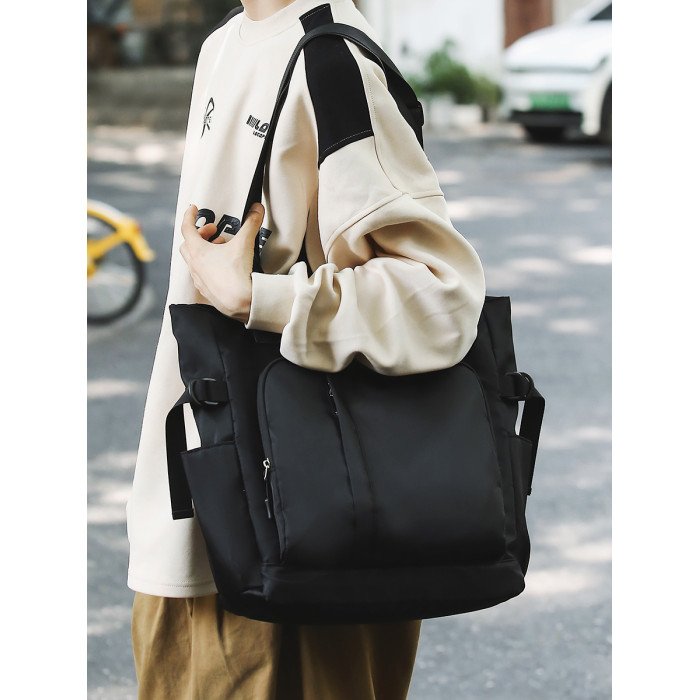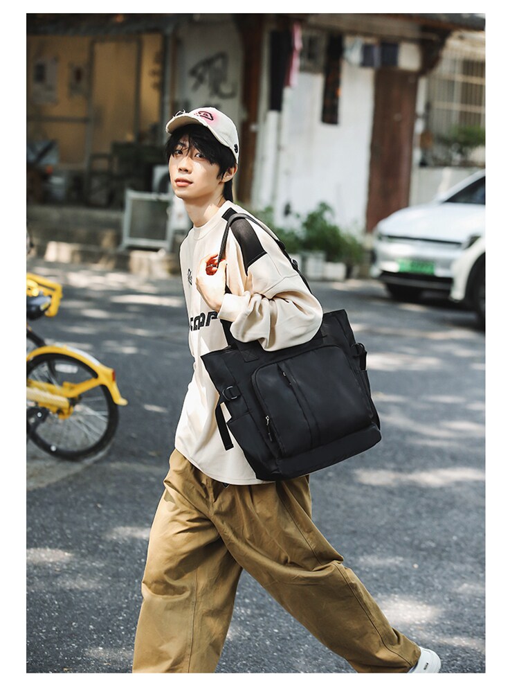 單肩包男潮牌機能通勤托特包大容量手提健身包乾濕分離學生補課包