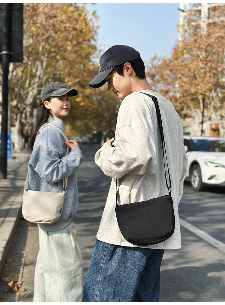 情侶款尼龍布休閒小包包女2025新款高級感簡約時尚斜後後背包單肩包女