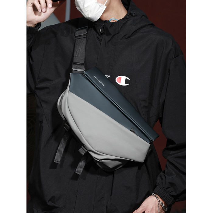 斜後後背包男款機能潮牌胸包騎行包男士運動機車後後背包通勤郵差包單肩包