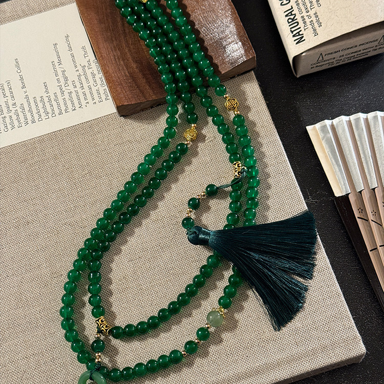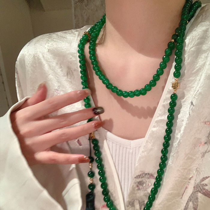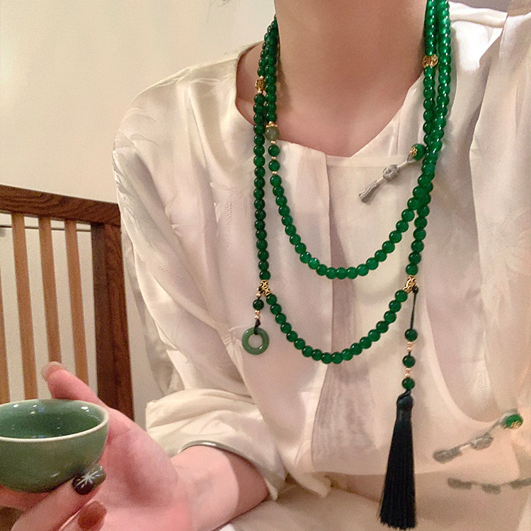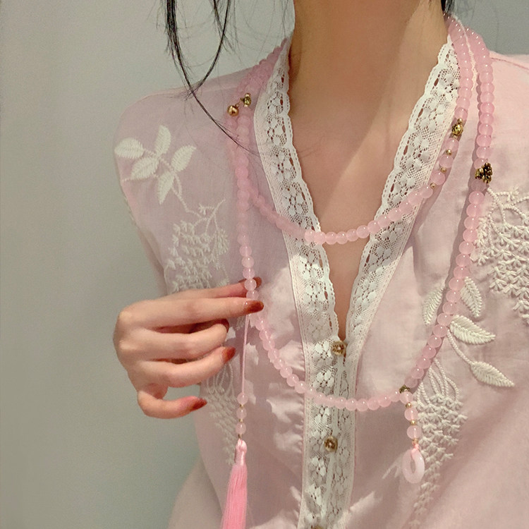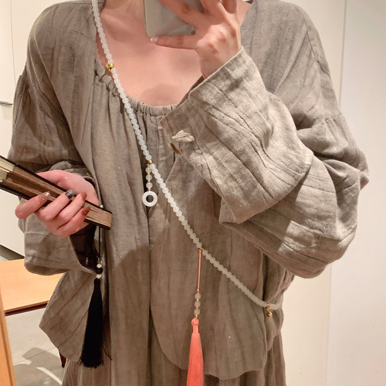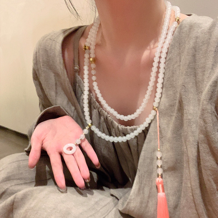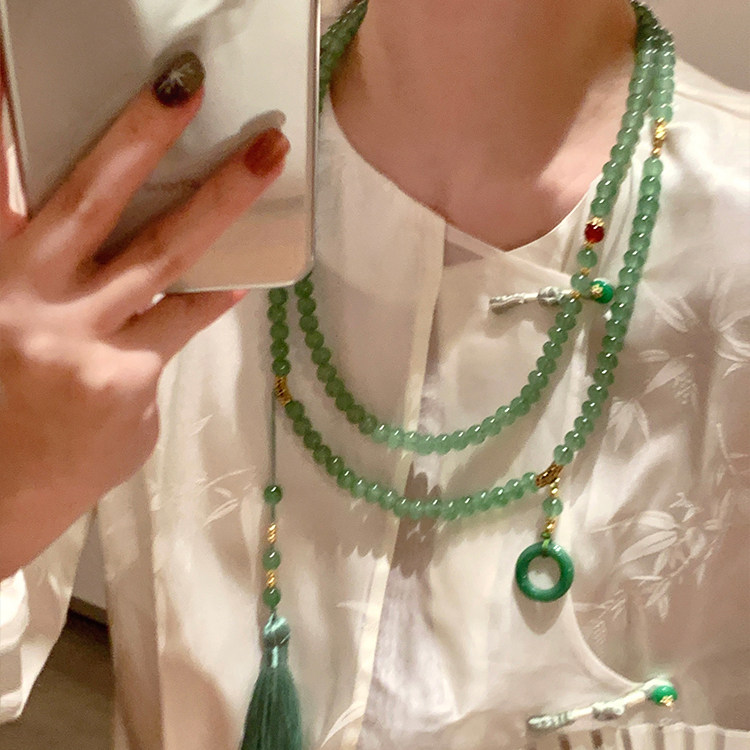 新中式平安釦流蘇串珠斜背鏈長款項鍊國風古風配飾女旗袍復古瓔珞