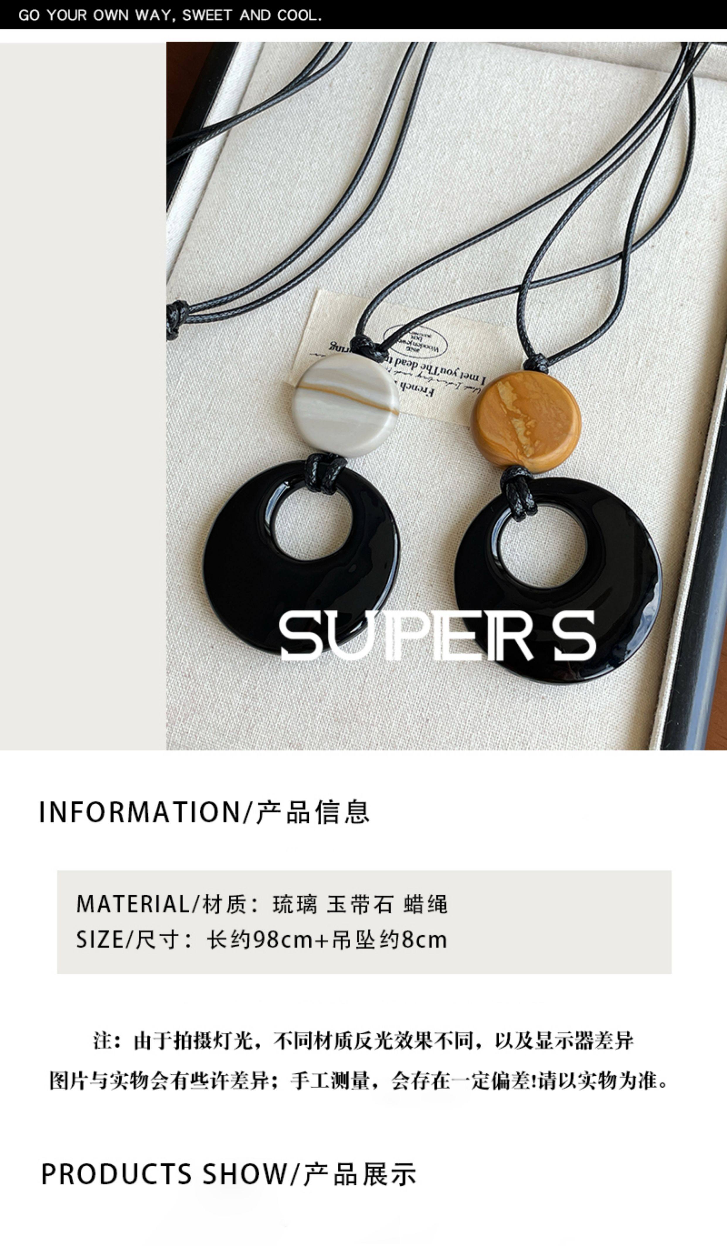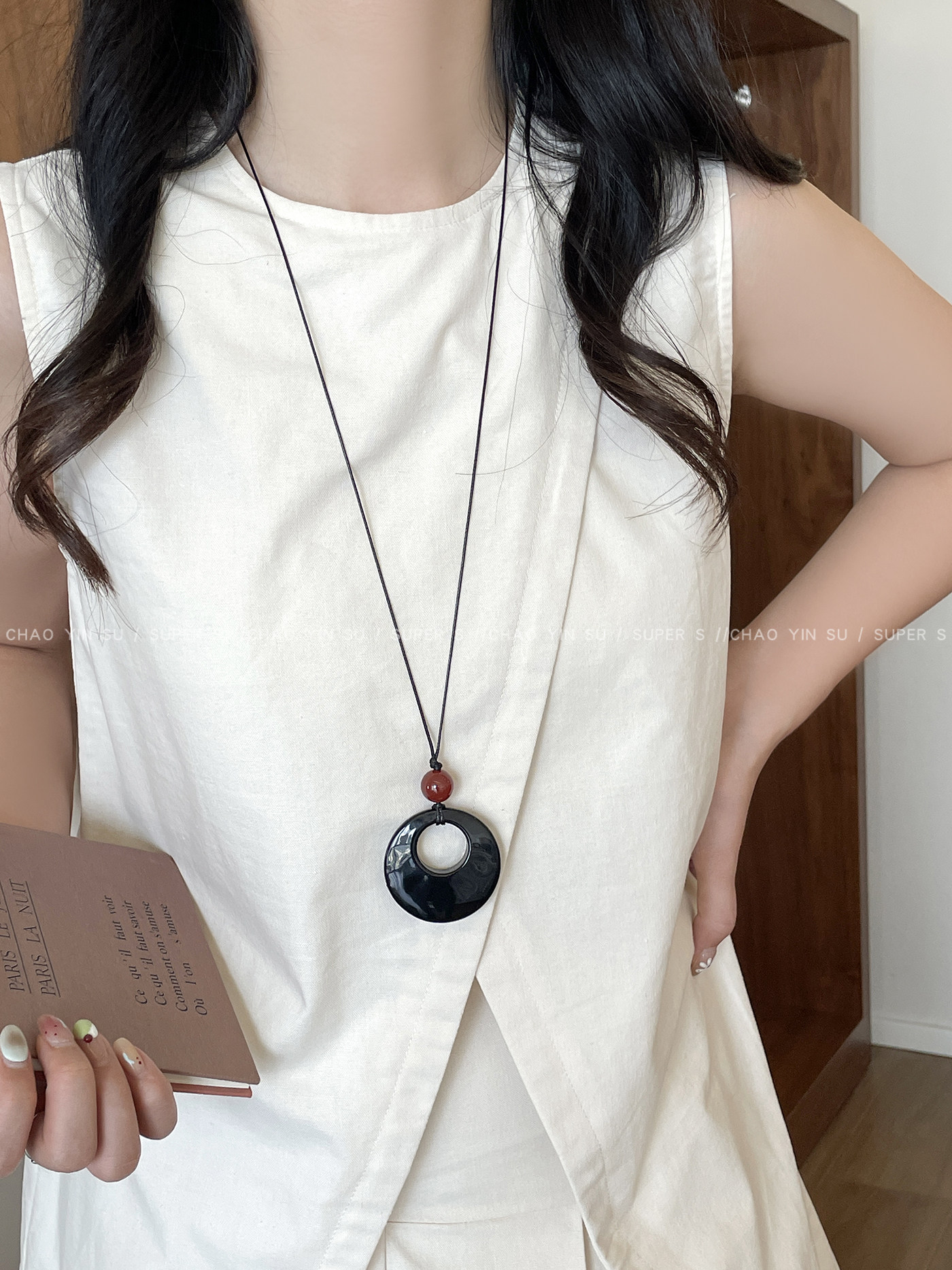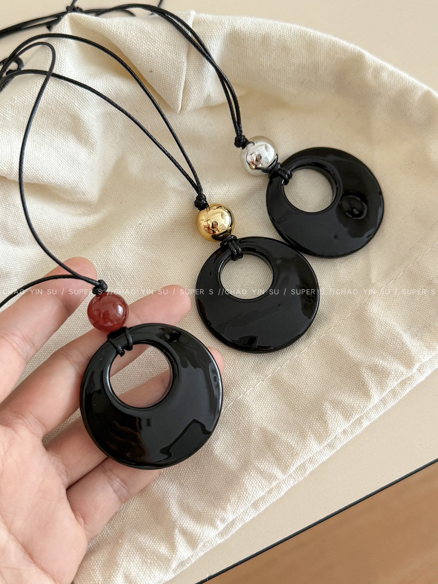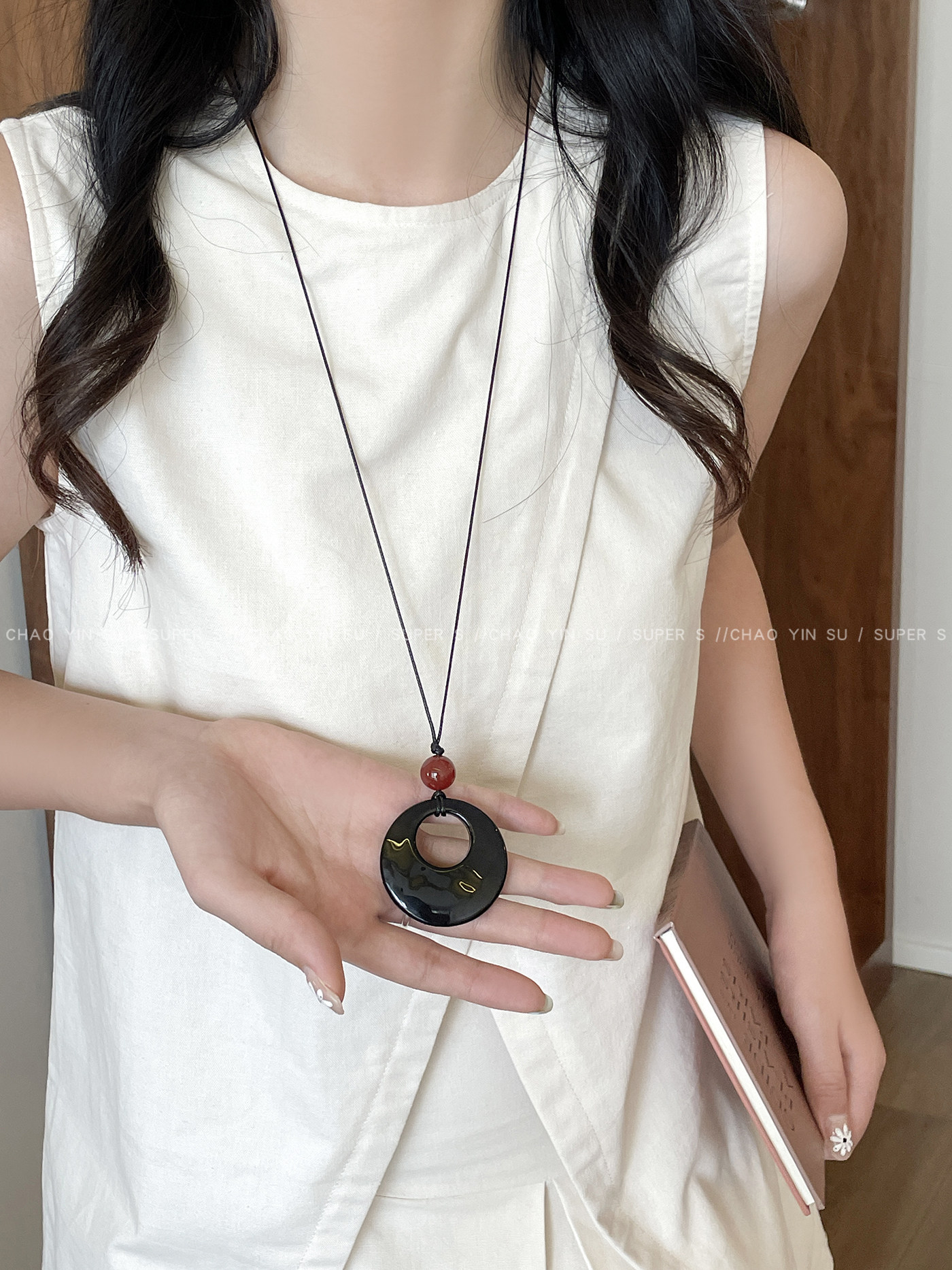 長款黑琉璃圓環吊墜項鍊女復古秋冬高級感掛件配飾輕奢毛衣鏈掛飾