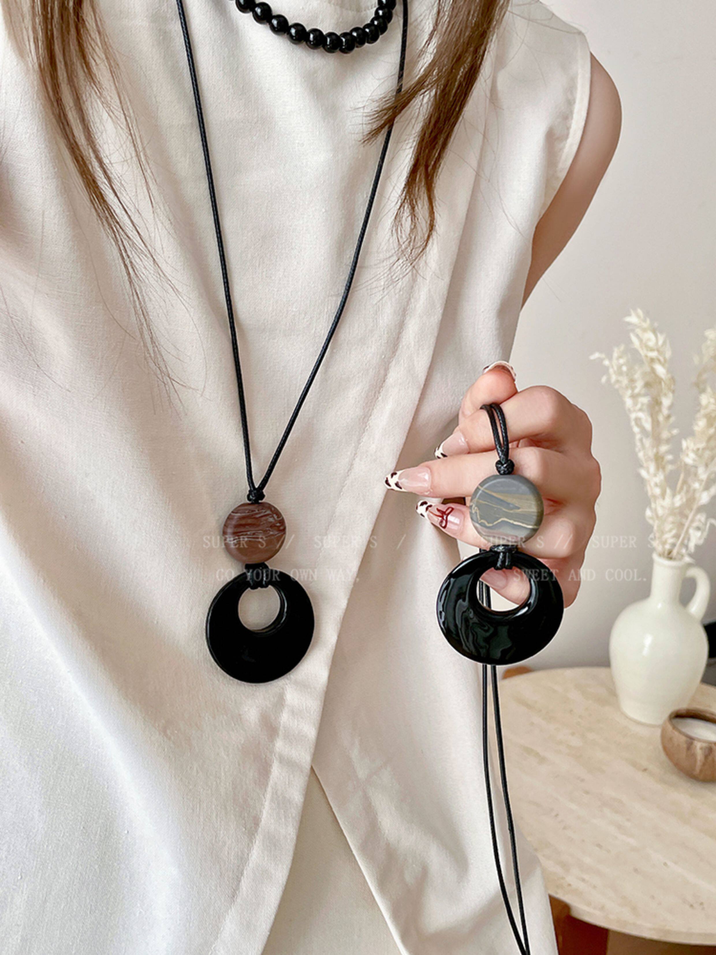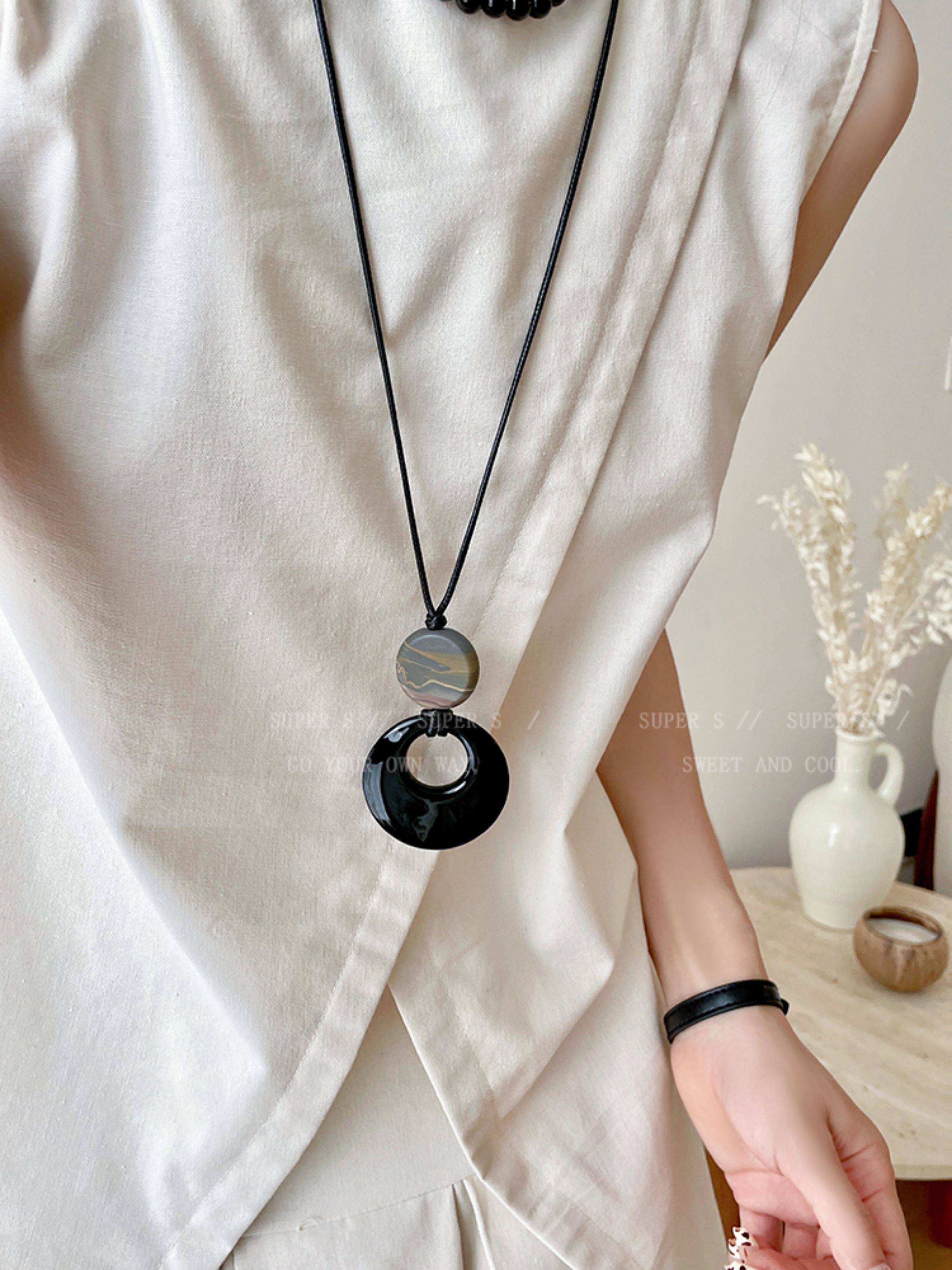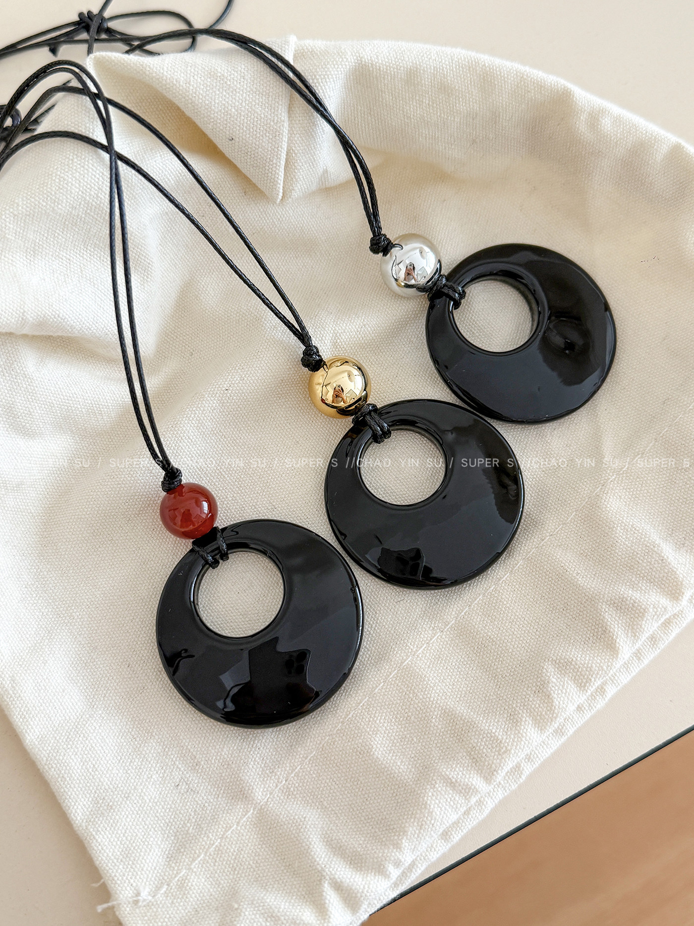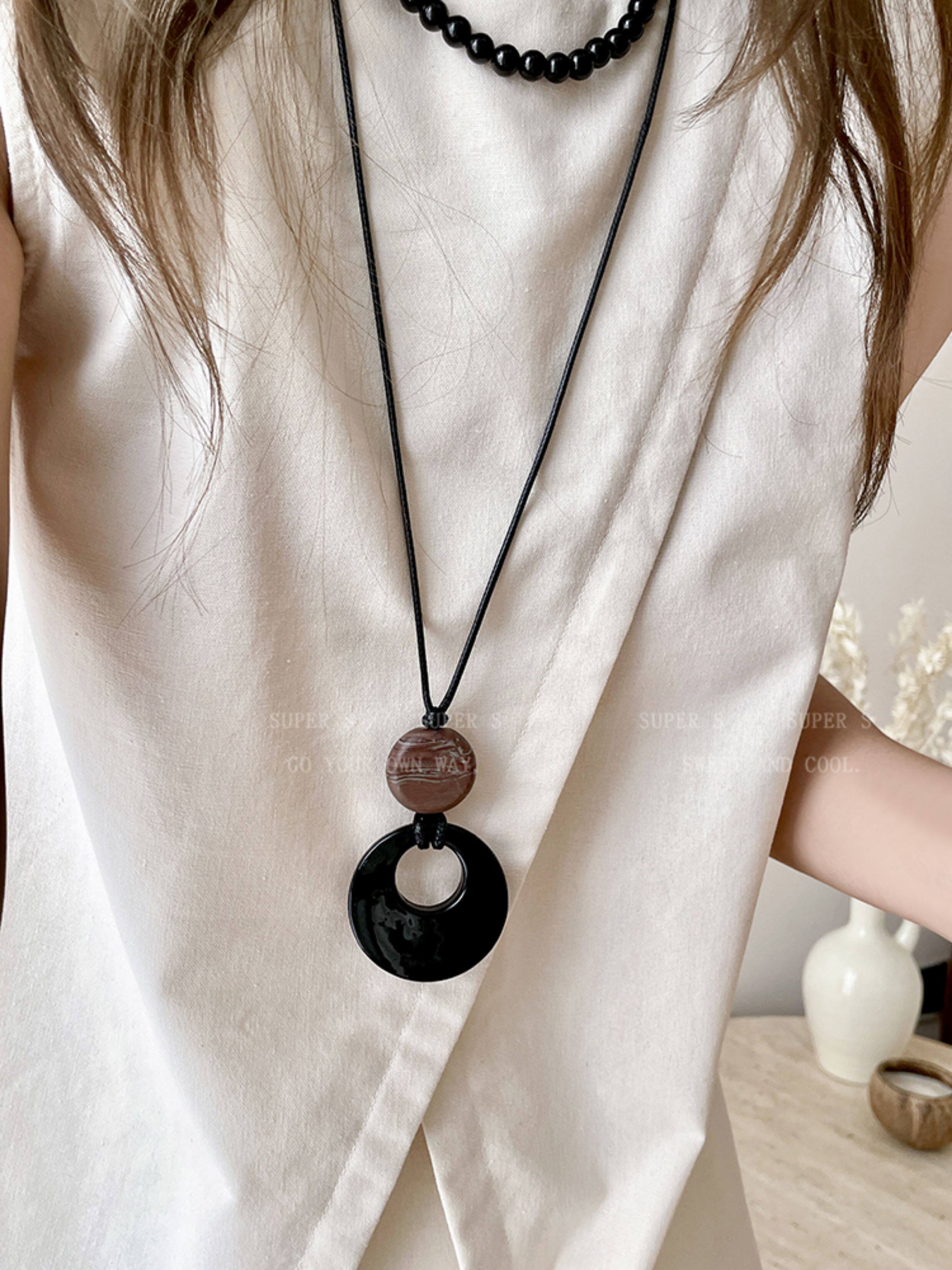 長款黑琉璃圓環吊墜項鍊女復古秋冬高級感掛件配飾輕奢毛衣鏈掛飾