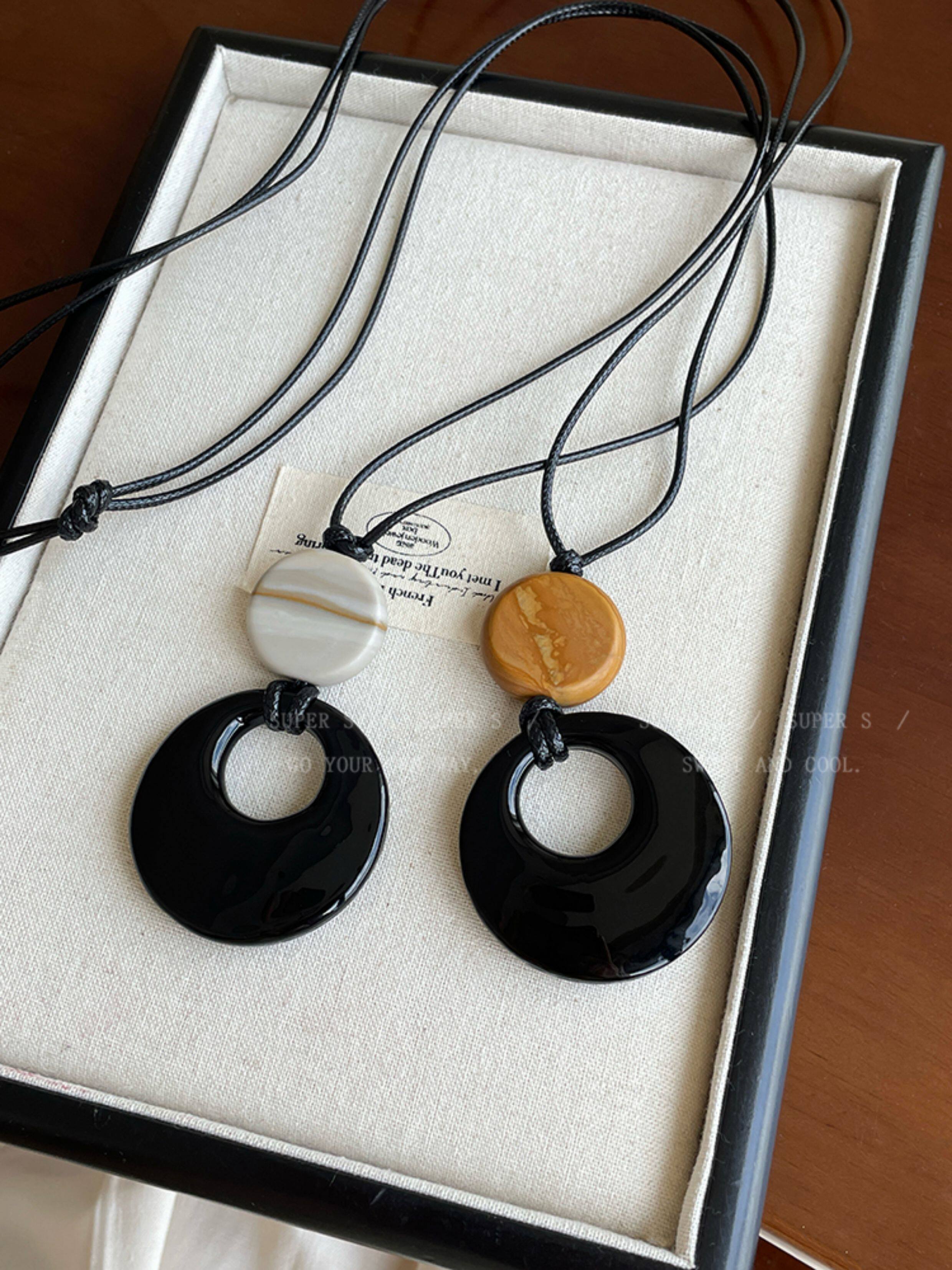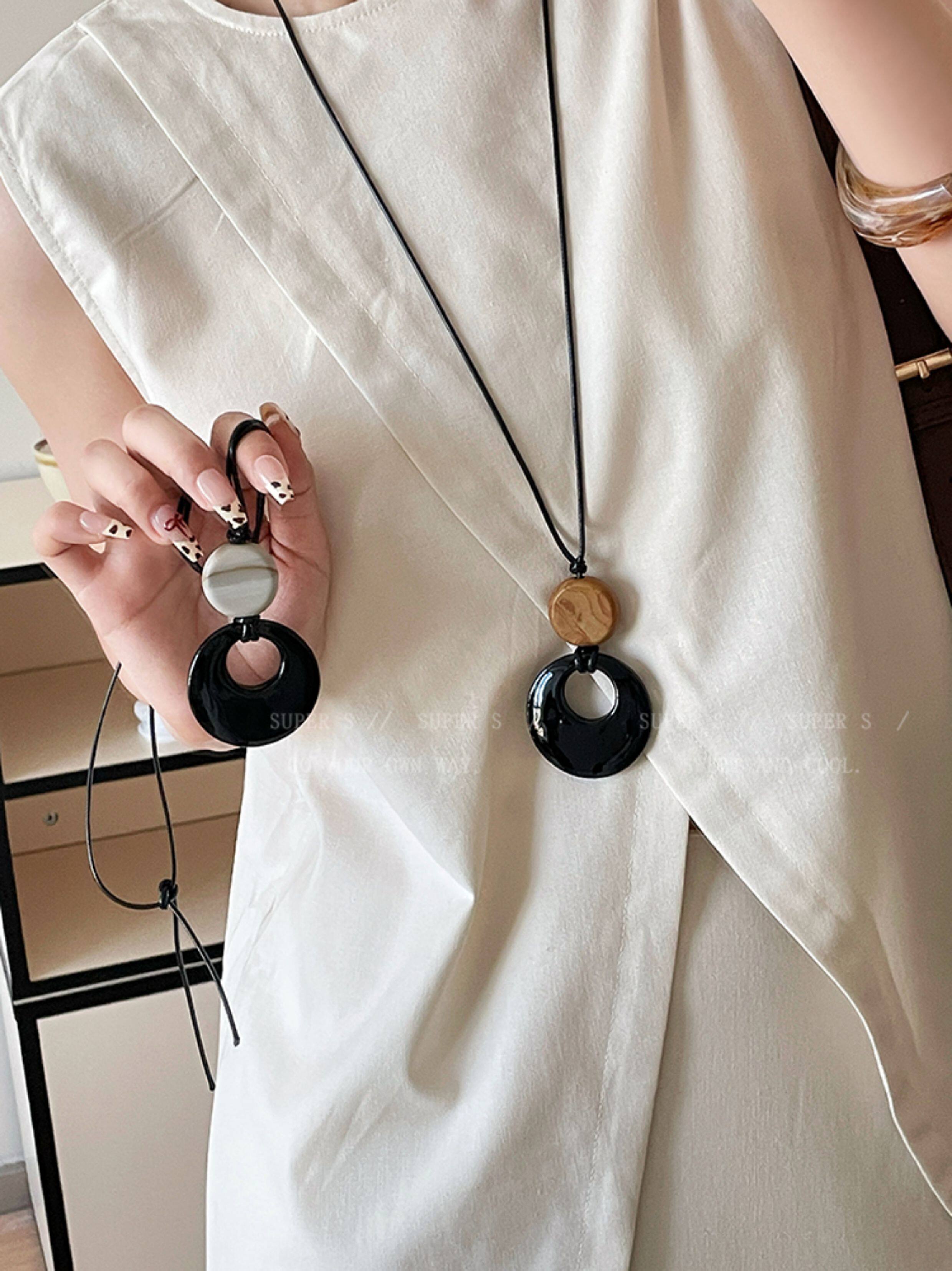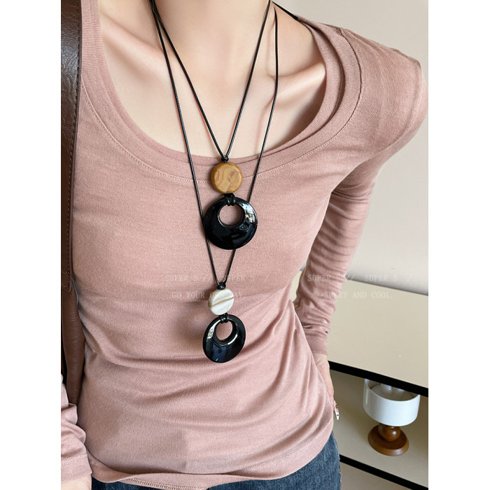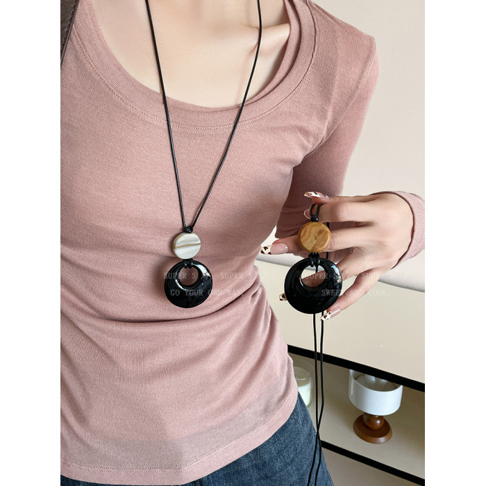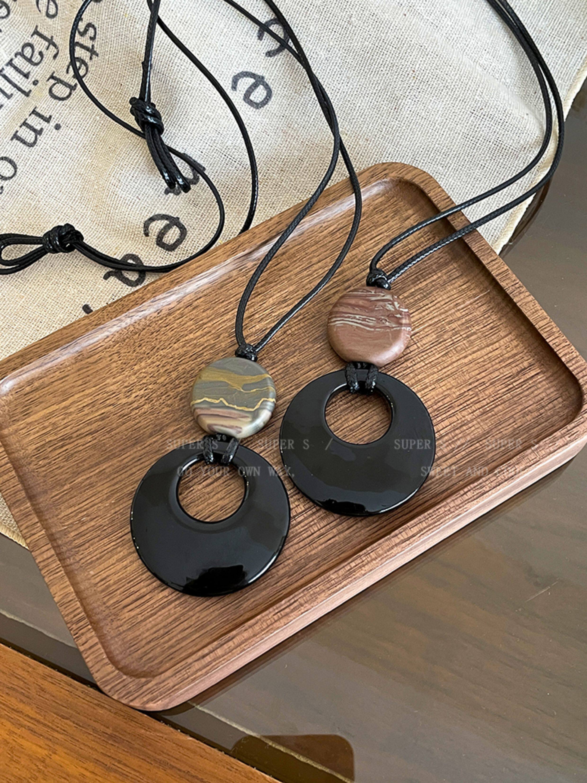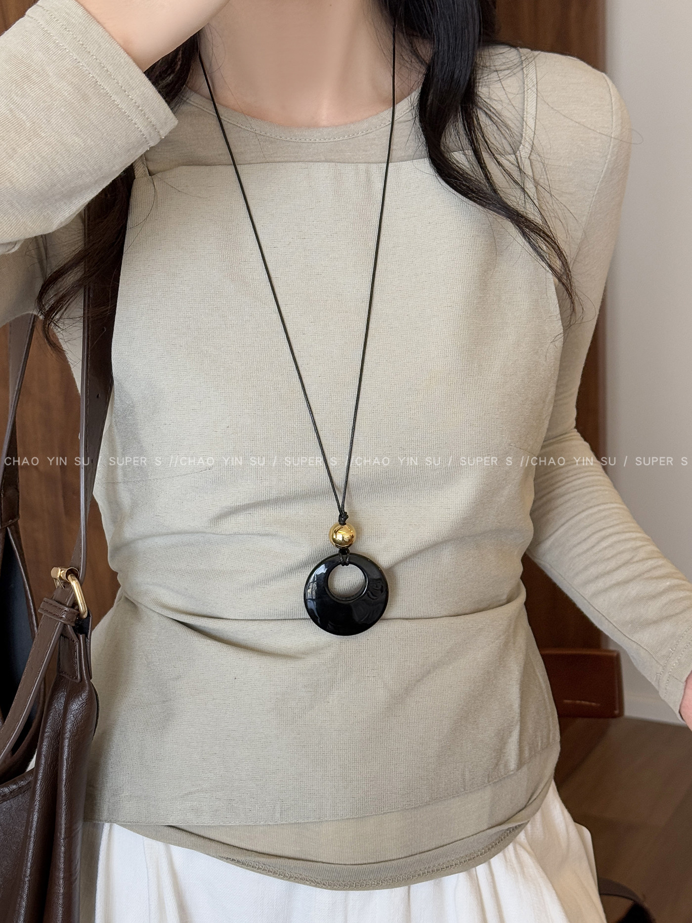 長款黑琉璃圓環吊墜項鍊女復古秋冬高級感掛件配飾輕奢毛衣鏈掛飾
