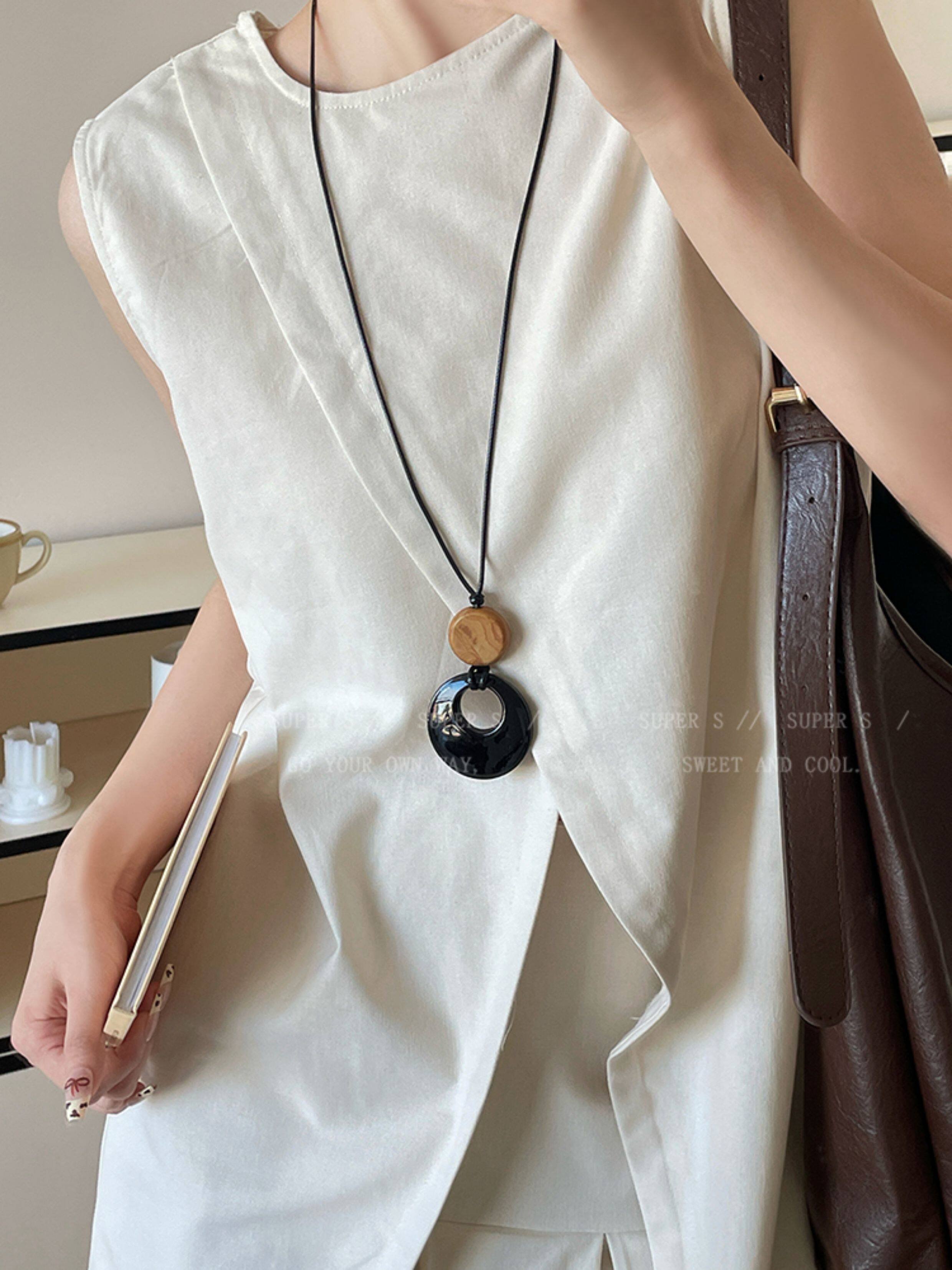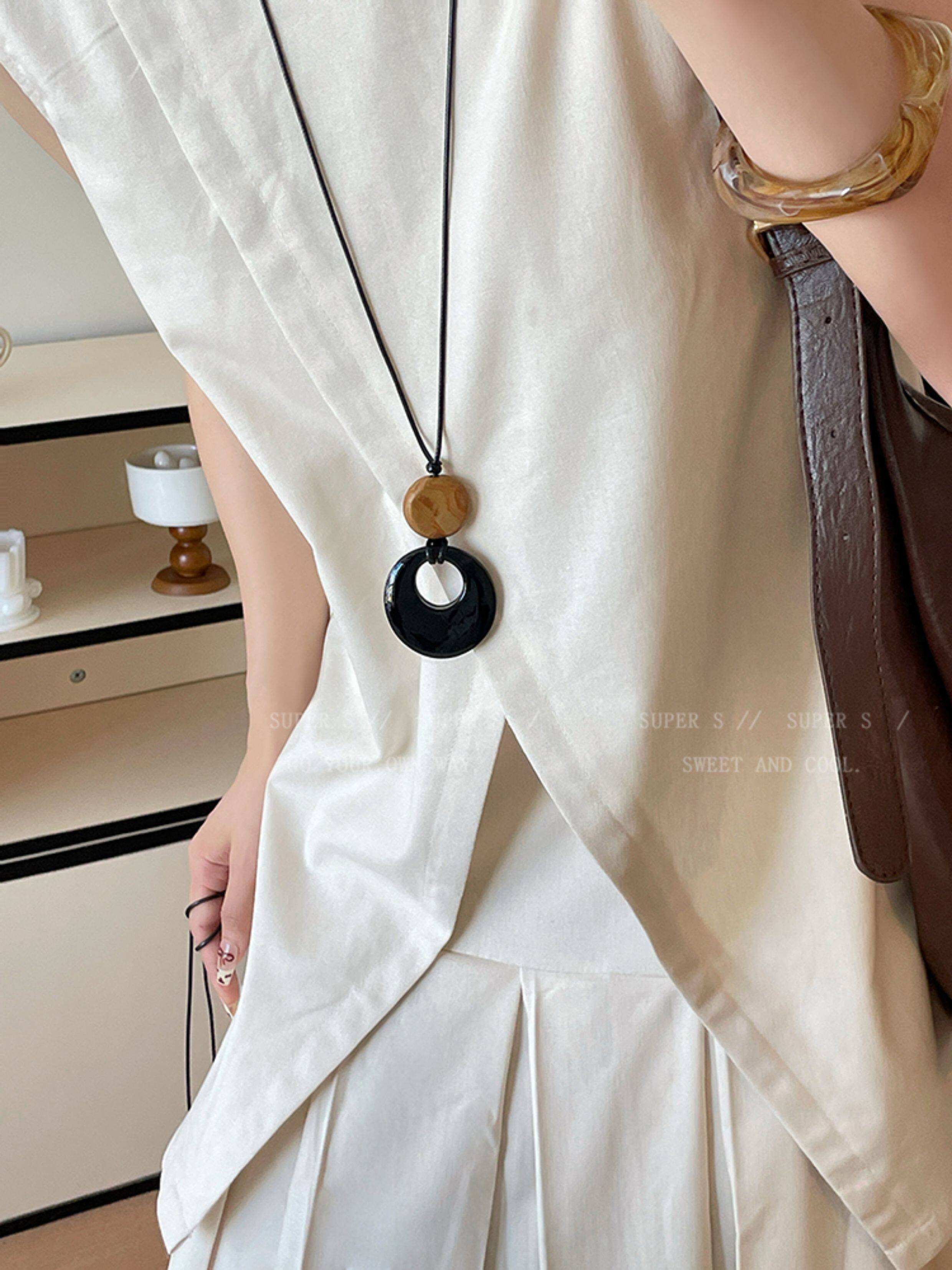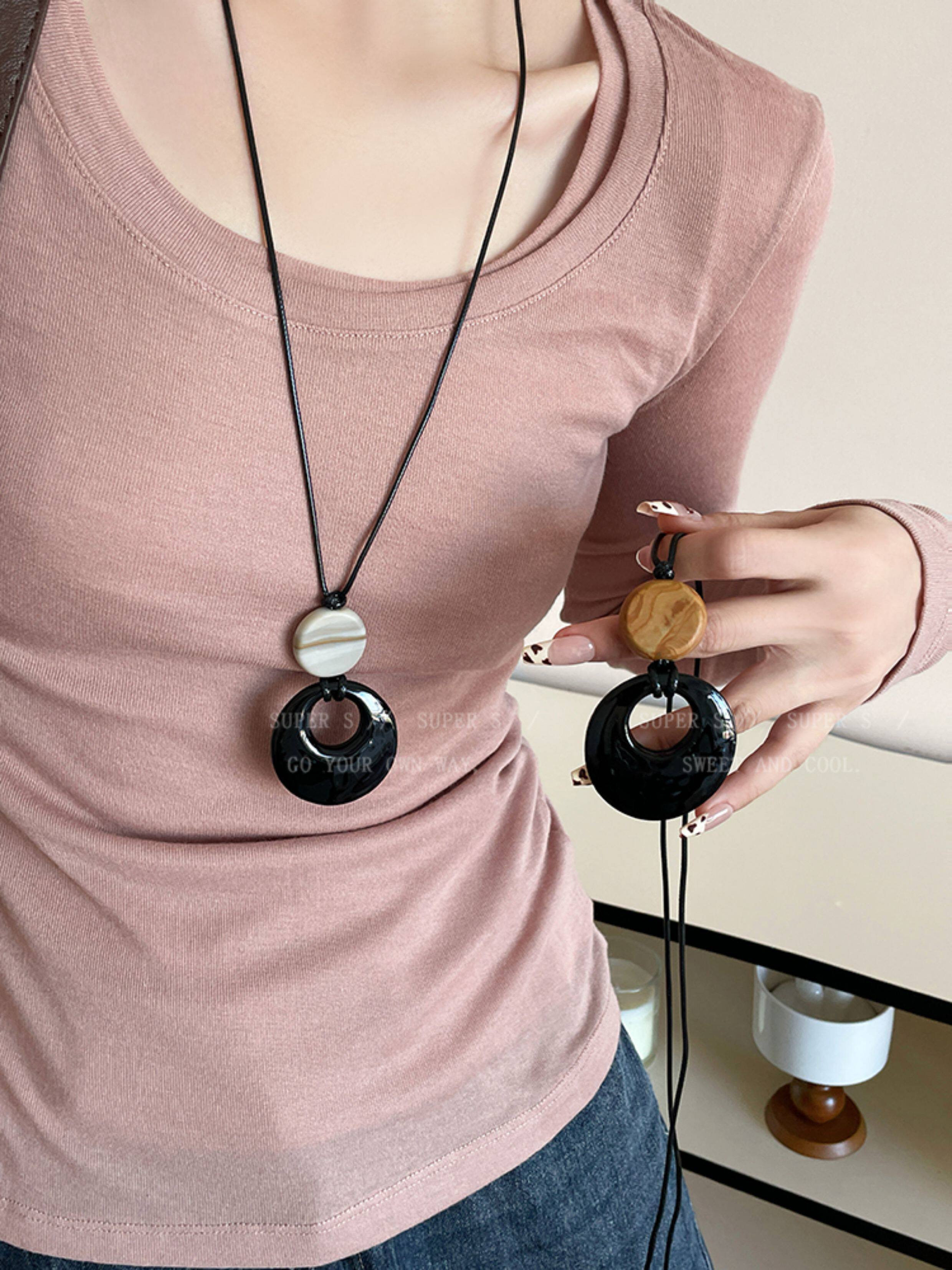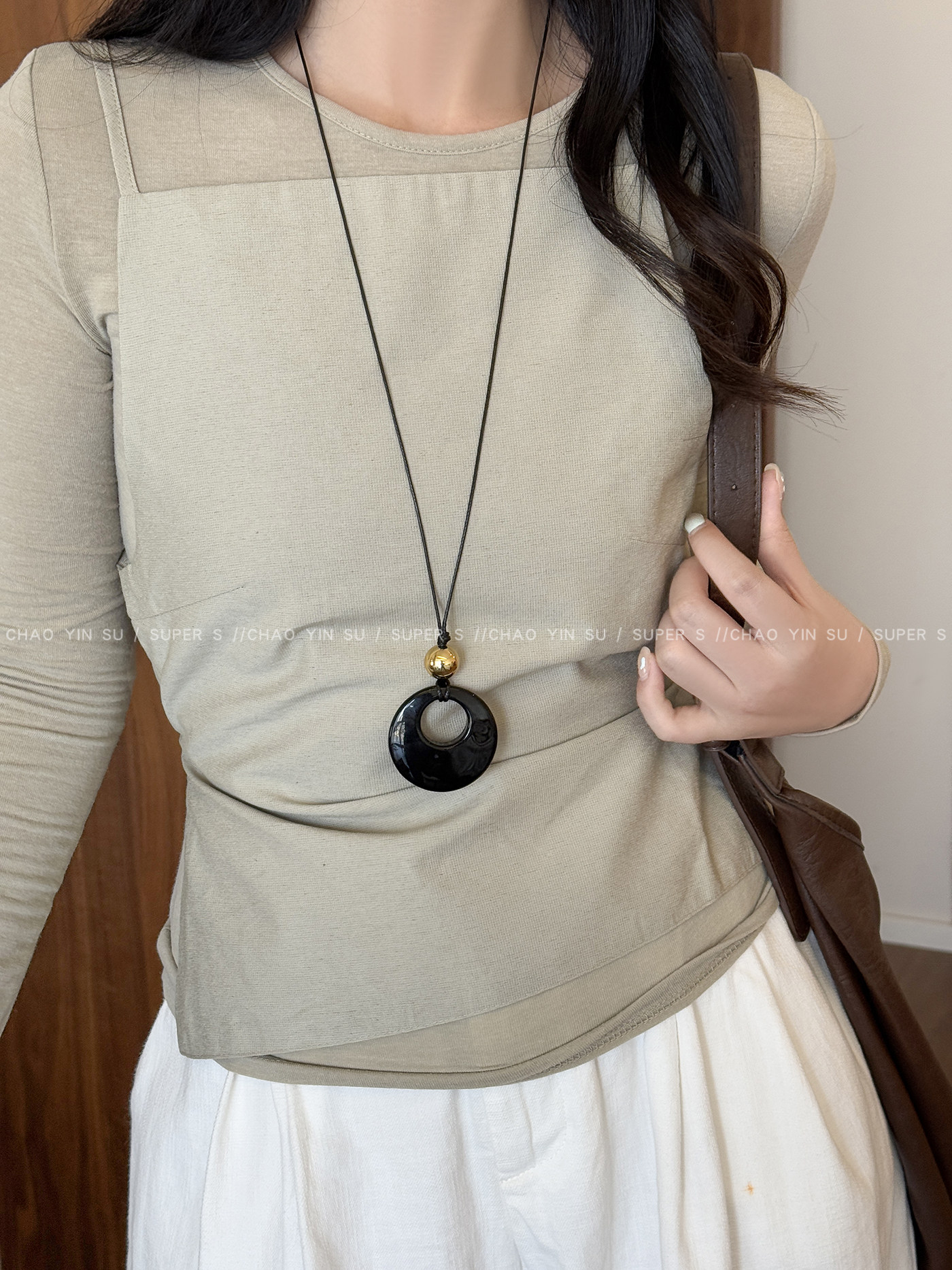 長款黑琉璃圓環吊墜項鍊女復古秋冬高級感掛件配飾輕奢毛衣鏈掛飾