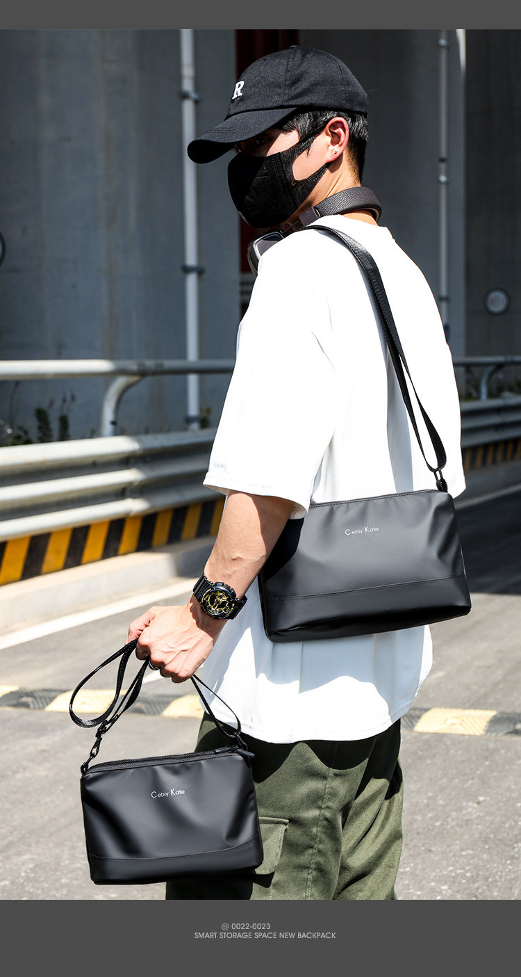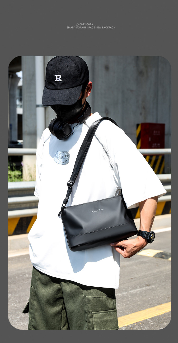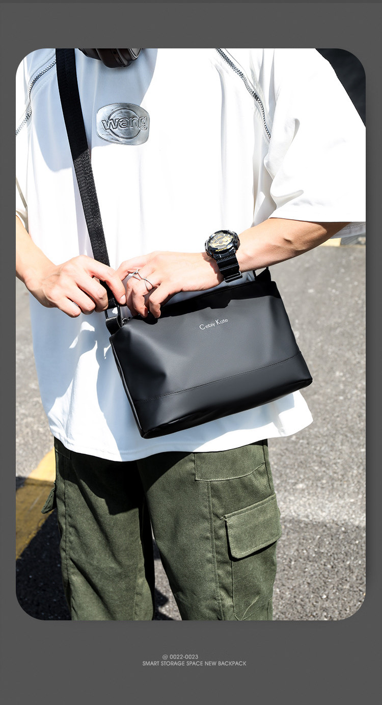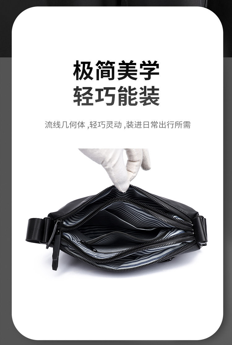歐美時尚潮牌男士輕便簡約小款單肩包三層大容量斜後後背包通勤小後後背包