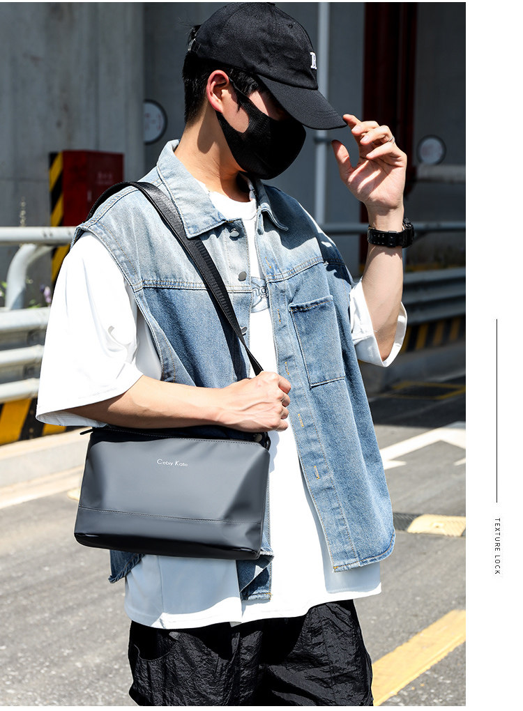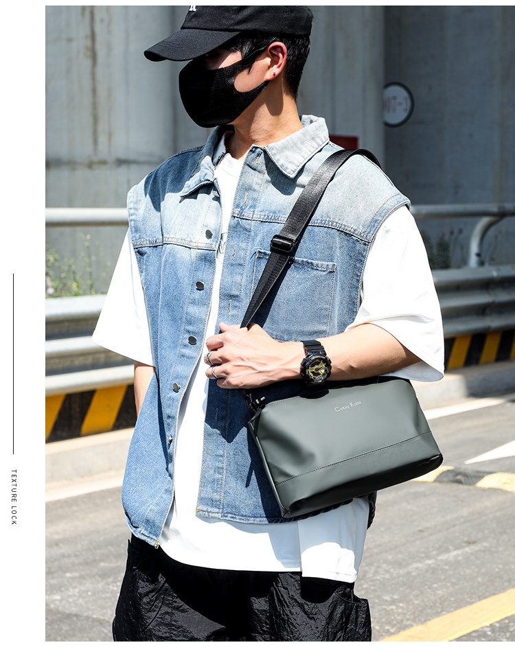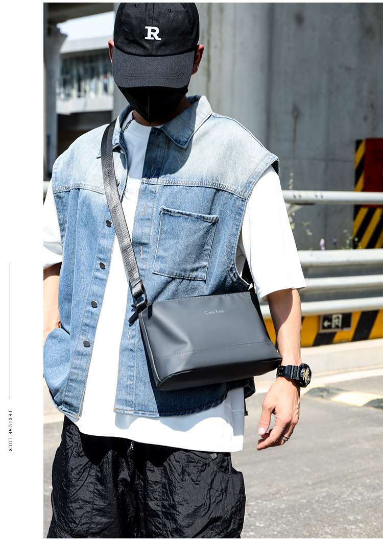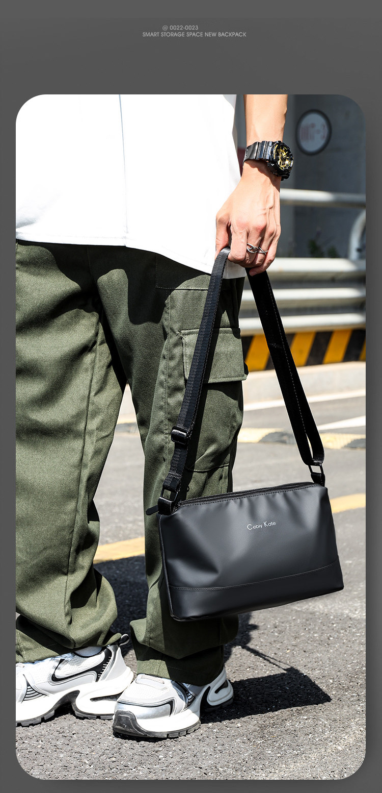 歐美時尚潮牌男士輕便簡約小款單肩包三層大容量斜後後背包通勤小後後背包