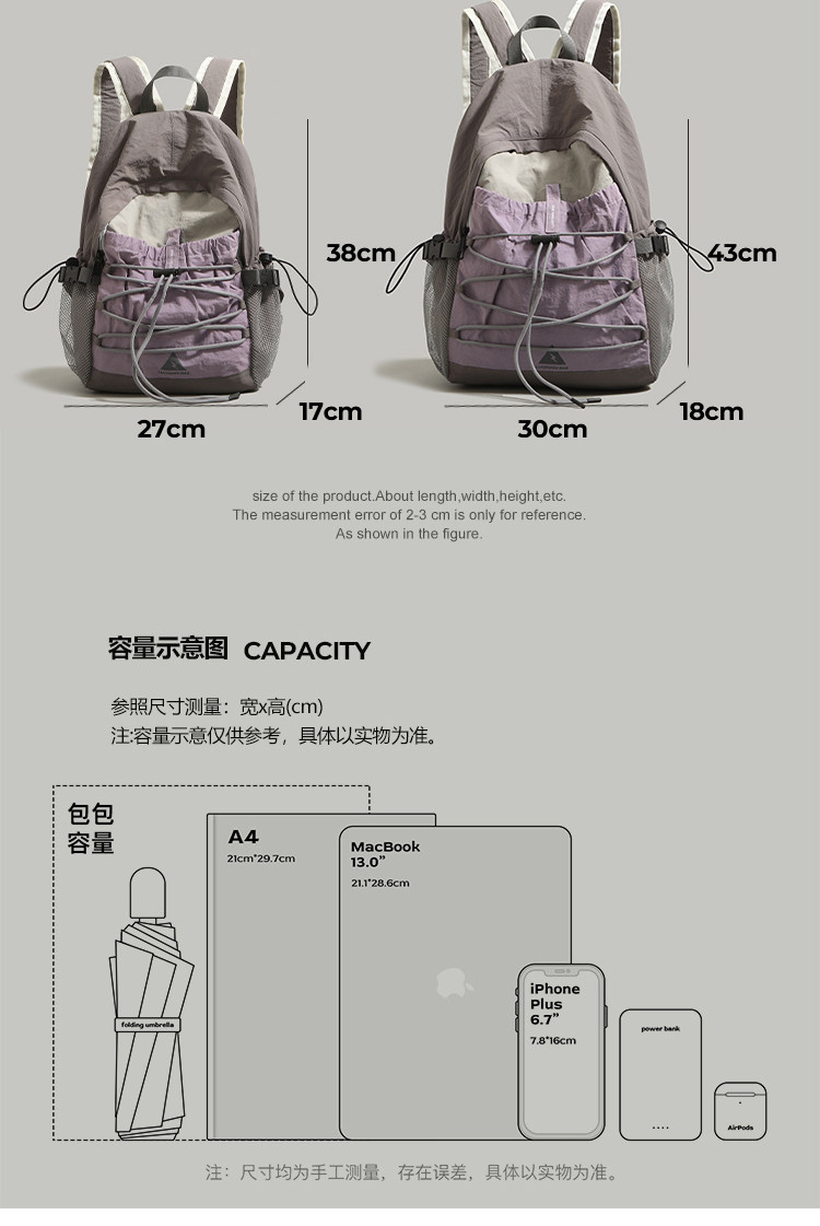 UR雙肩包女2025新款書包戶外運動徒步後後背包登山包短途旅行包電腦包