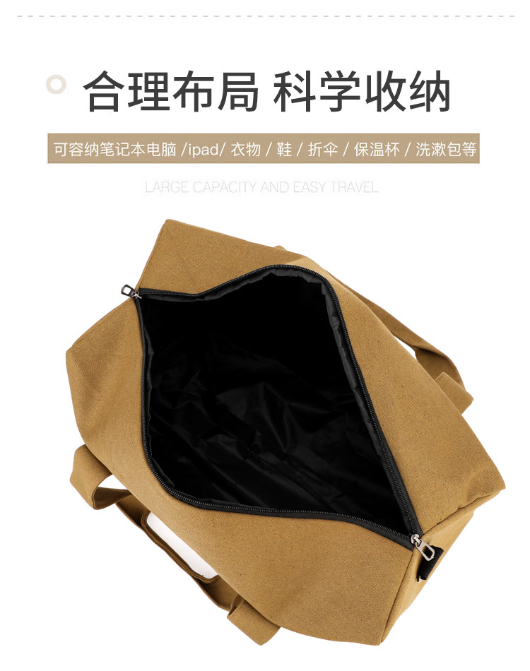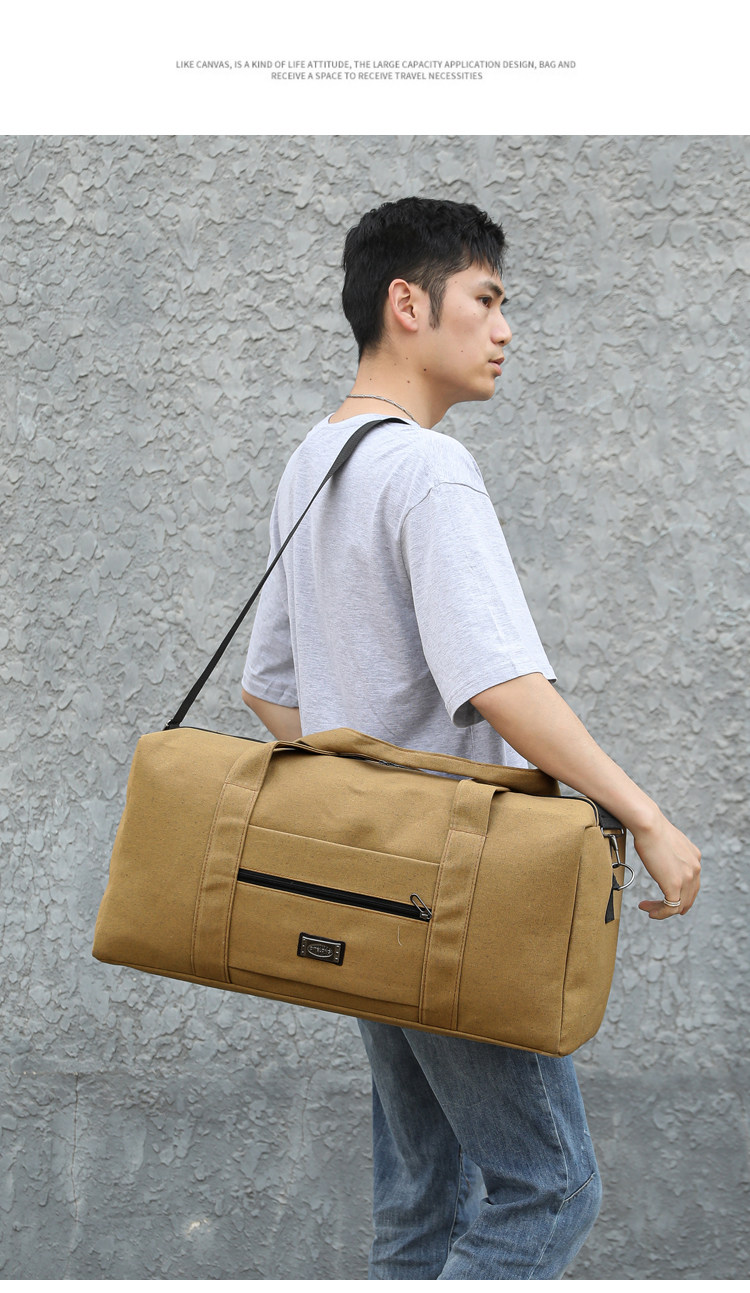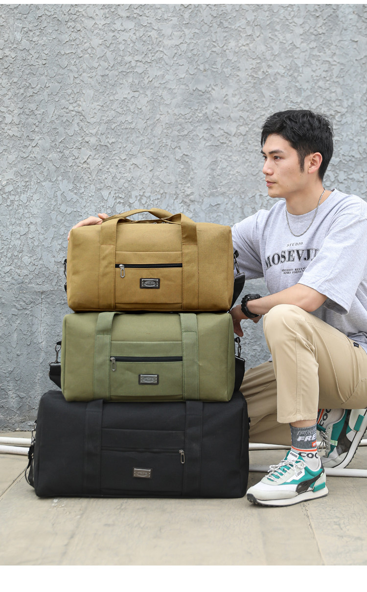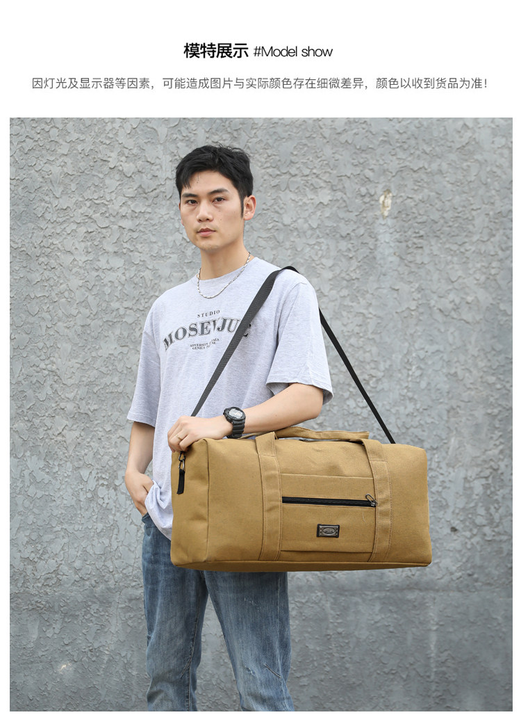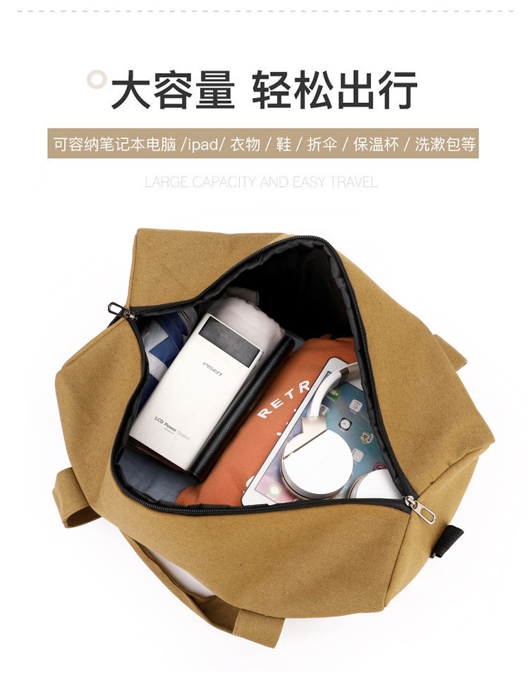 復古時尚大容量帆布旅行包女手提百搭行李包男短途打工出差旅遊包
