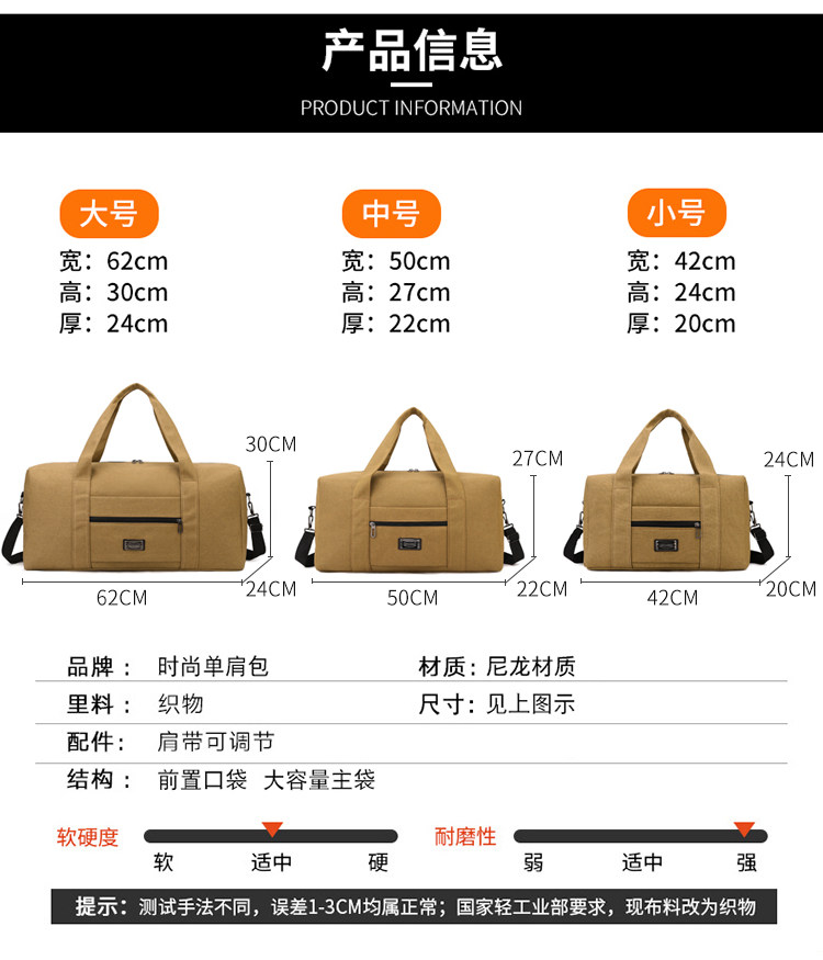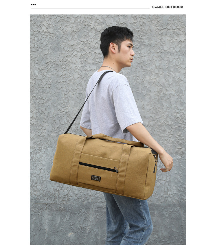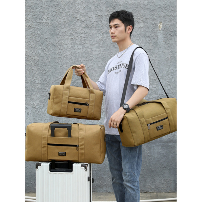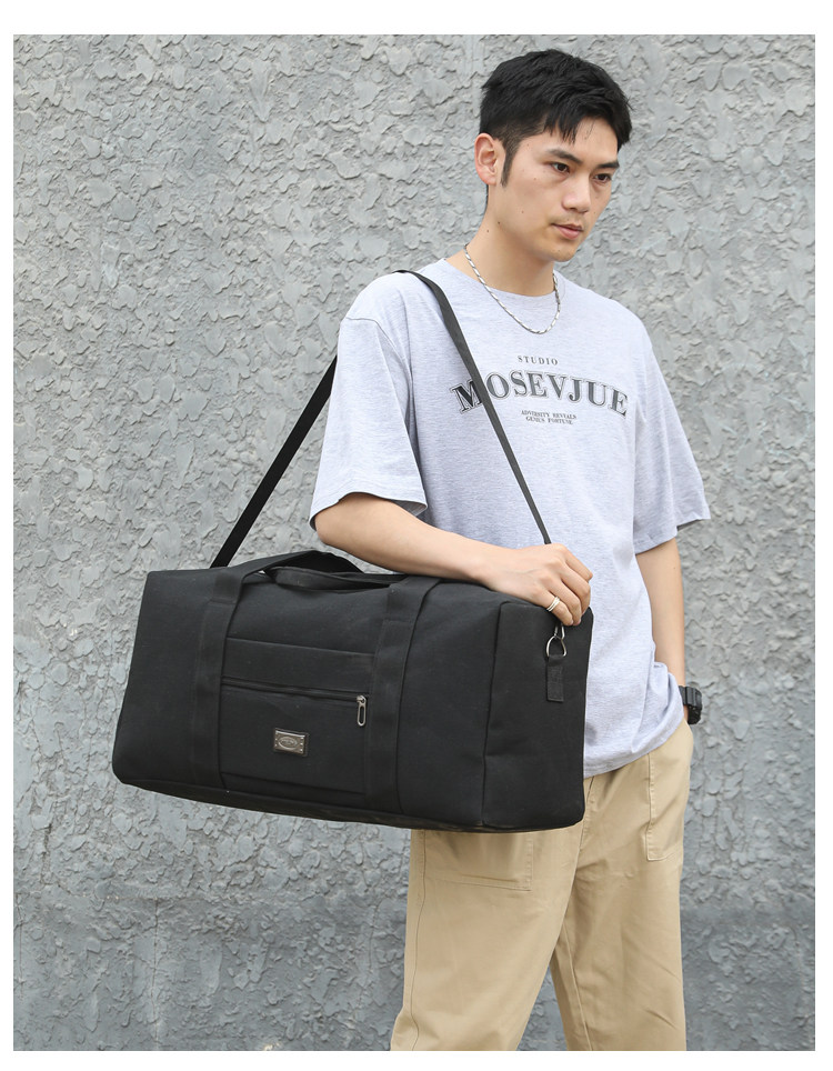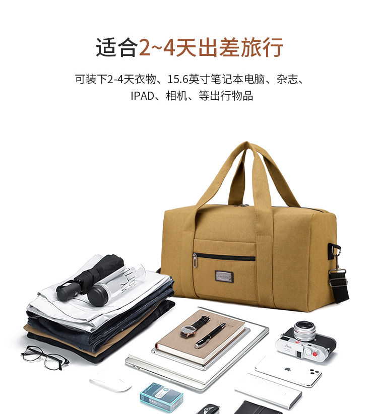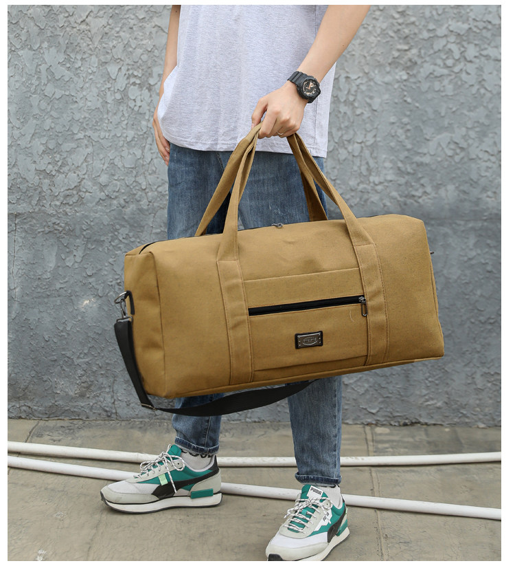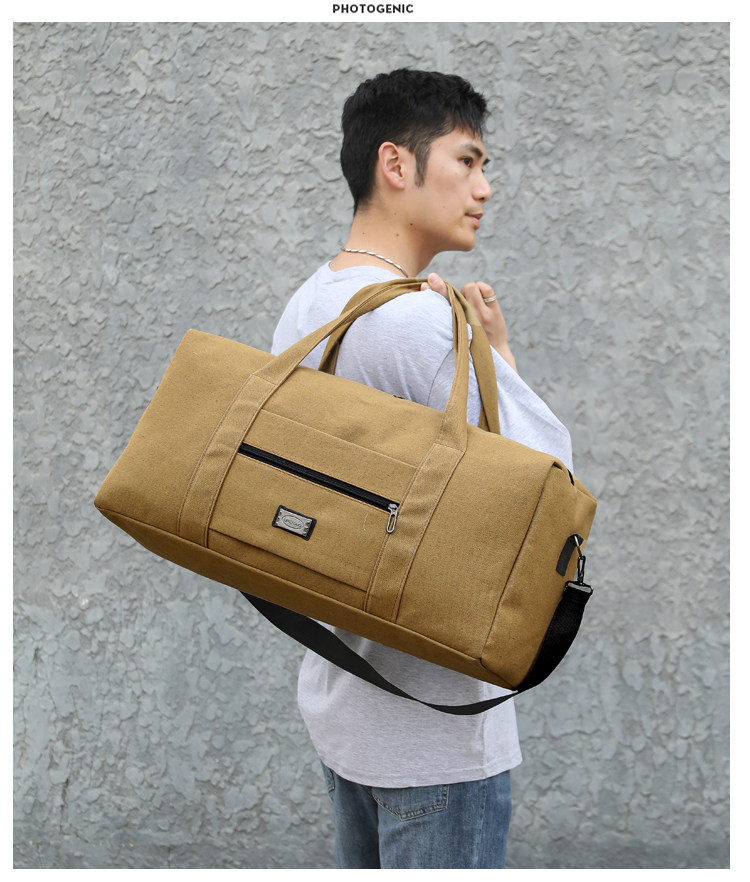 復古時尚大容量帆布旅行包女手提百搭行李包男短途打工出差旅遊包