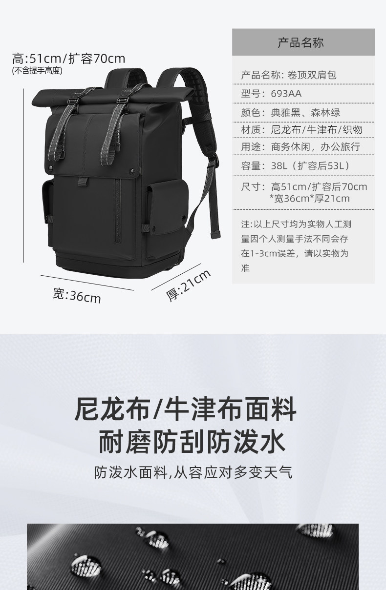 尼格爾超大容量雙肩包男旅遊出差旅行徒步17寸18寸筆記型電腦後後背包