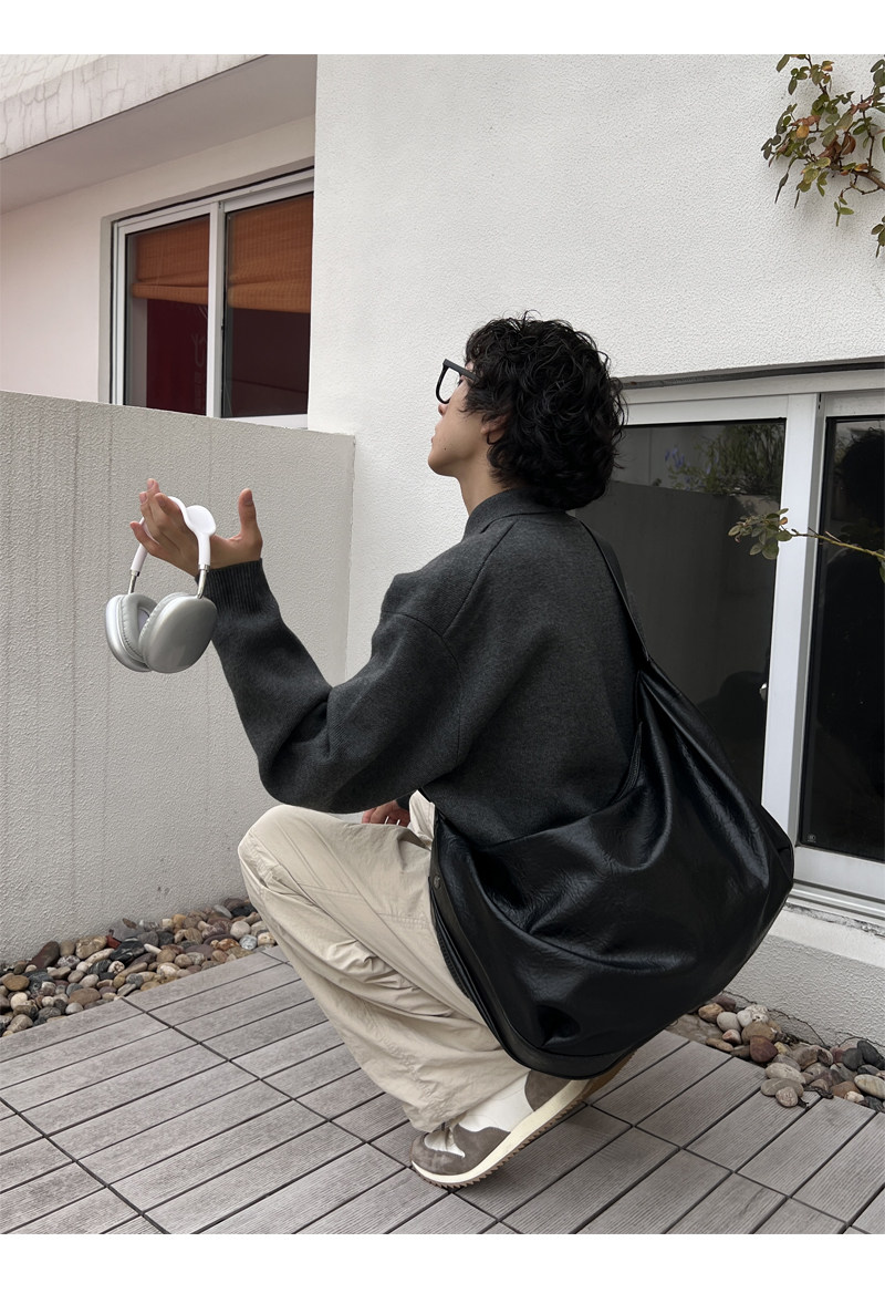 YUEN原創設計款ins單肩斜背大容量pu通勤托特包男女hobo百搭通勤