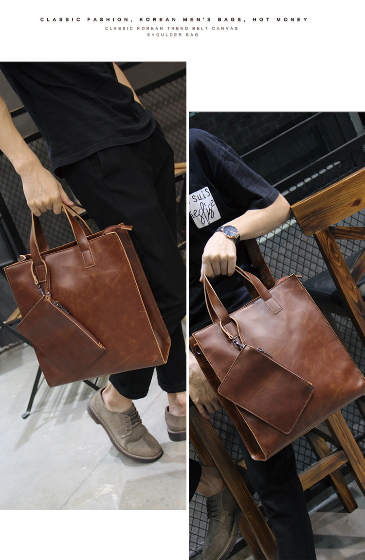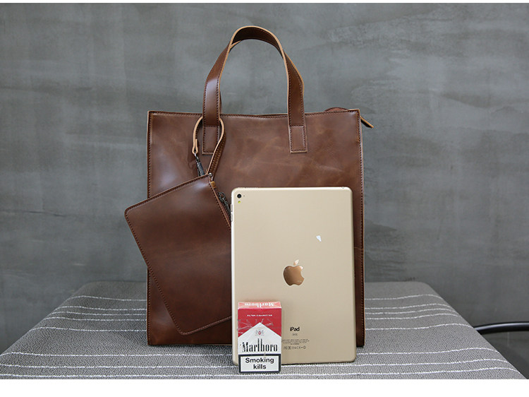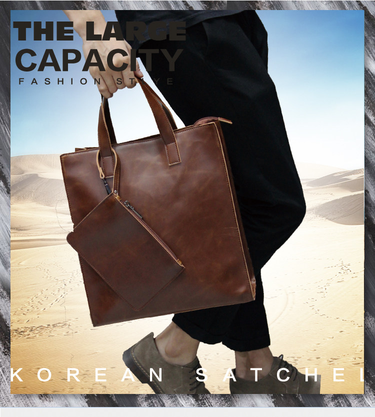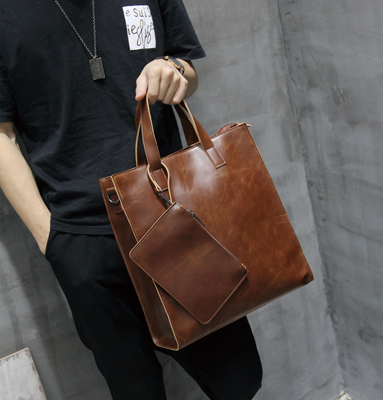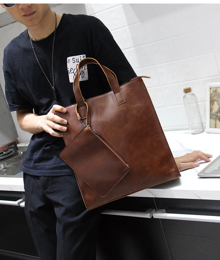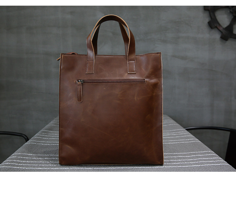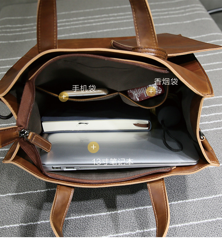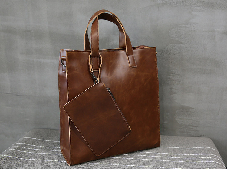 英倫復古商務手提包休閒時尚瘋馬皮郵差單肩斜背托特包男tote包