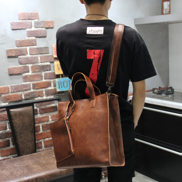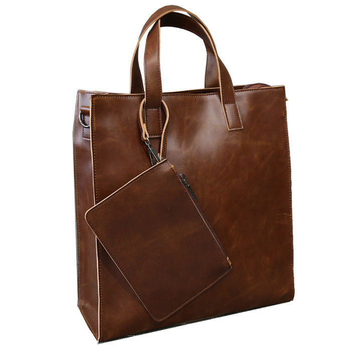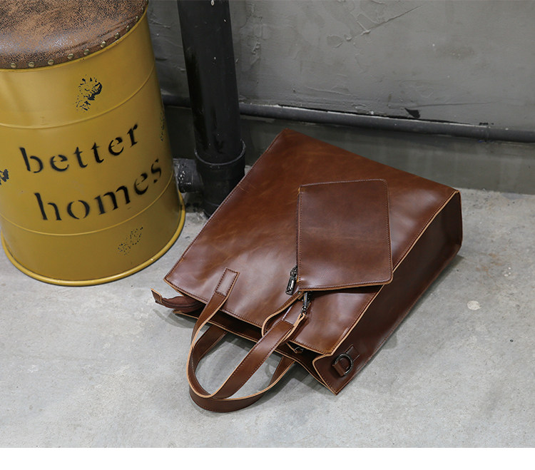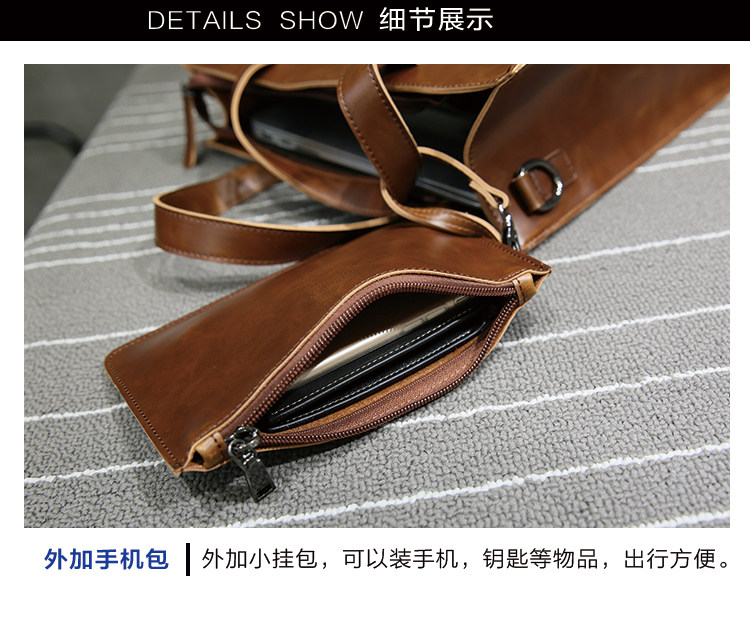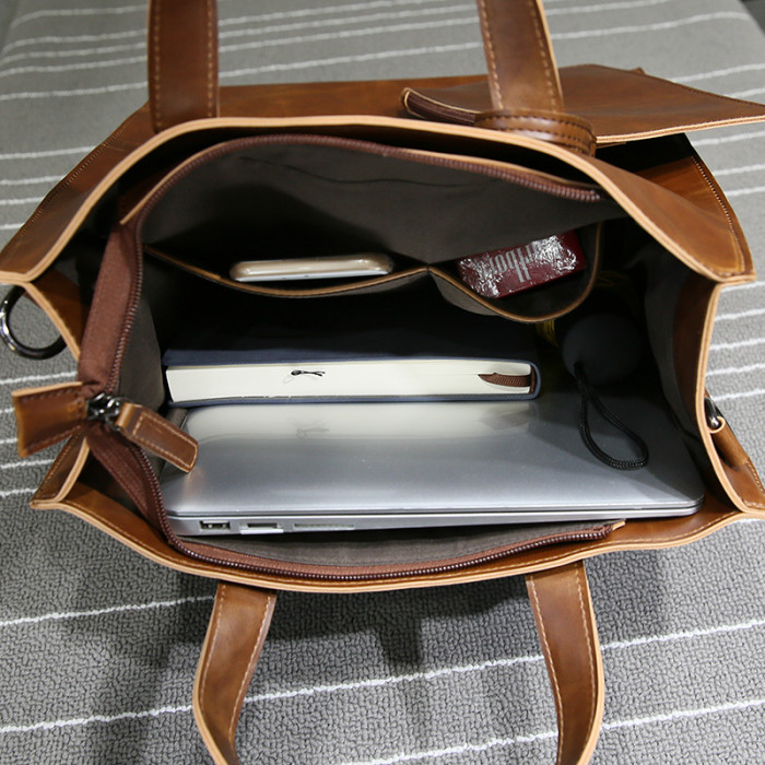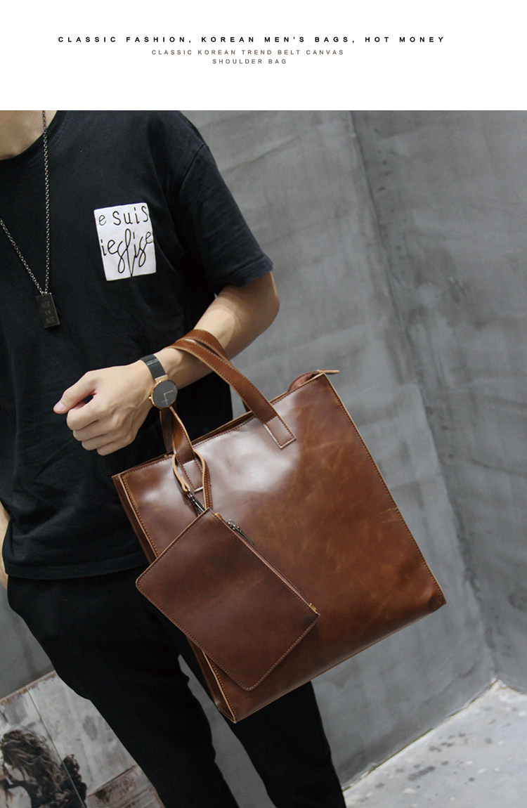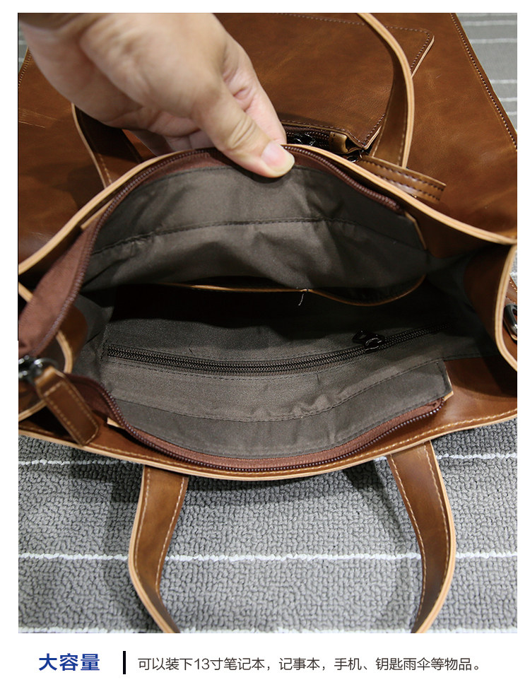 英倫復古商務手提包休閒時尚瘋馬皮郵差單肩斜背托特包男tote包