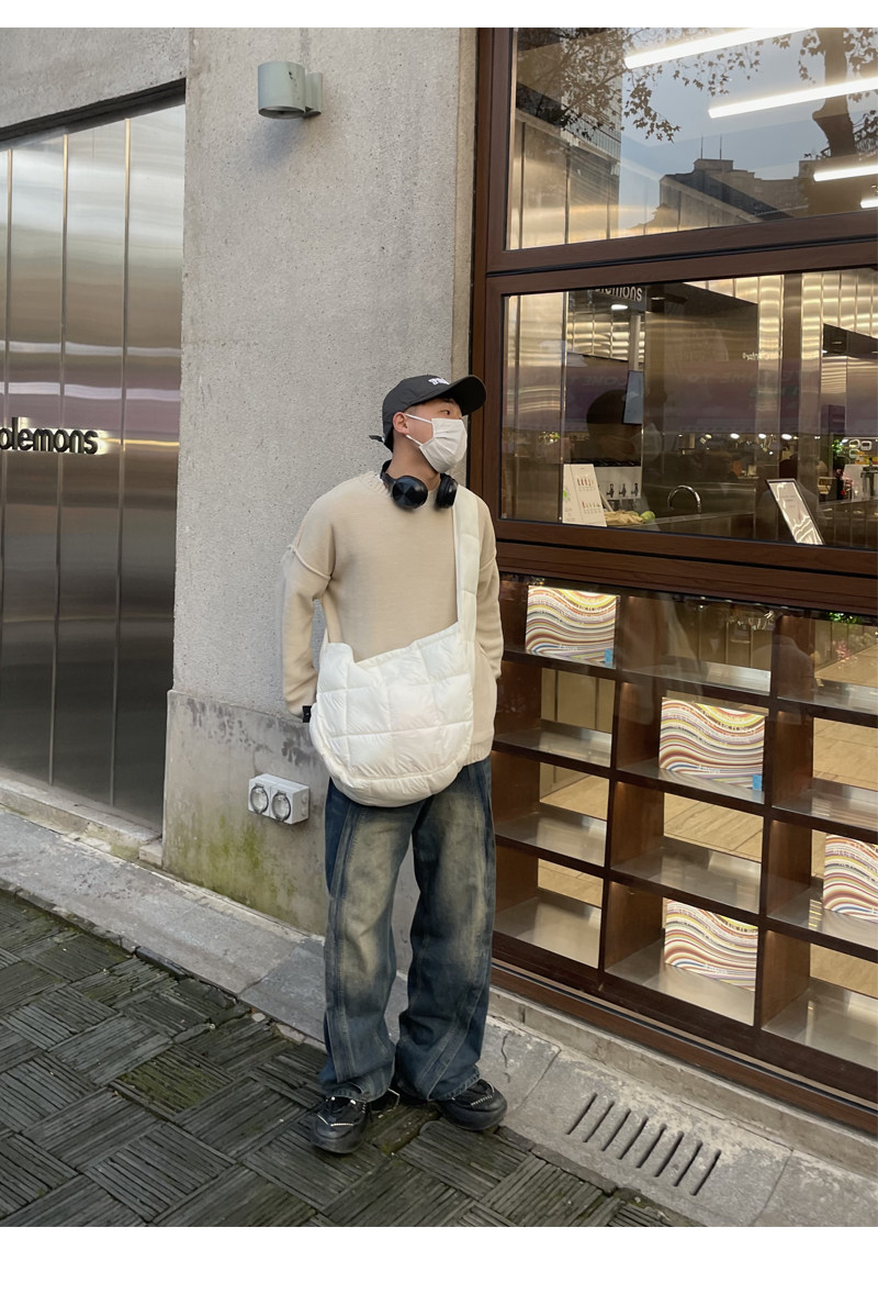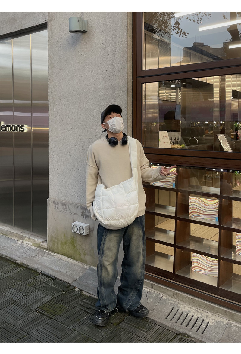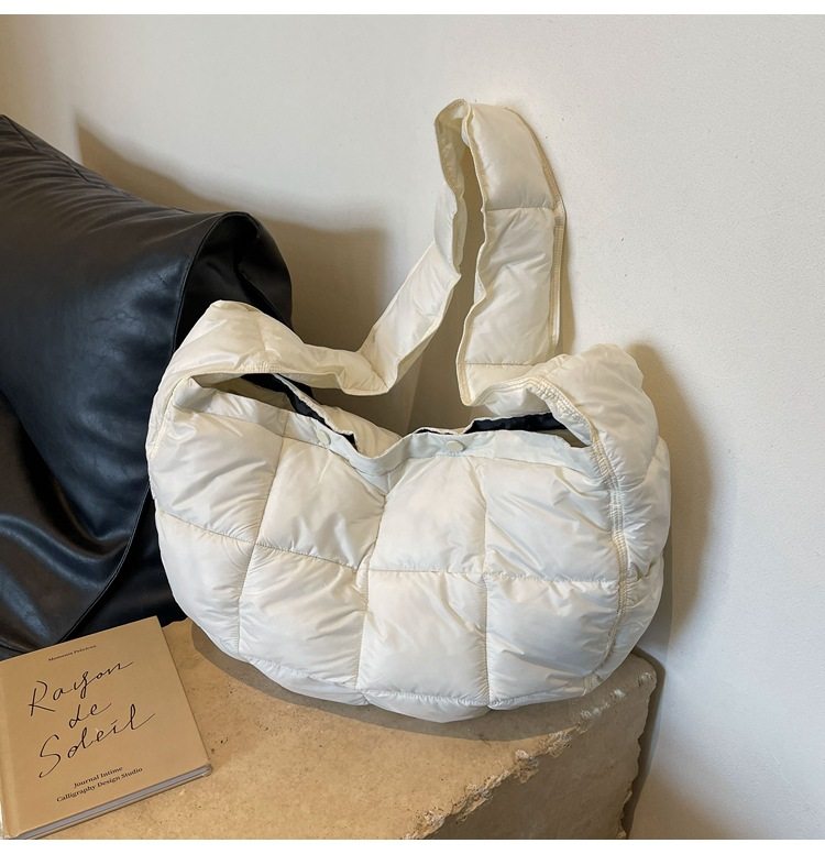 YUEN設計款羽絨雲朵包復古挎斜背單肩大容量泡芙輕便上課包男女潮