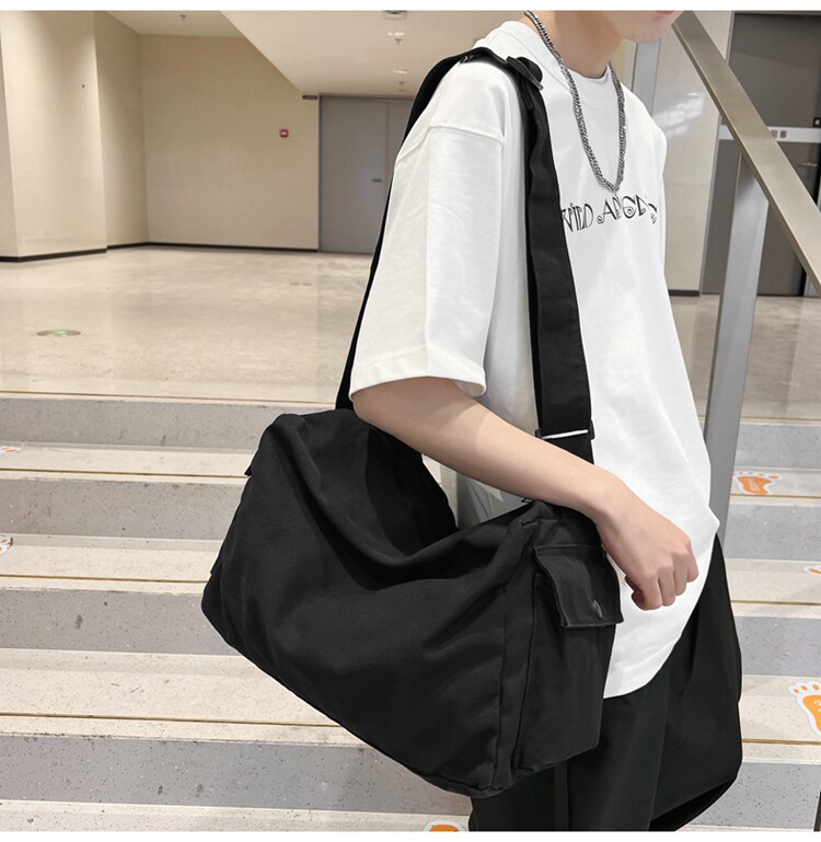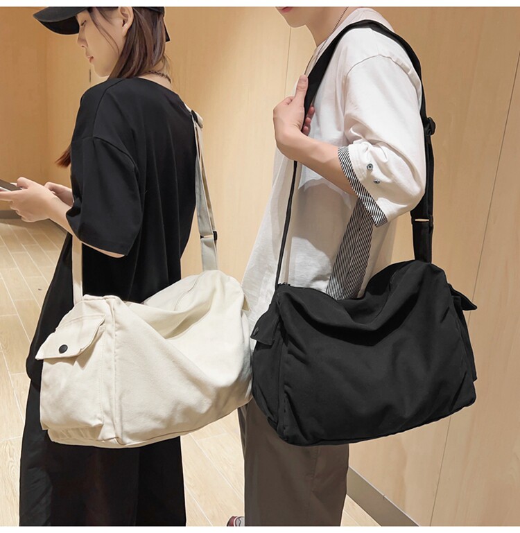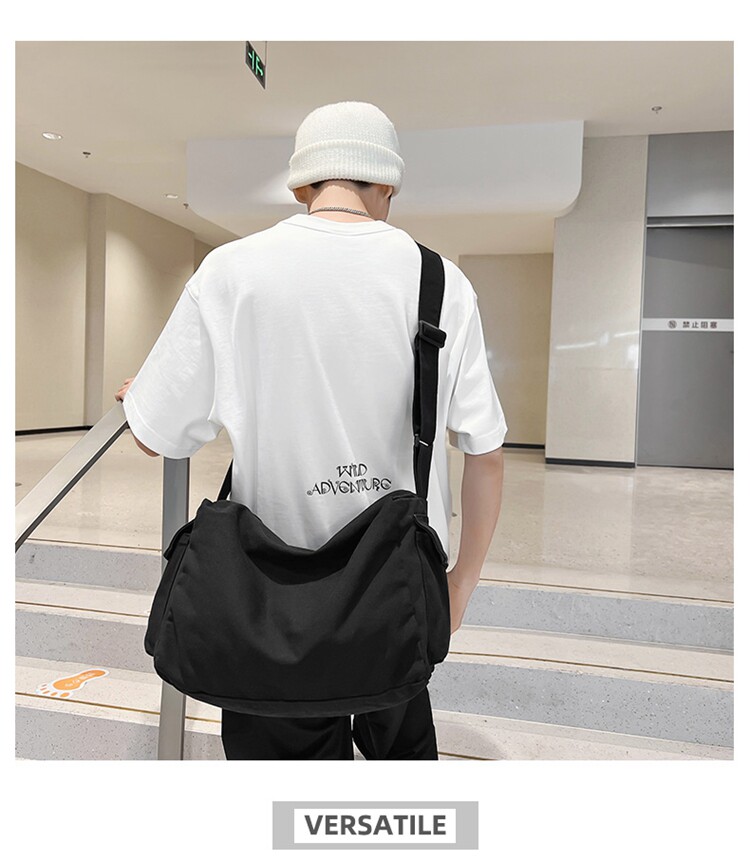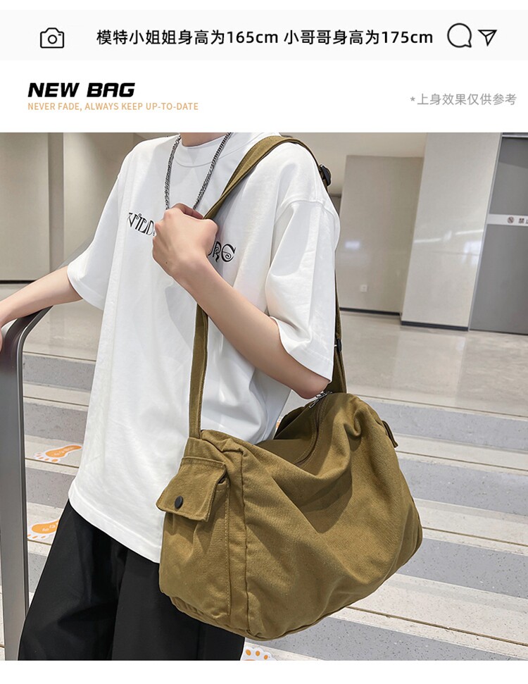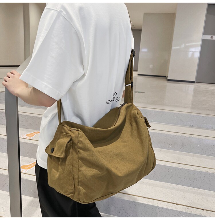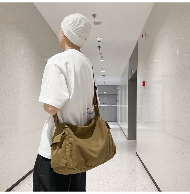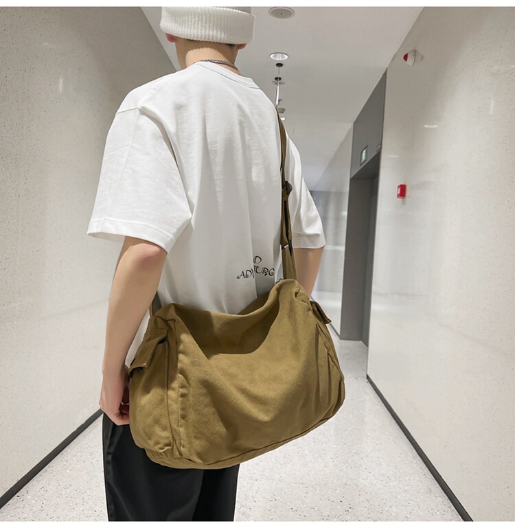 日系慵懶風帆布包男款大容量斜後後背包復古郵差包上班通勤單肩包旅行