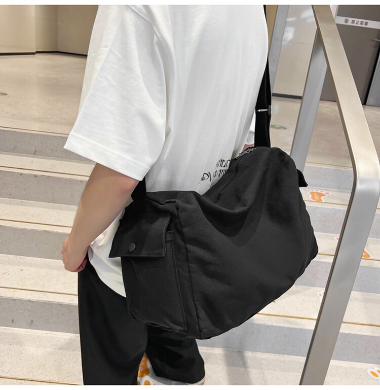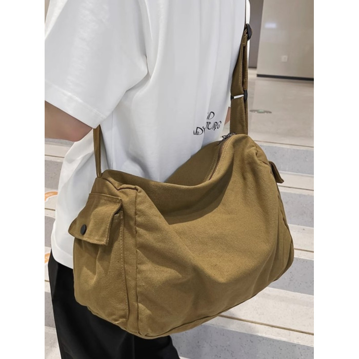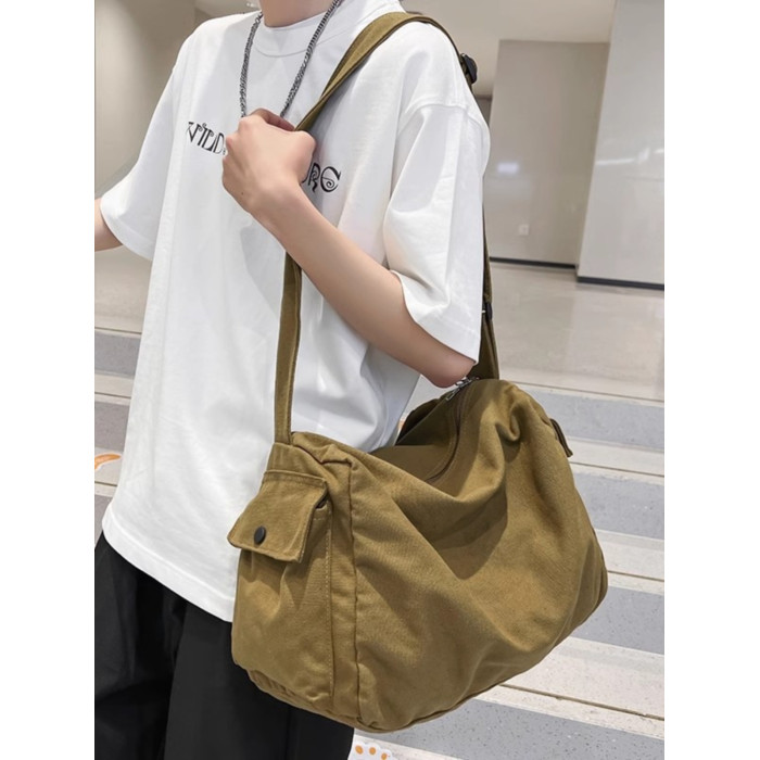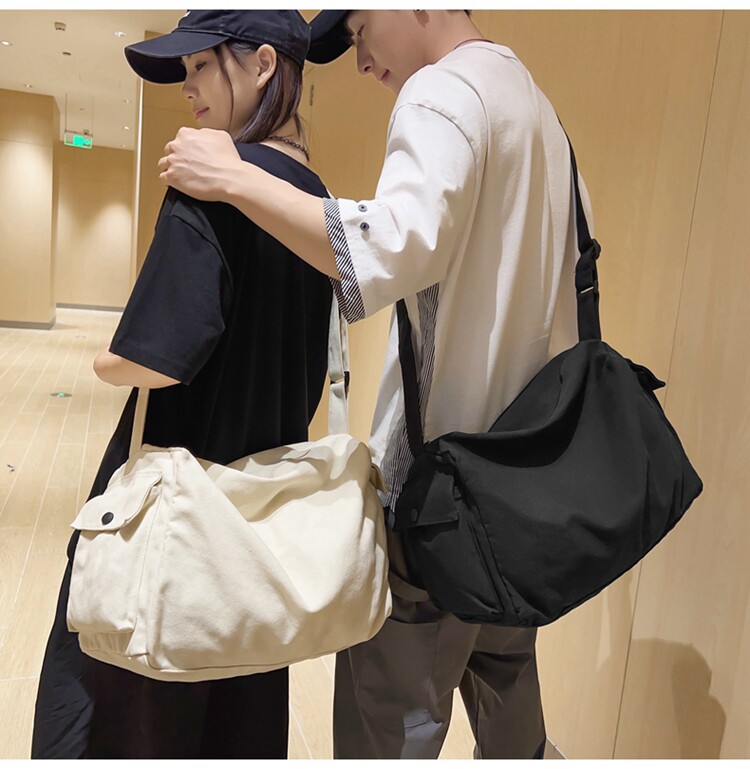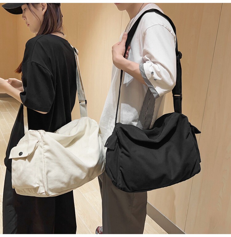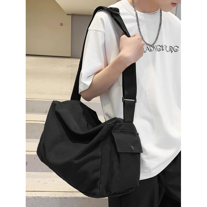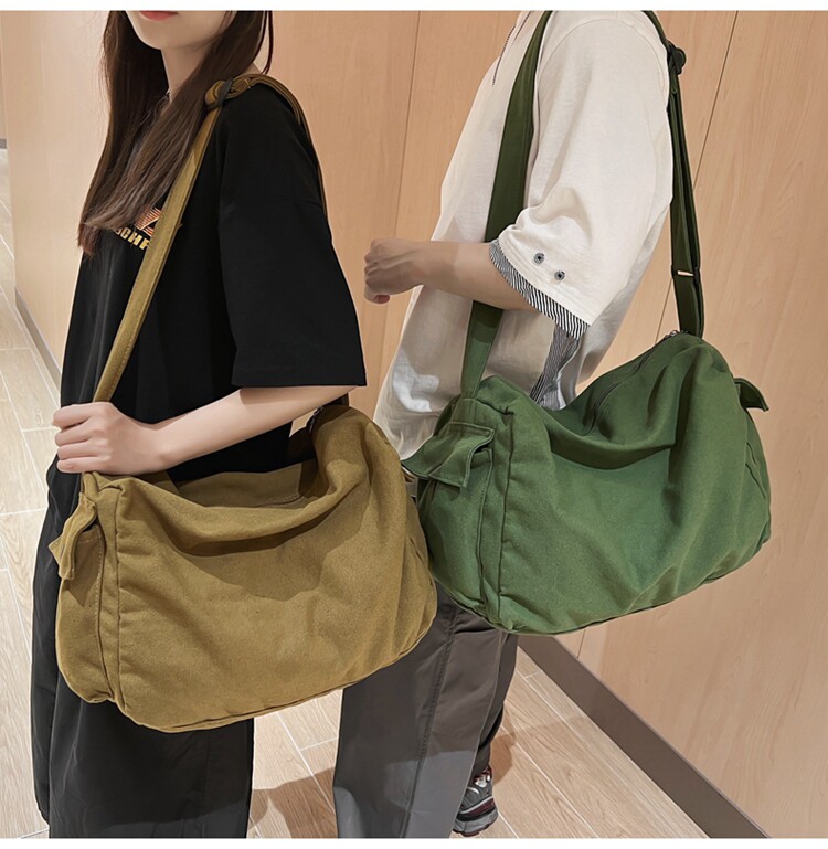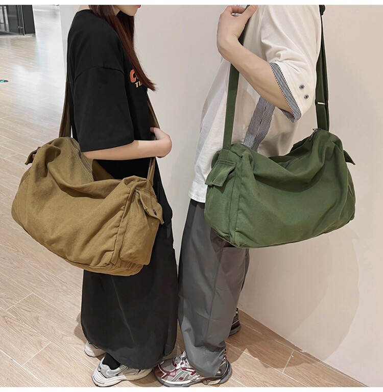 日系慵懶風帆布包男款大容量斜後後背包復古郵差包上班通勤單肩包旅行