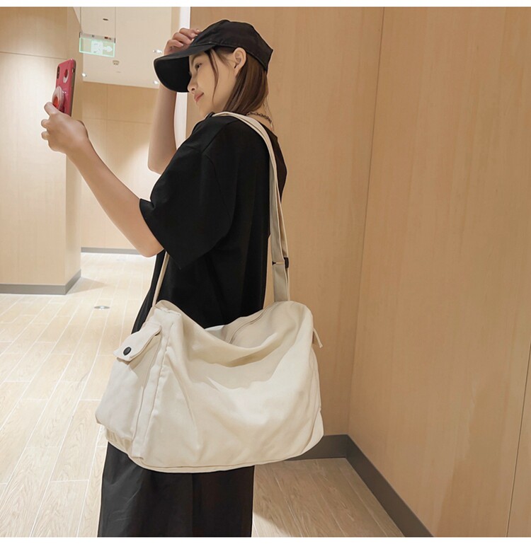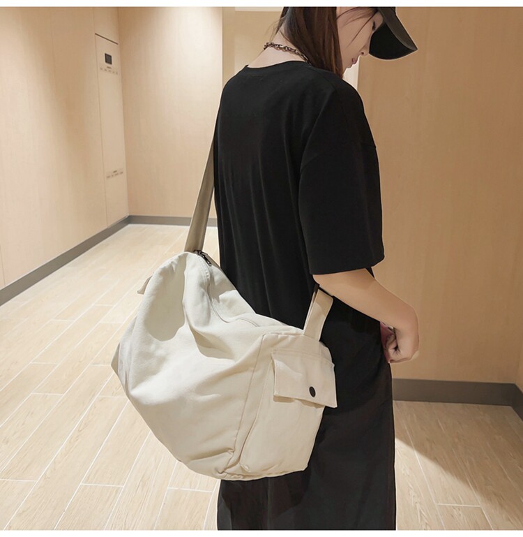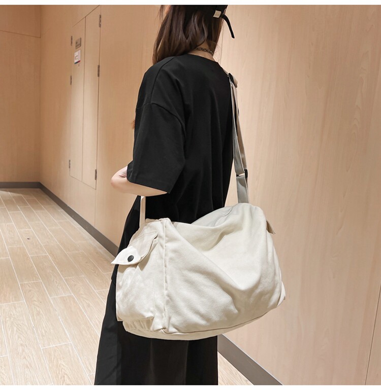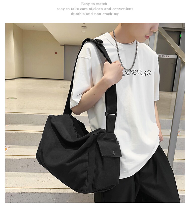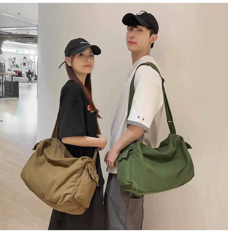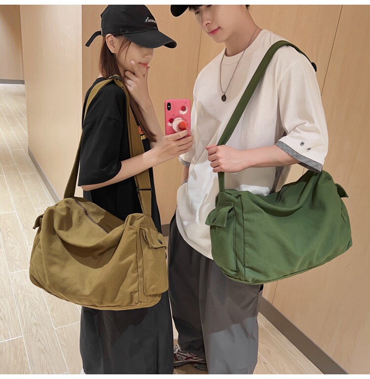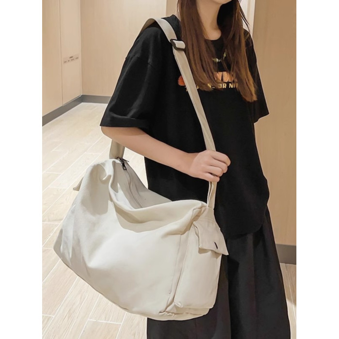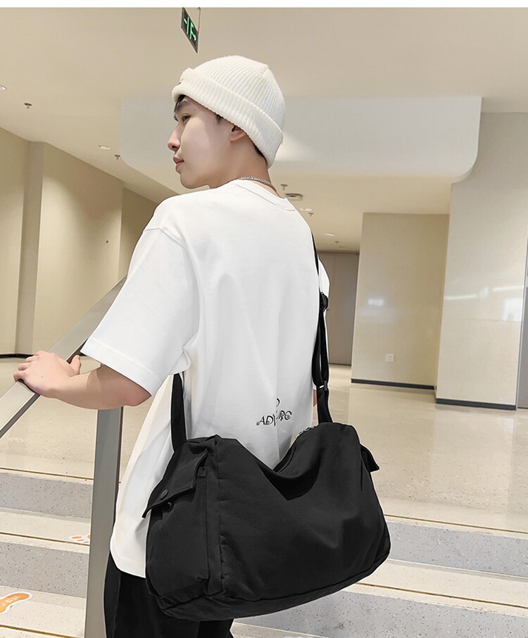 日系慵懶風帆布包男款大容量斜後後背包復古郵差包上班通勤單肩包旅行
