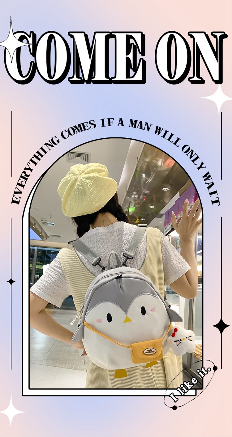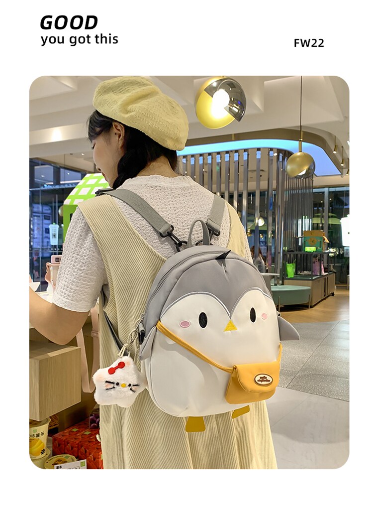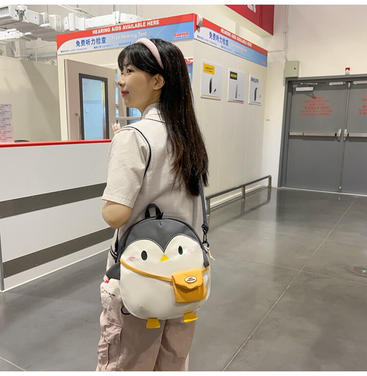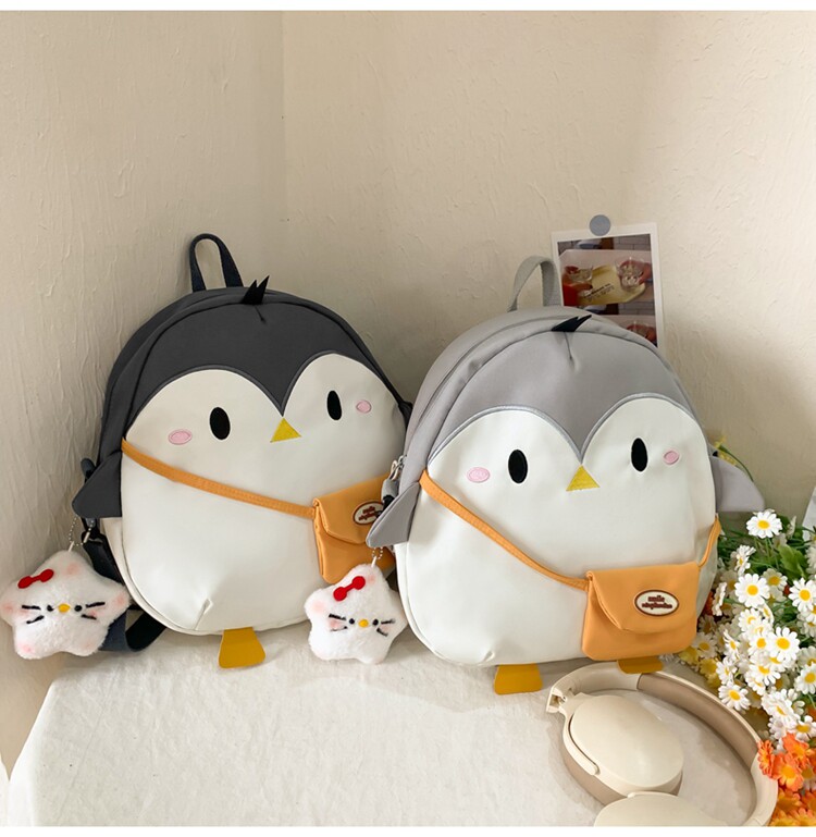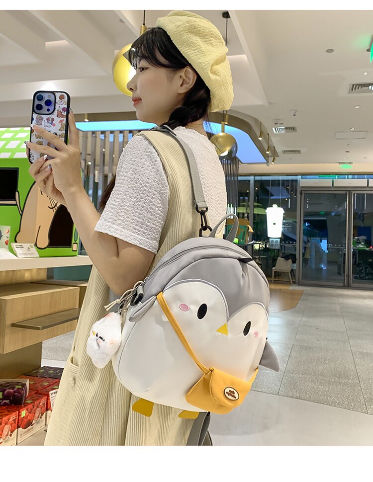 雙肩包可愛企鵞書包卡通單肩斜後後背包幼兒園女童耐髒休閒百搭學生包