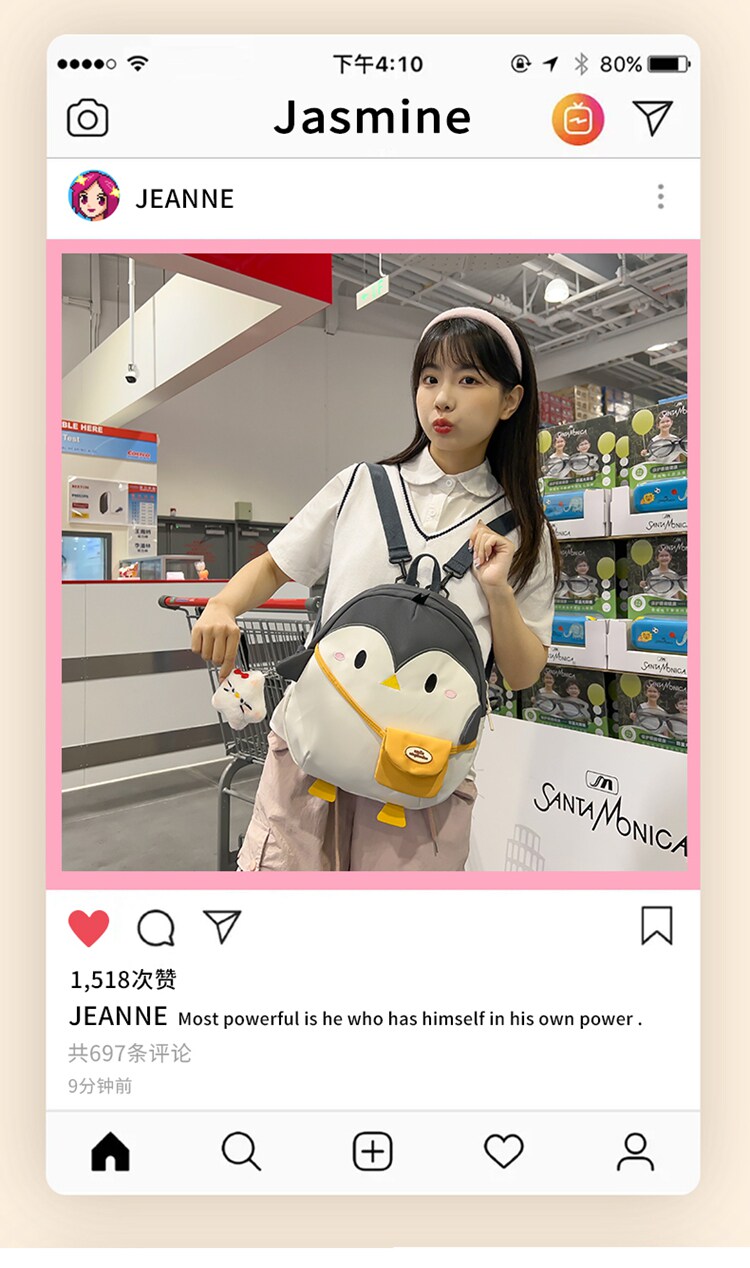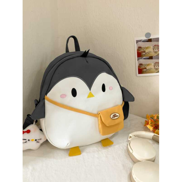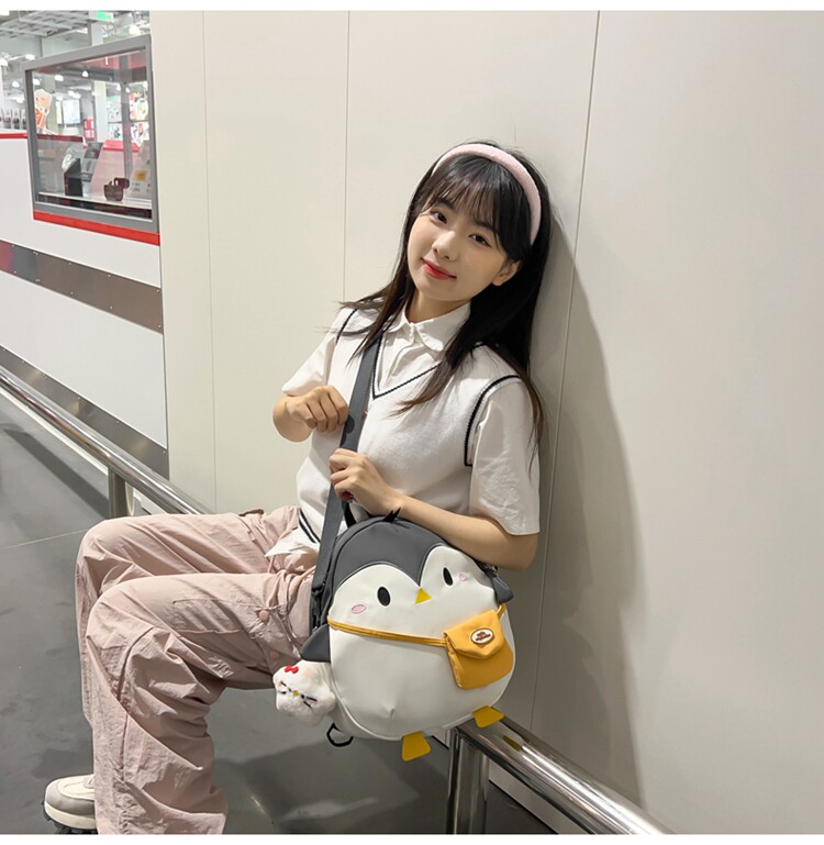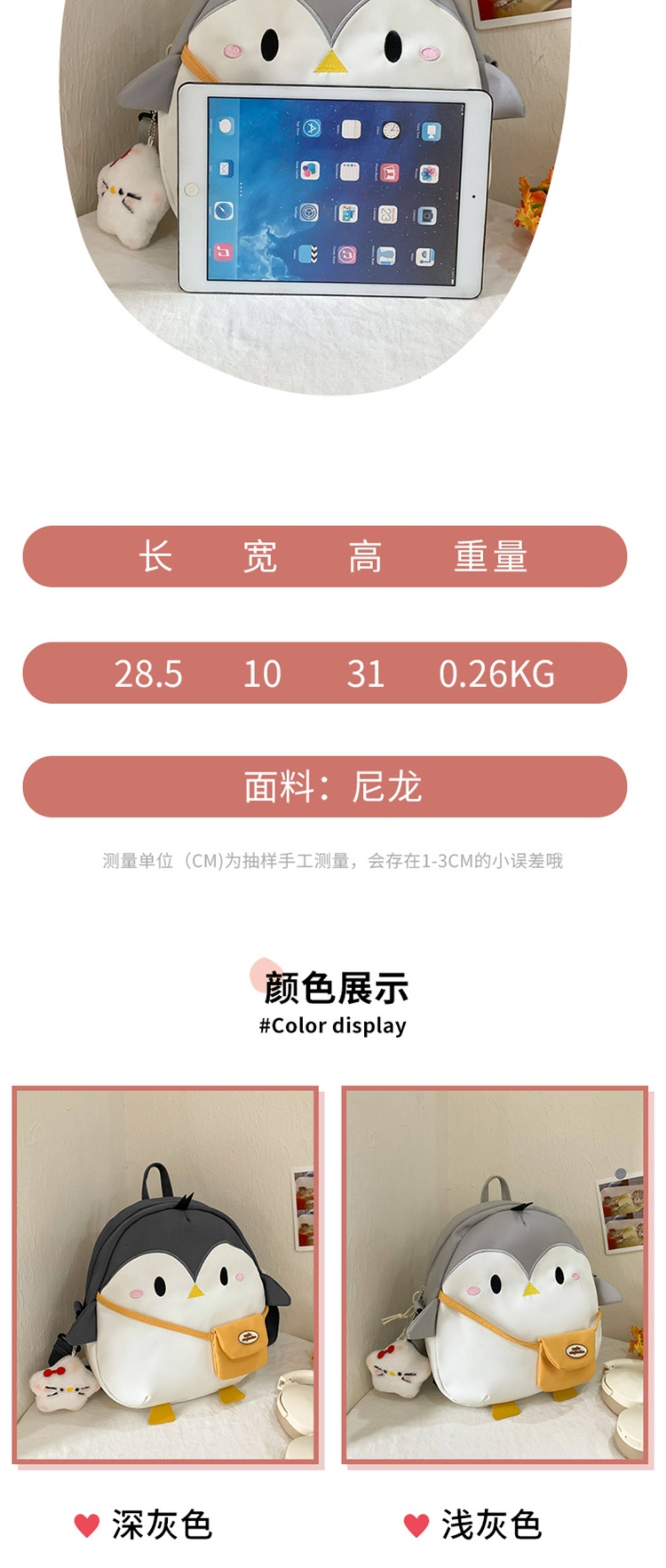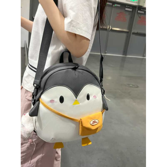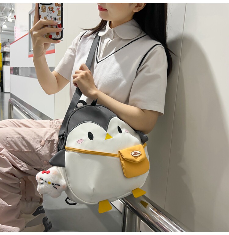 雙肩包可愛企鵞書包卡通單肩斜後後背包幼兒園女童耐髒休閒百搭學生包