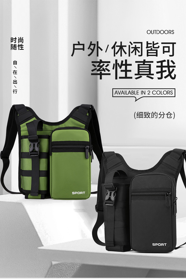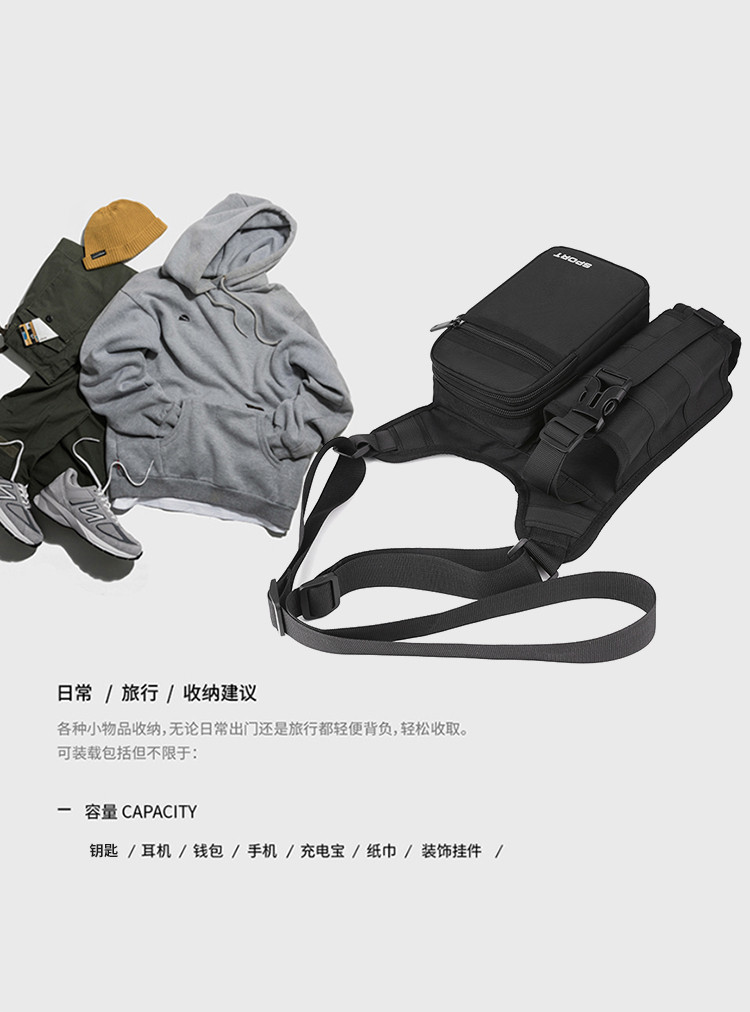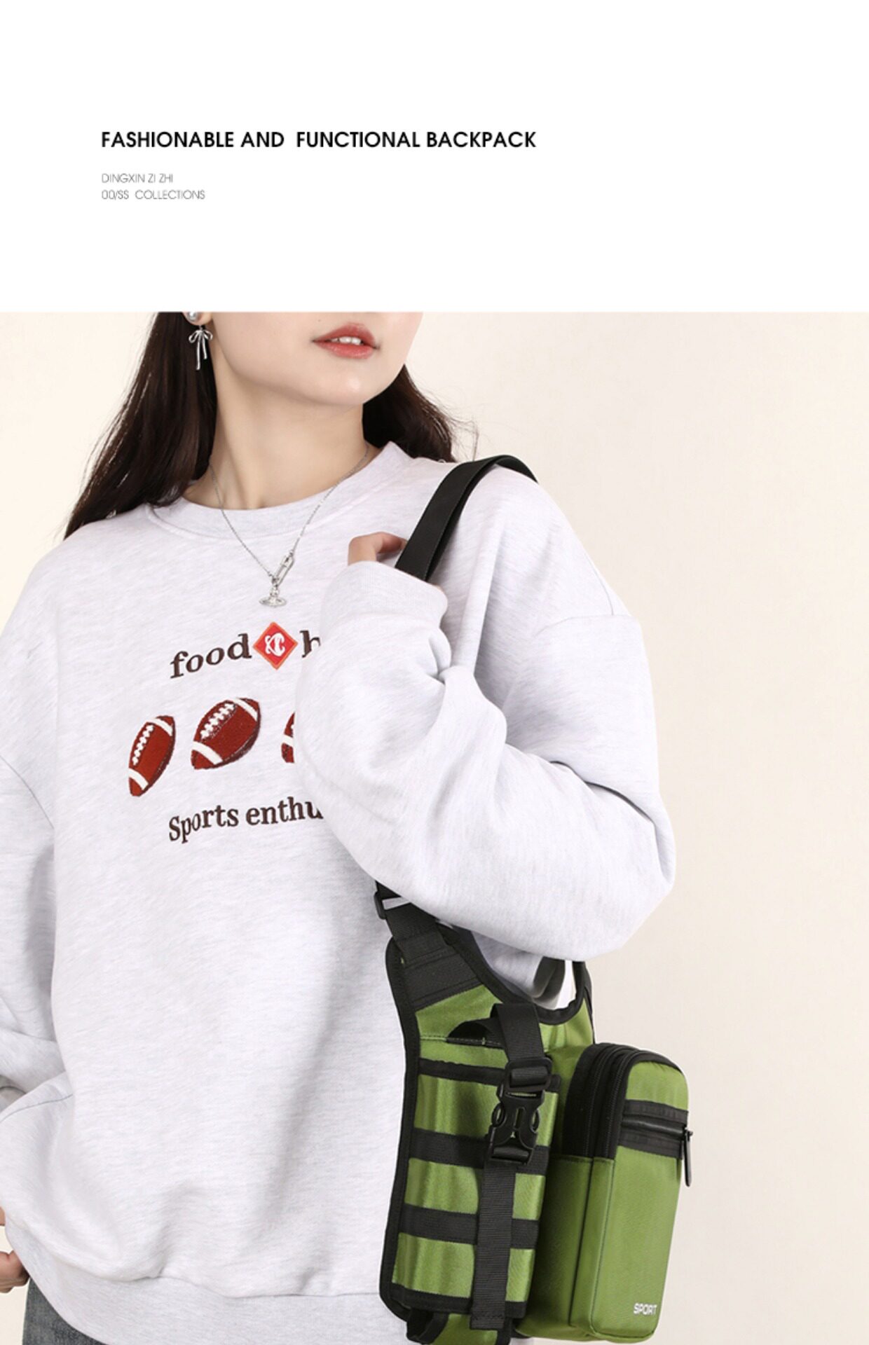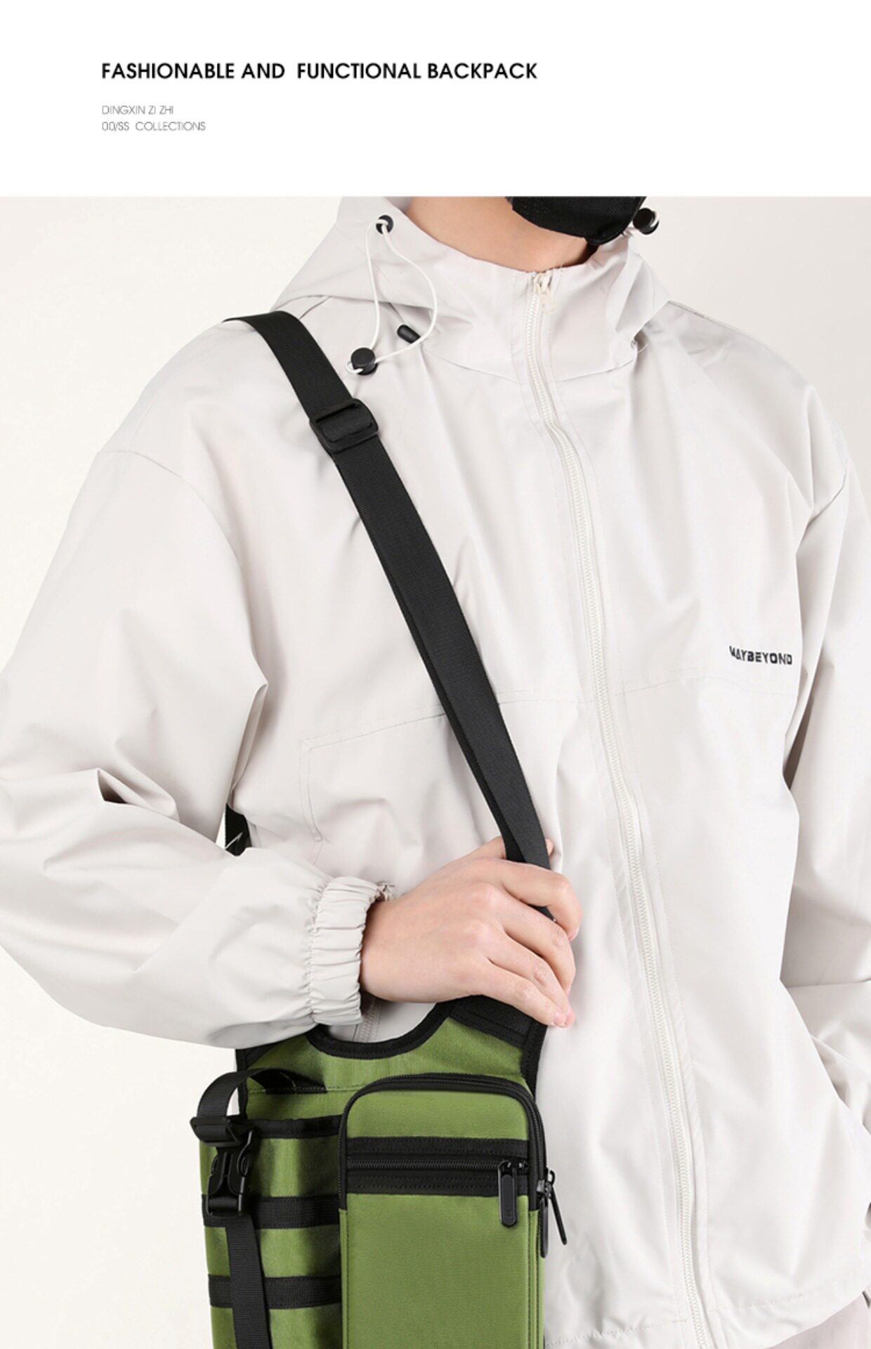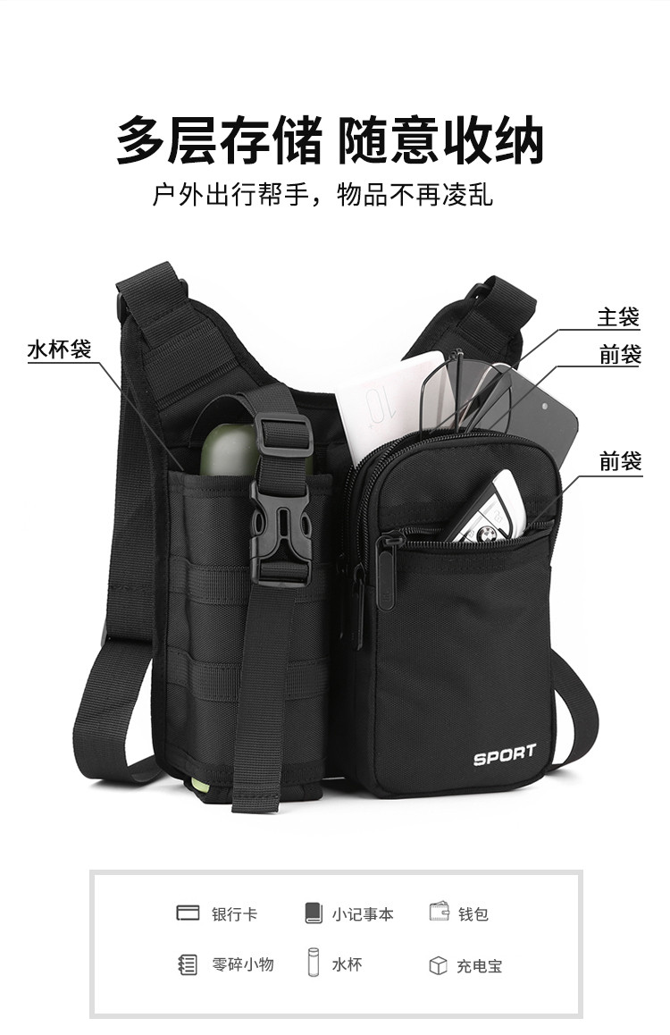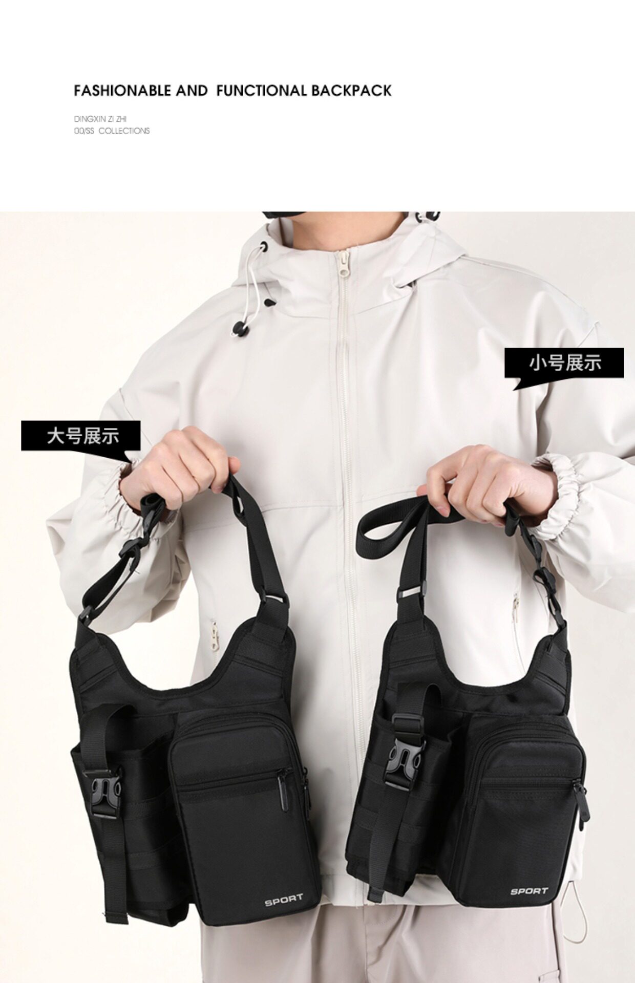 新款男士旅行後後背包戶外運動休閒單肩斜後後背包散步出行方便時尚水杯袋