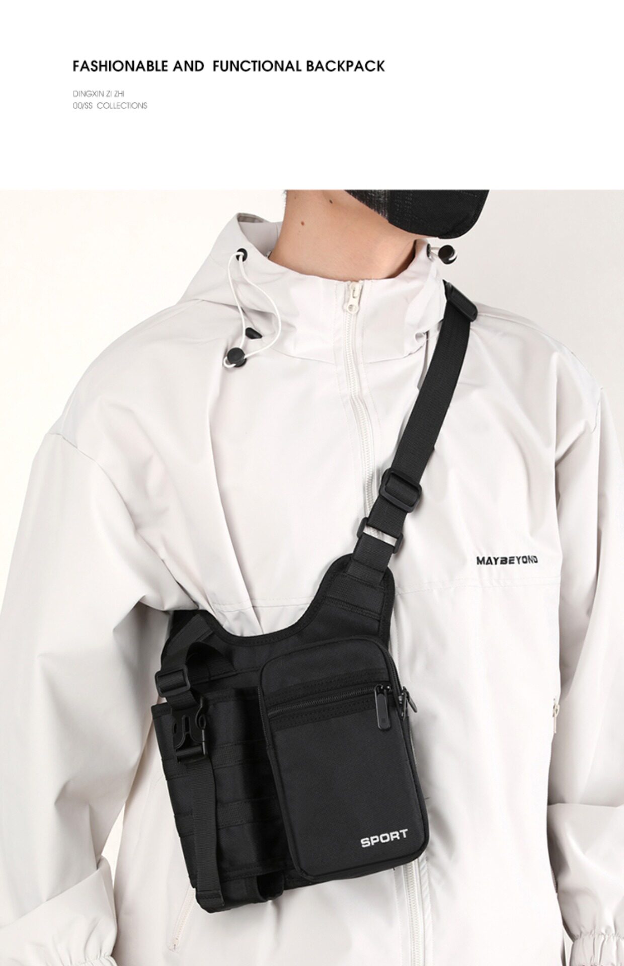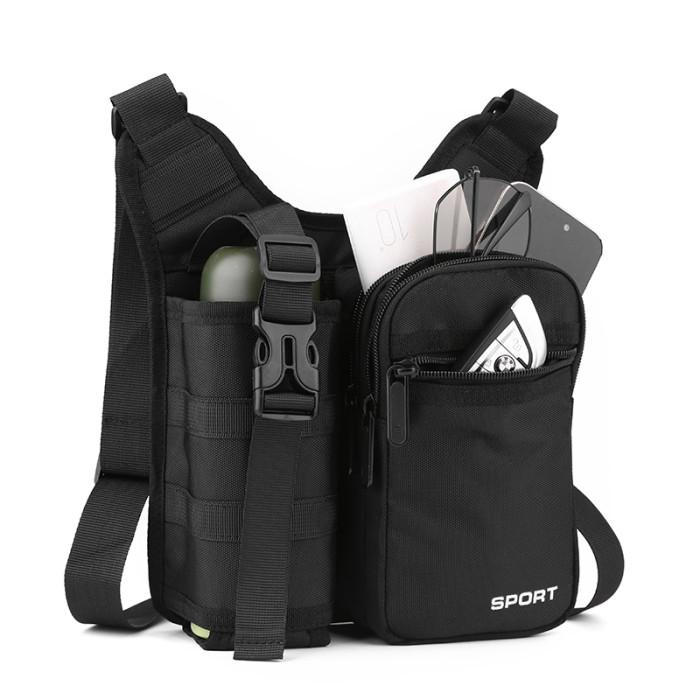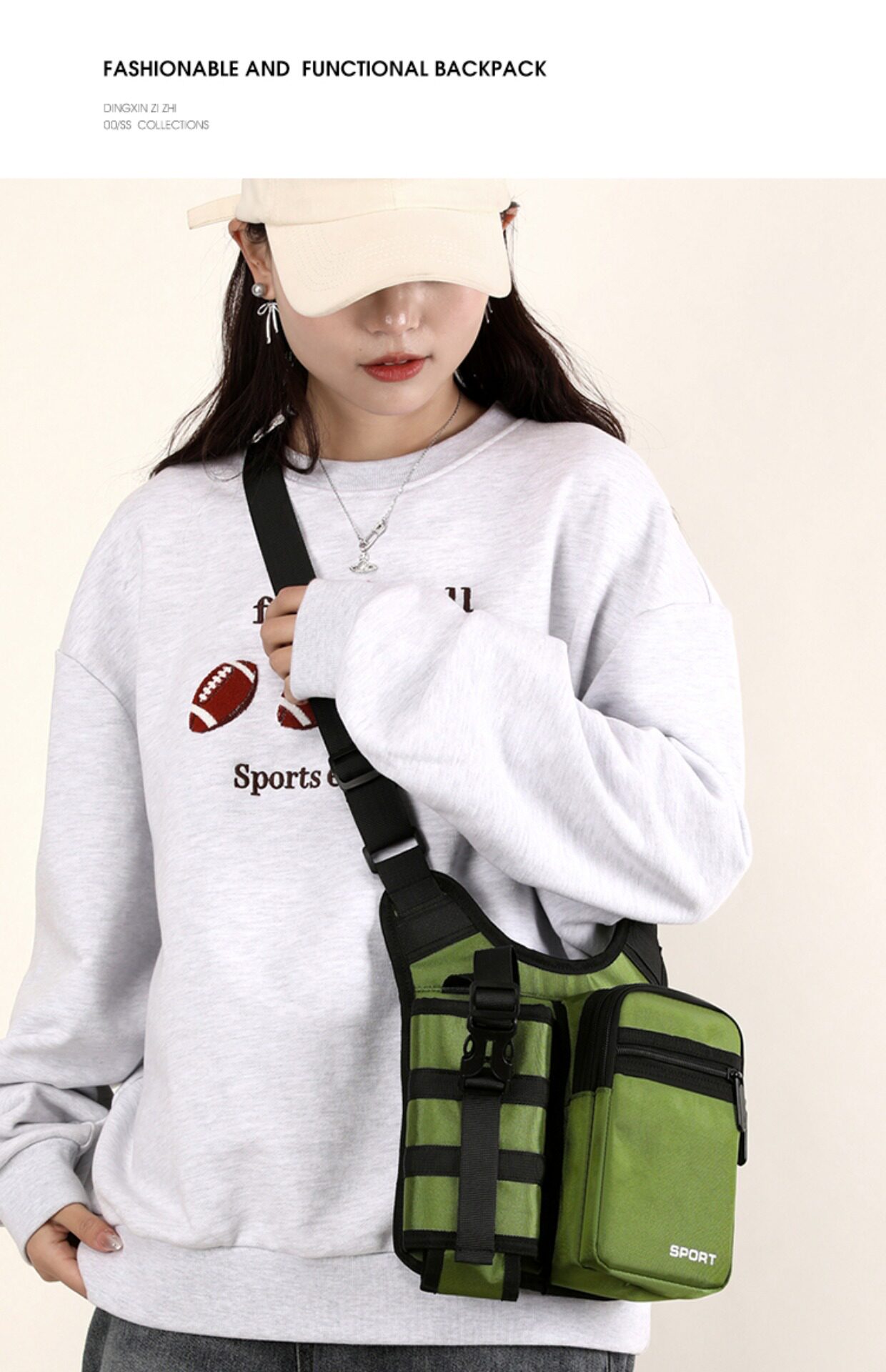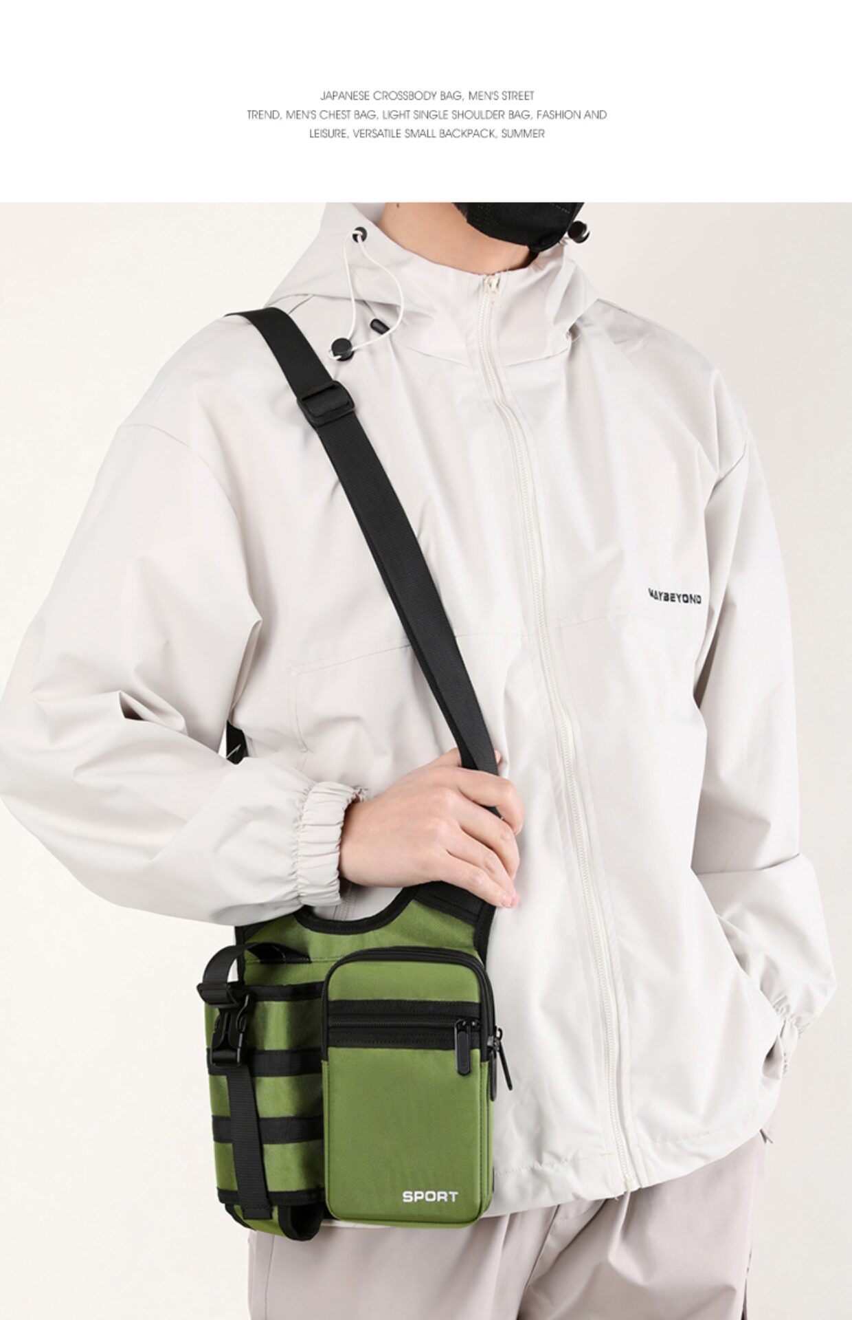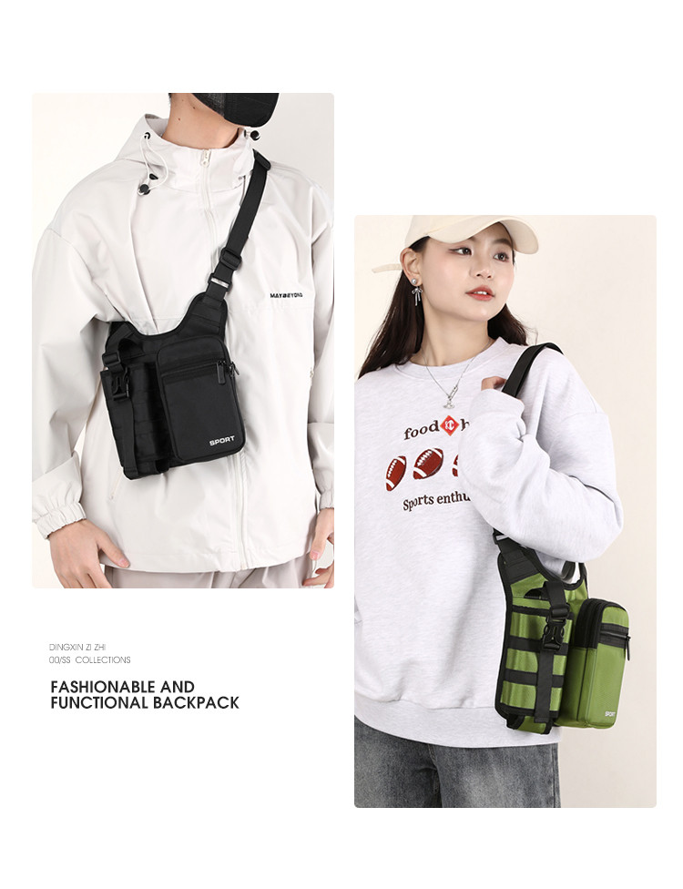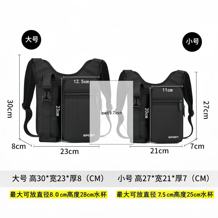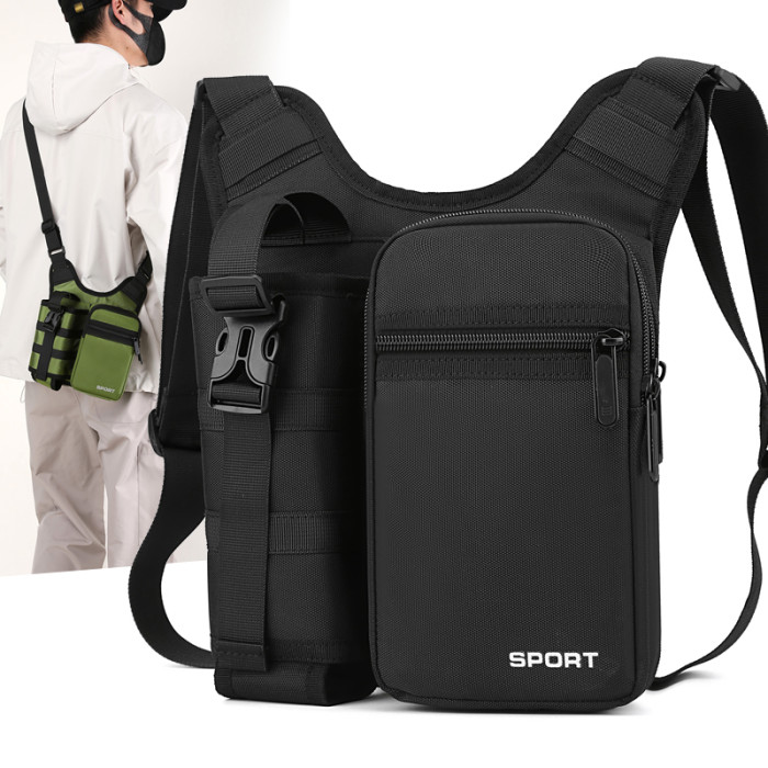 新款男士旅行後後背包戶外運動休閒單肩斜後後背包散步出行方便時尚水杯袋