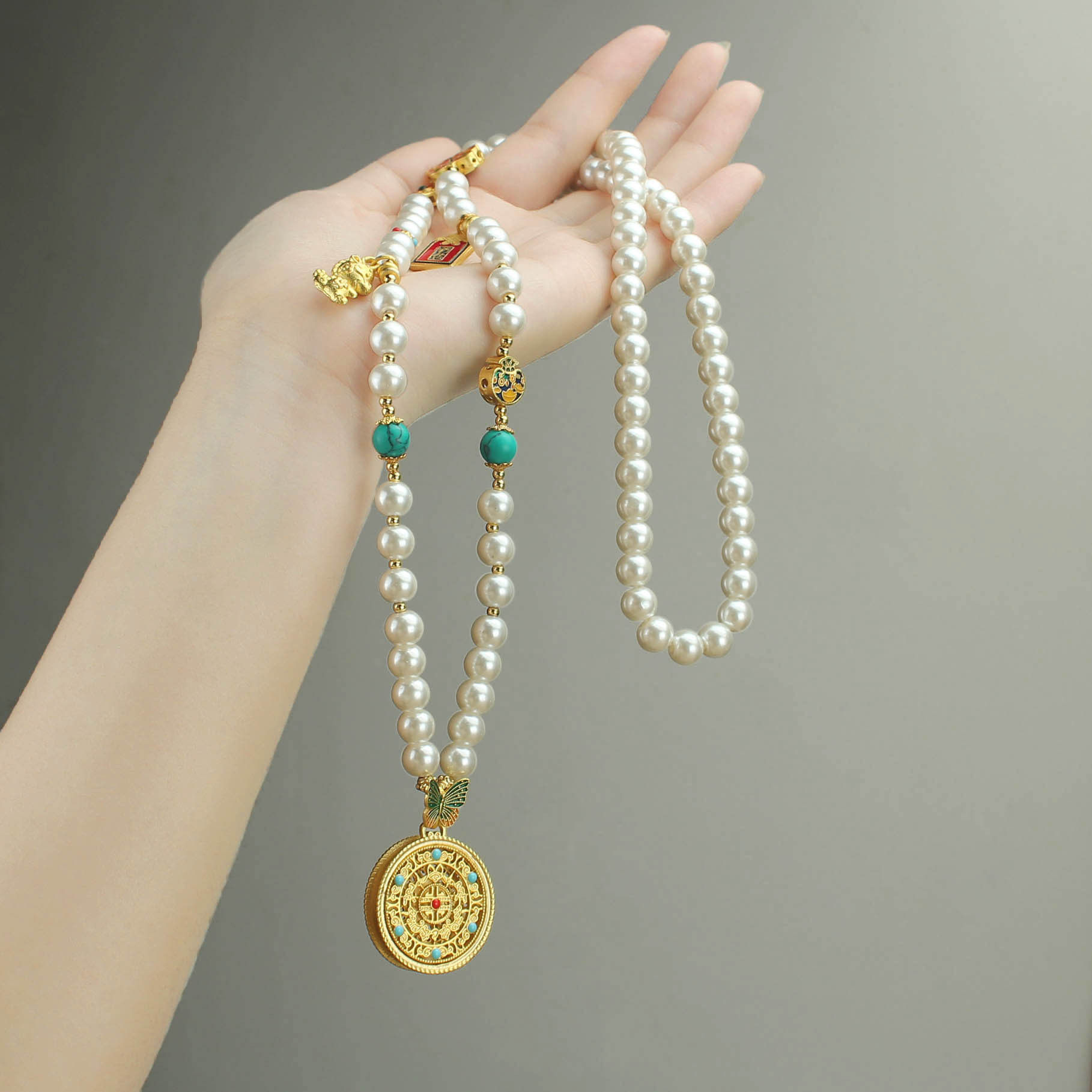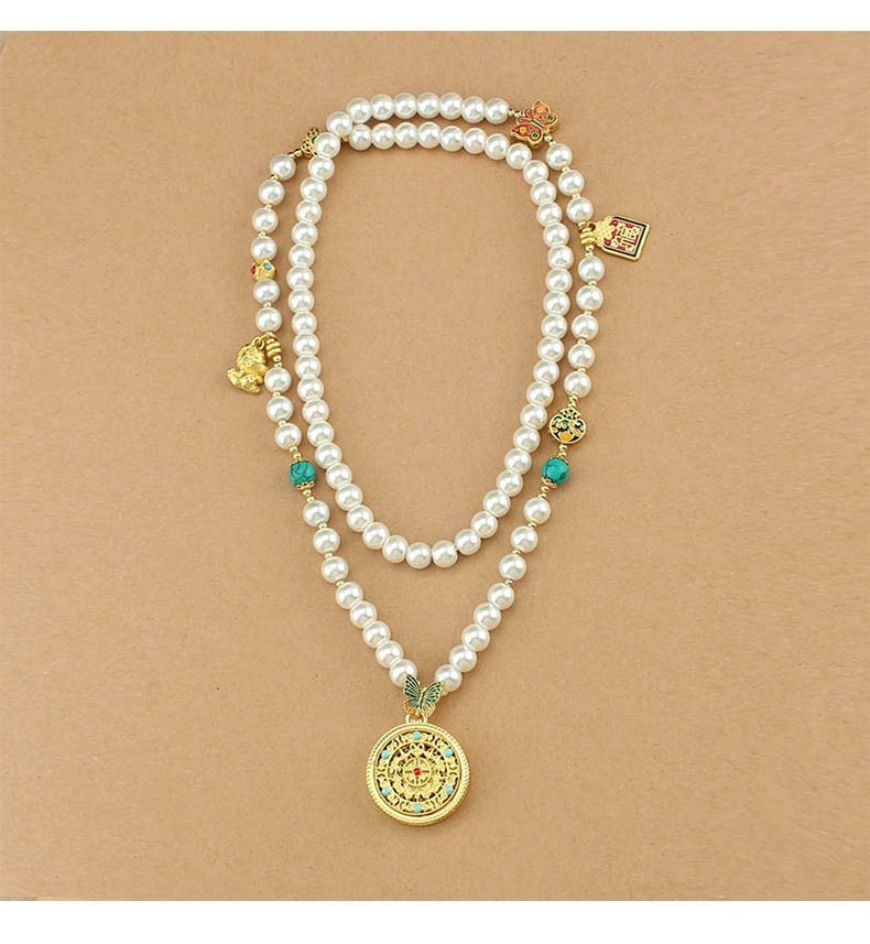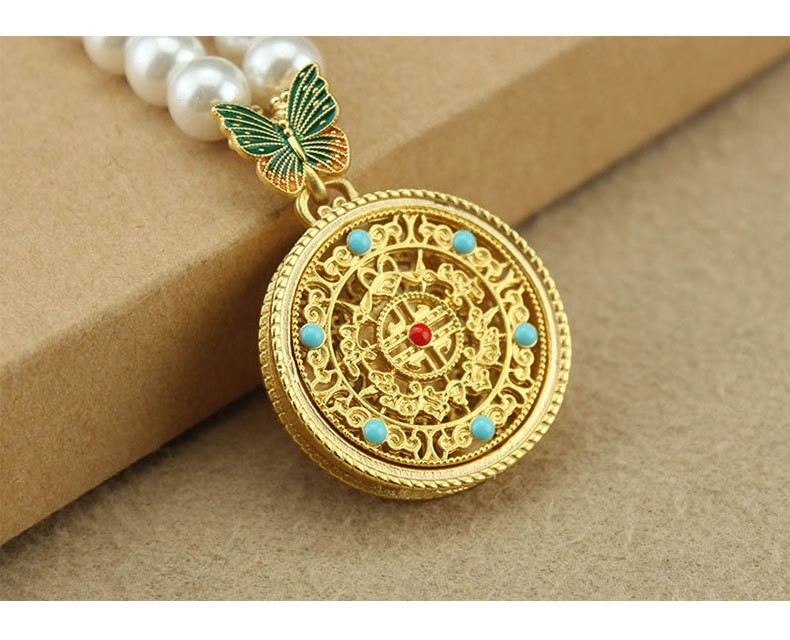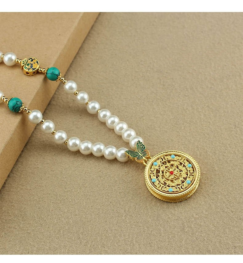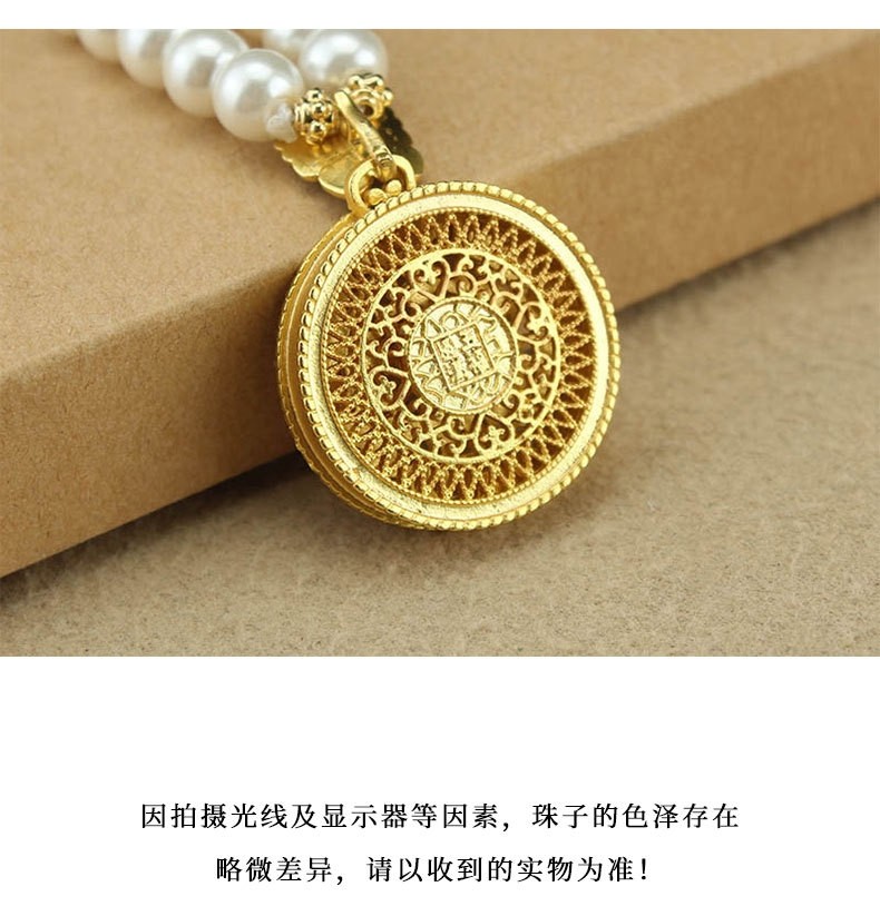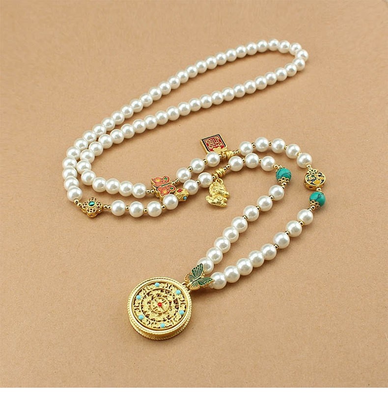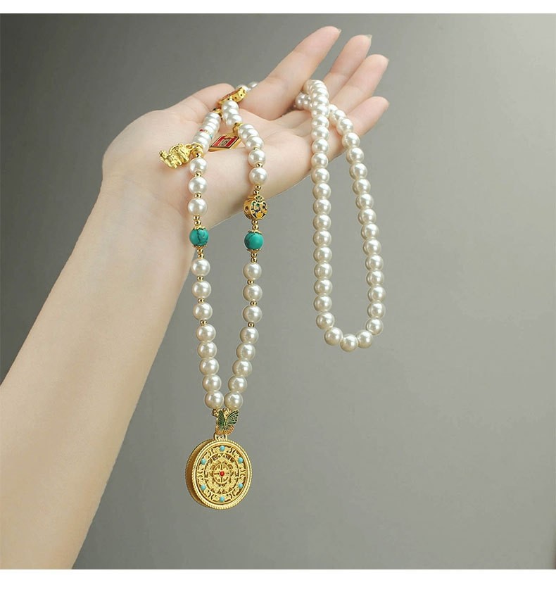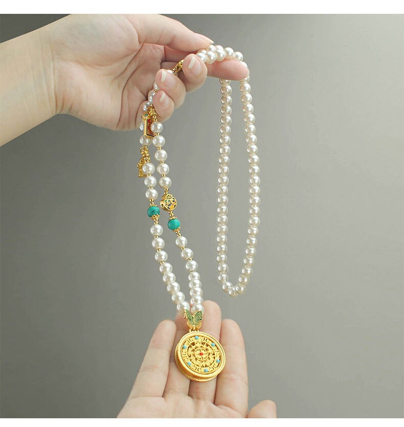 2024新款爆款圓牌吊墜珍珠長款項鍊女新中式國風輕奢小衆高級配飾