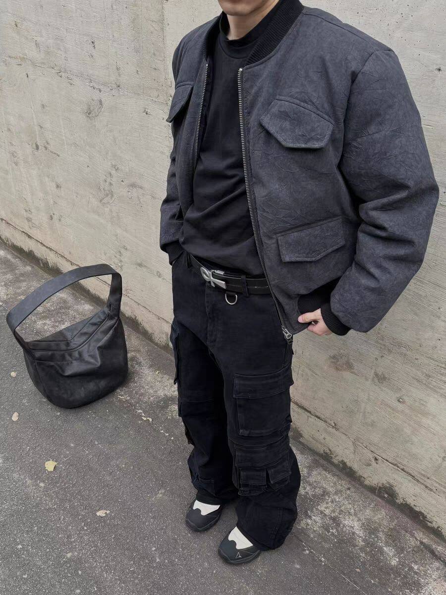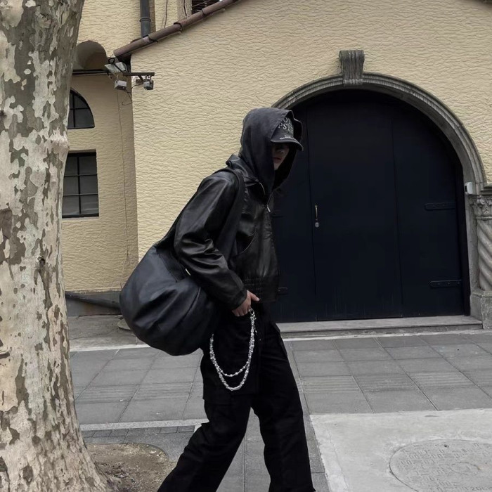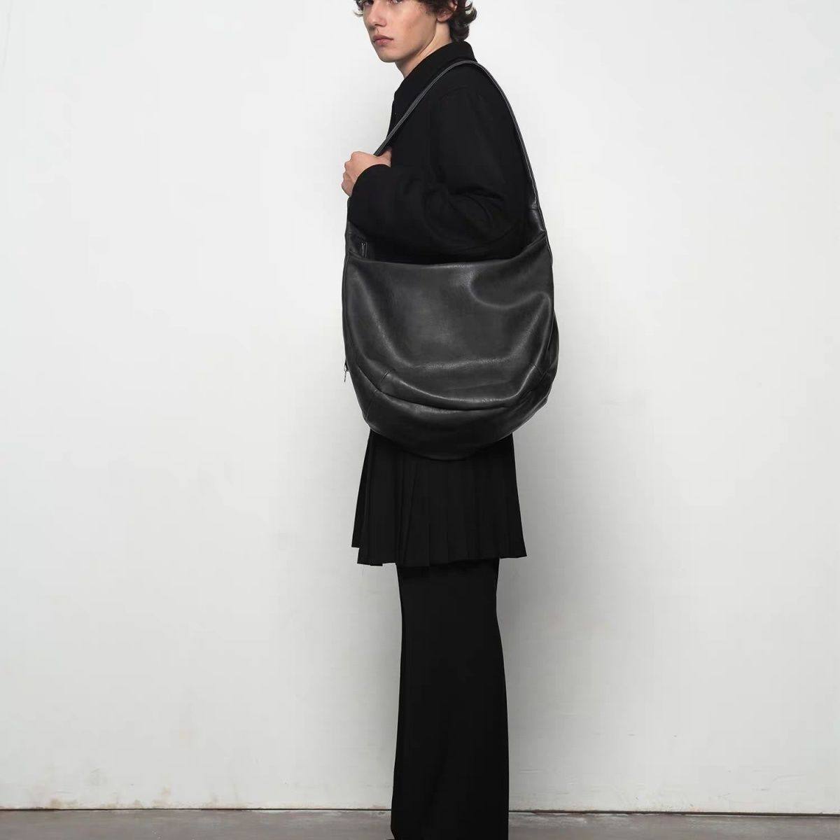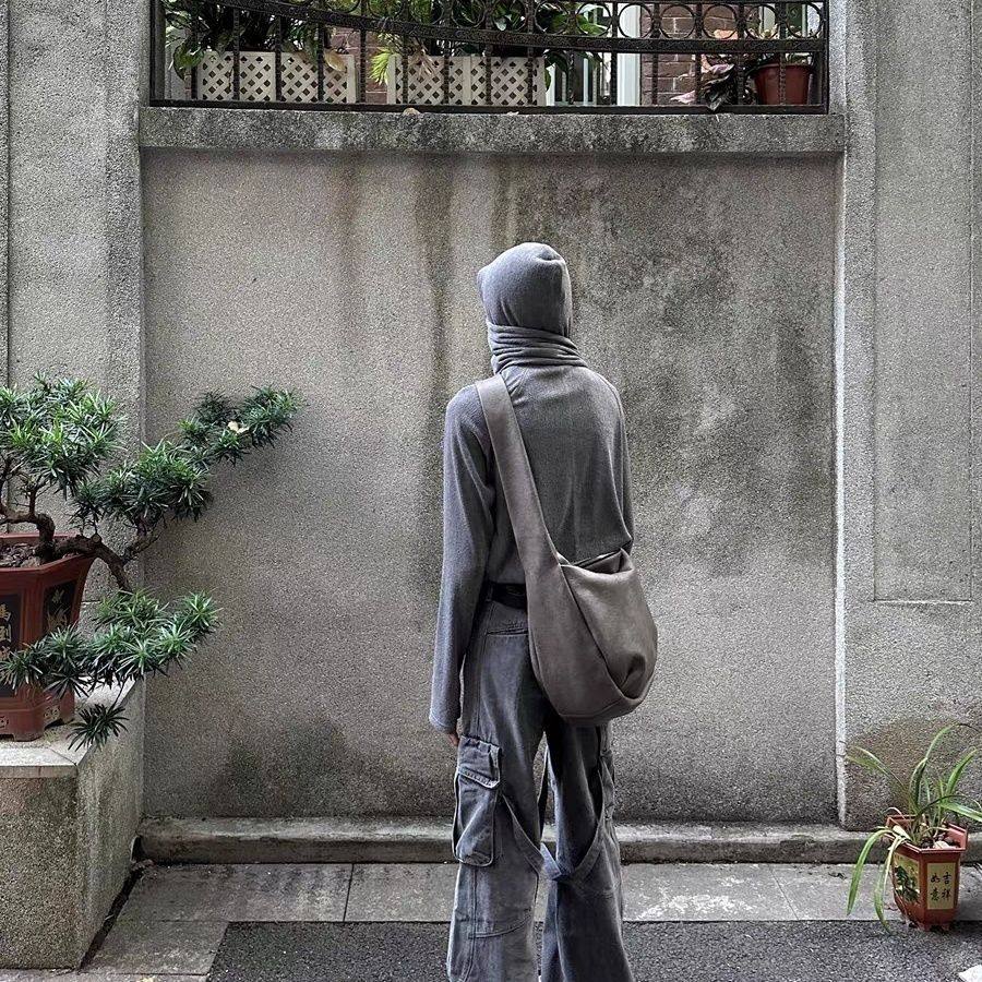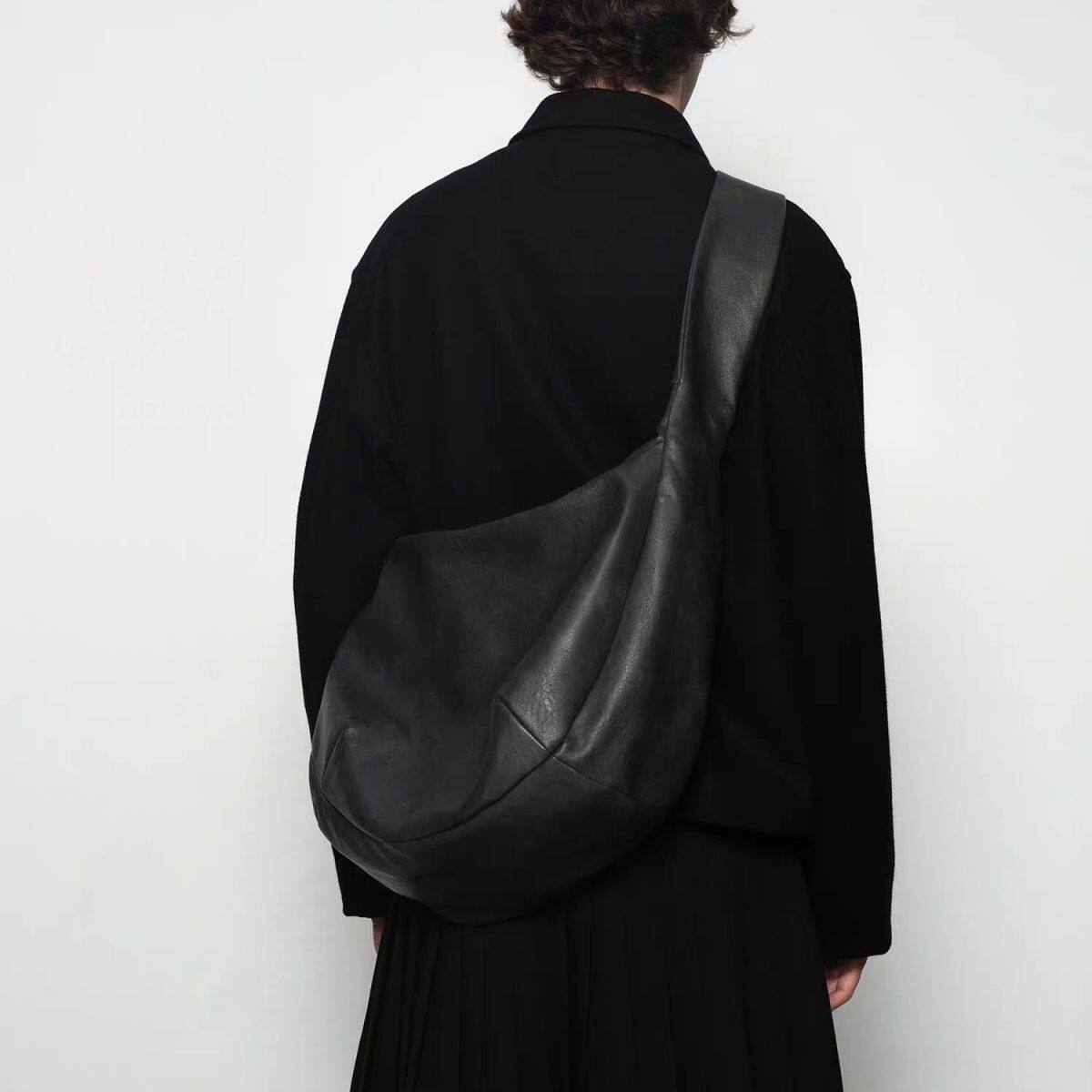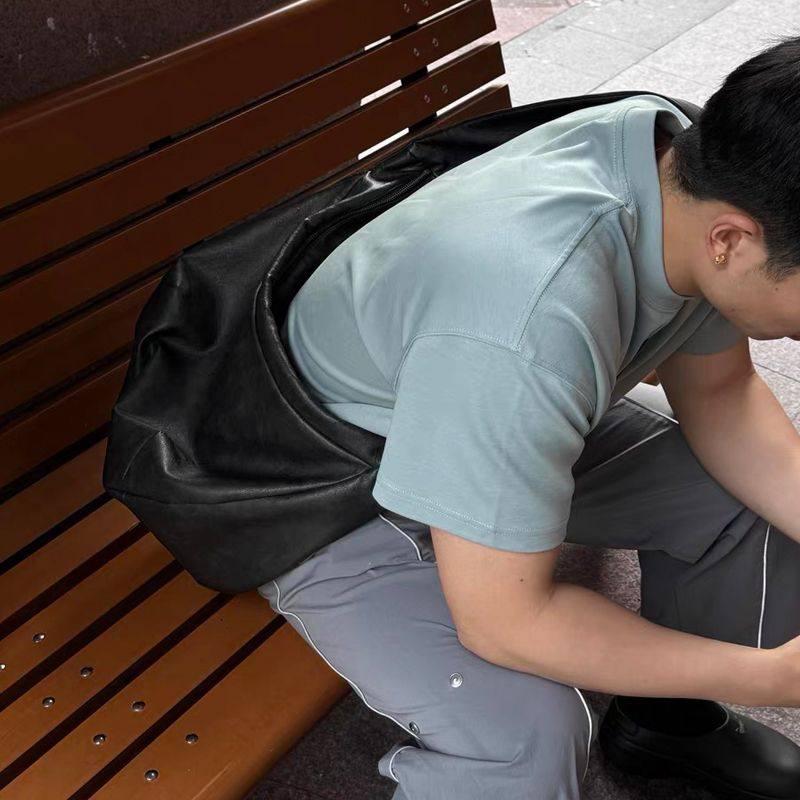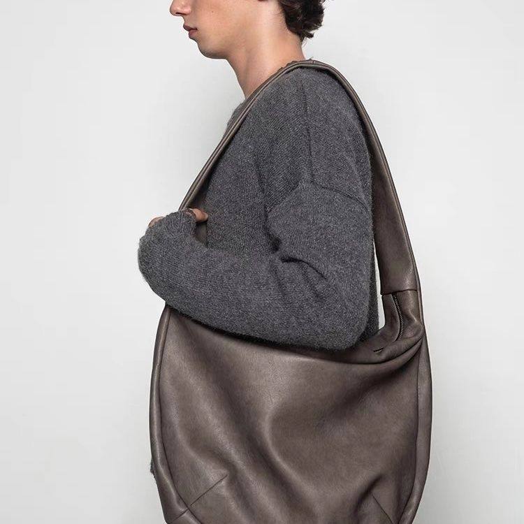 復古ins包休閒斜後後背包大容量單肩托特水洗斑駁斜背打褶皮質流浪包