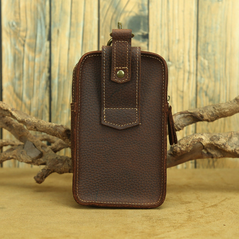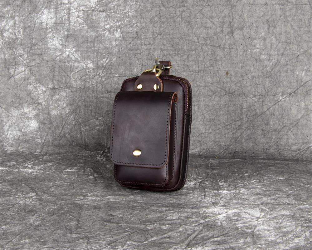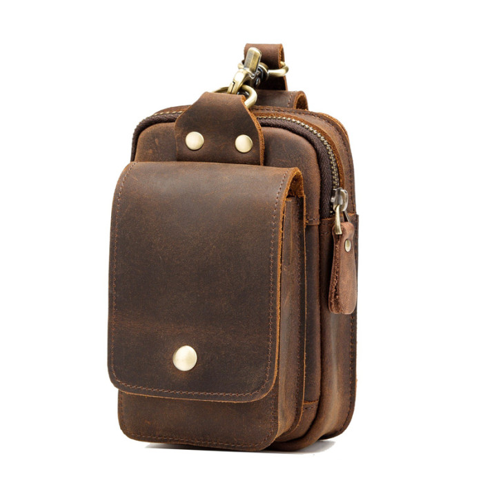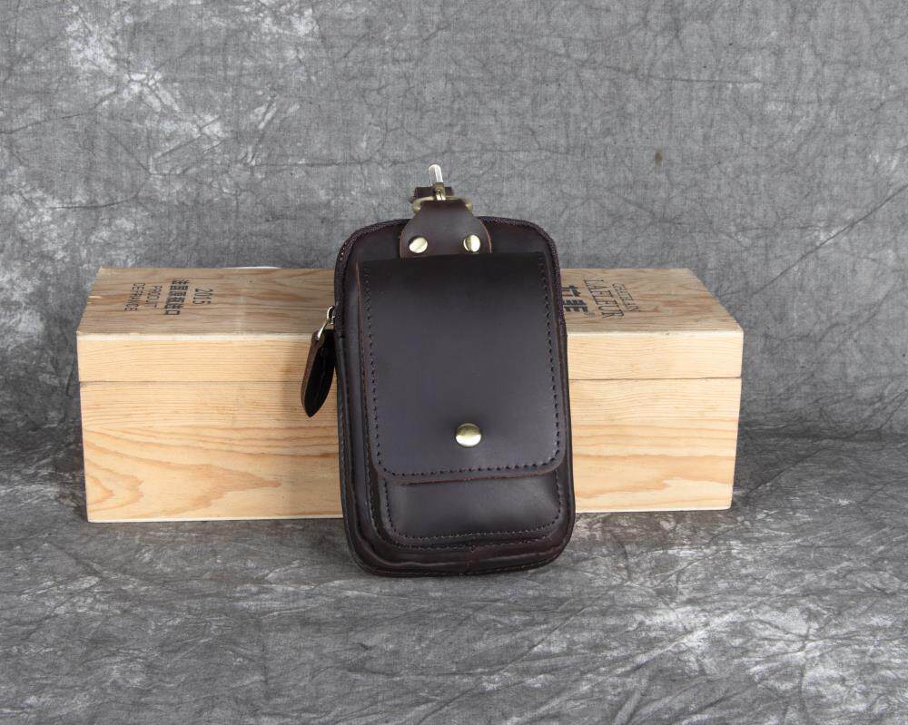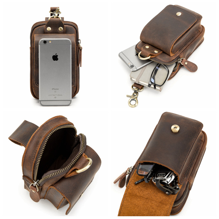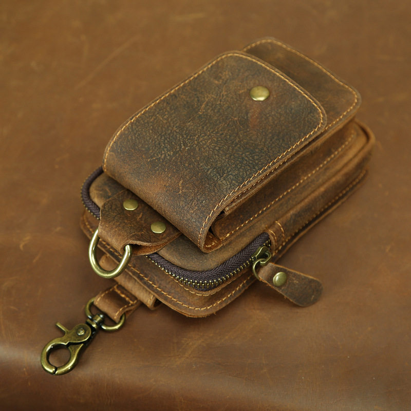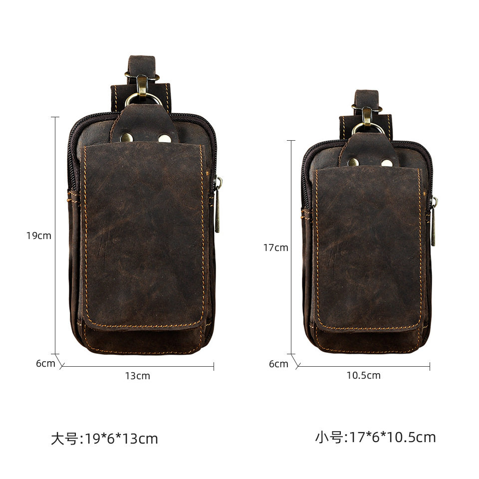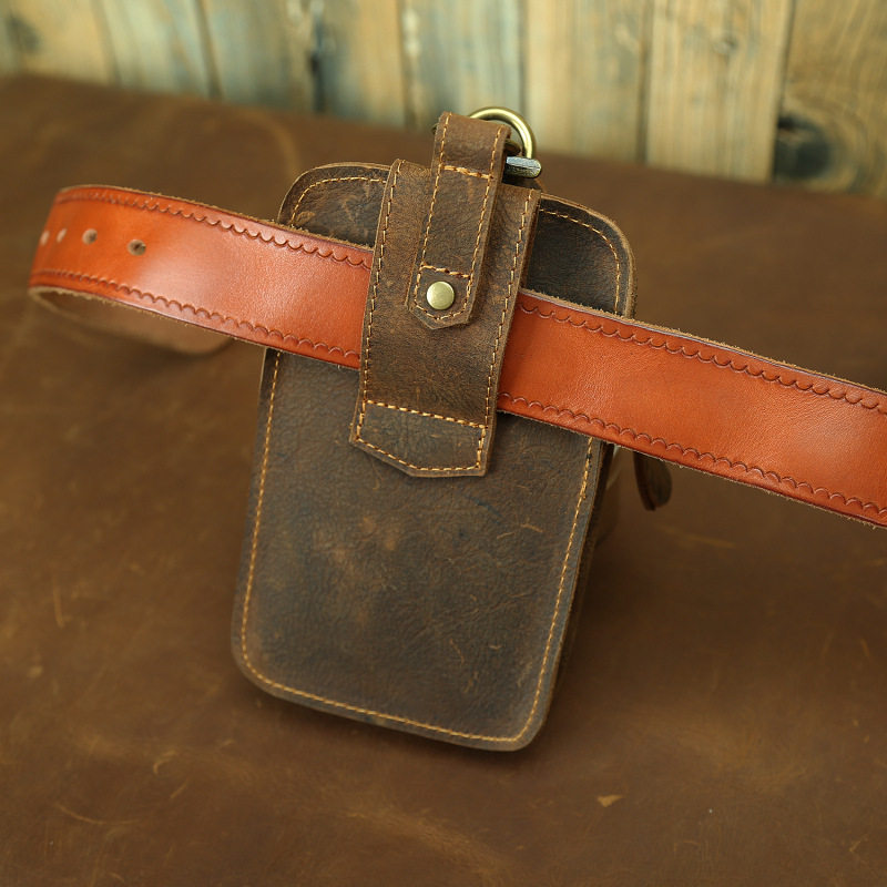 復古頭層牛皮手機包瘋馬皮男士穿皮帶腰包多功能手機套斜背腰掛包