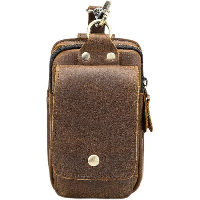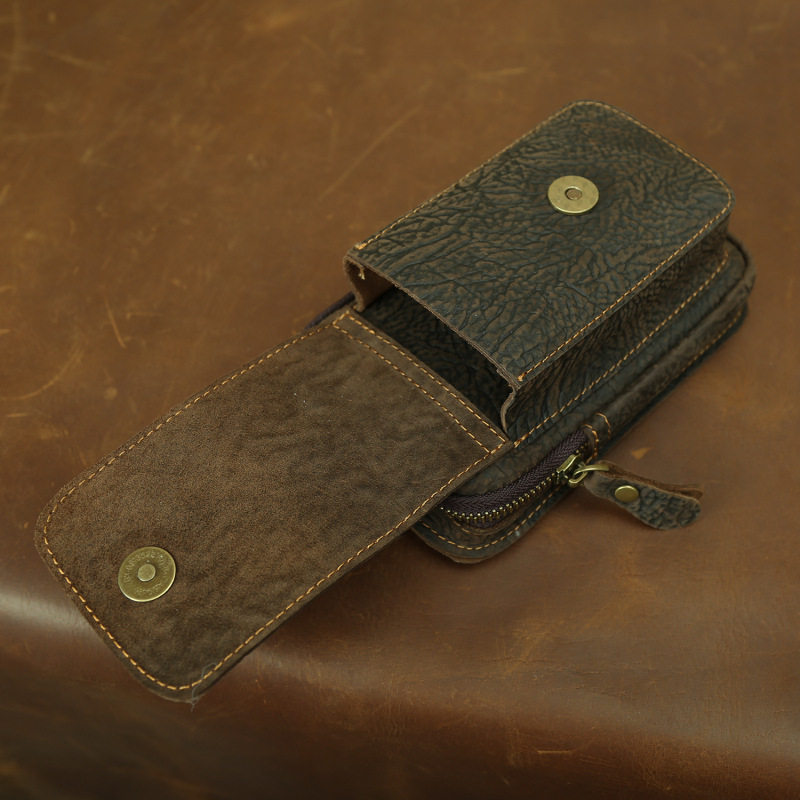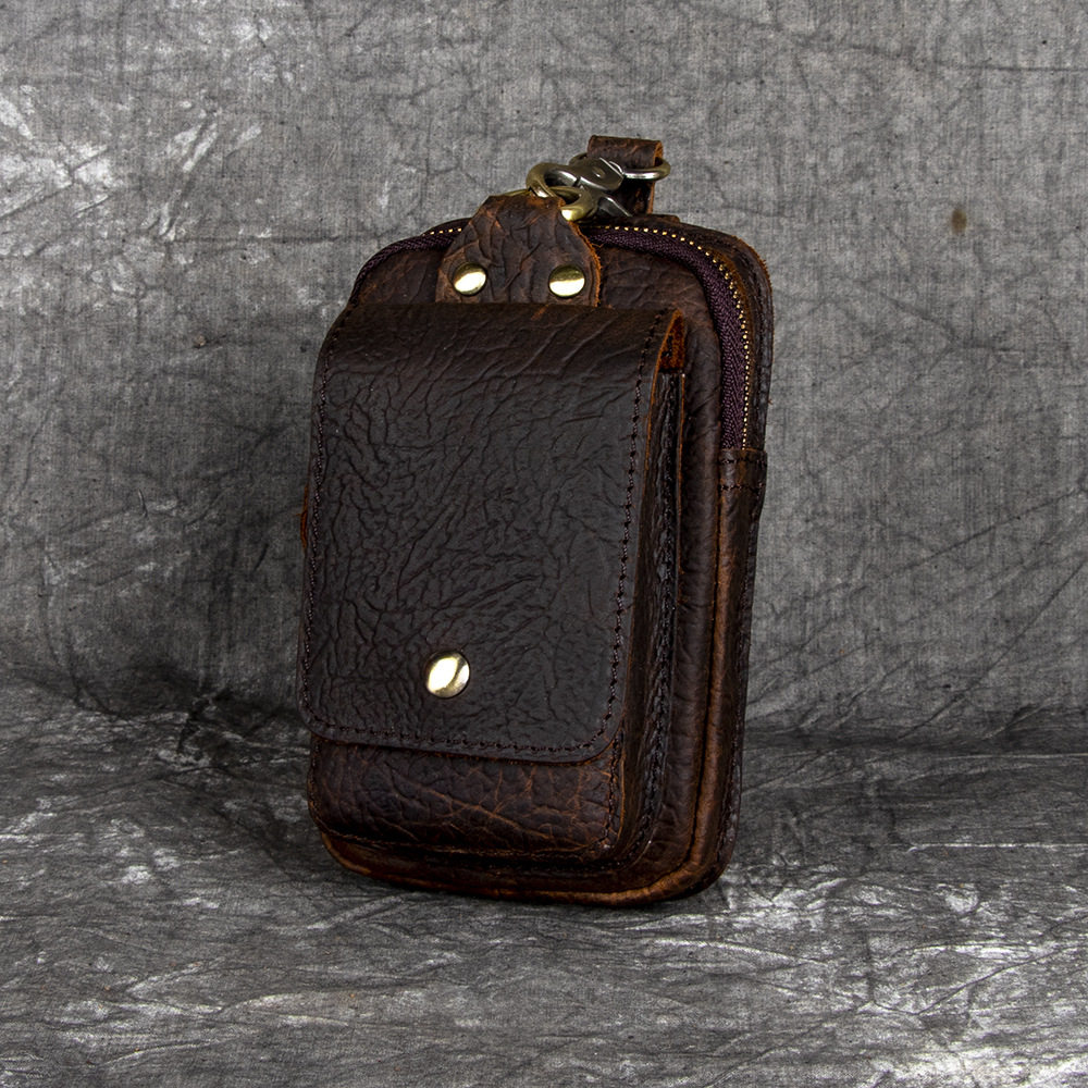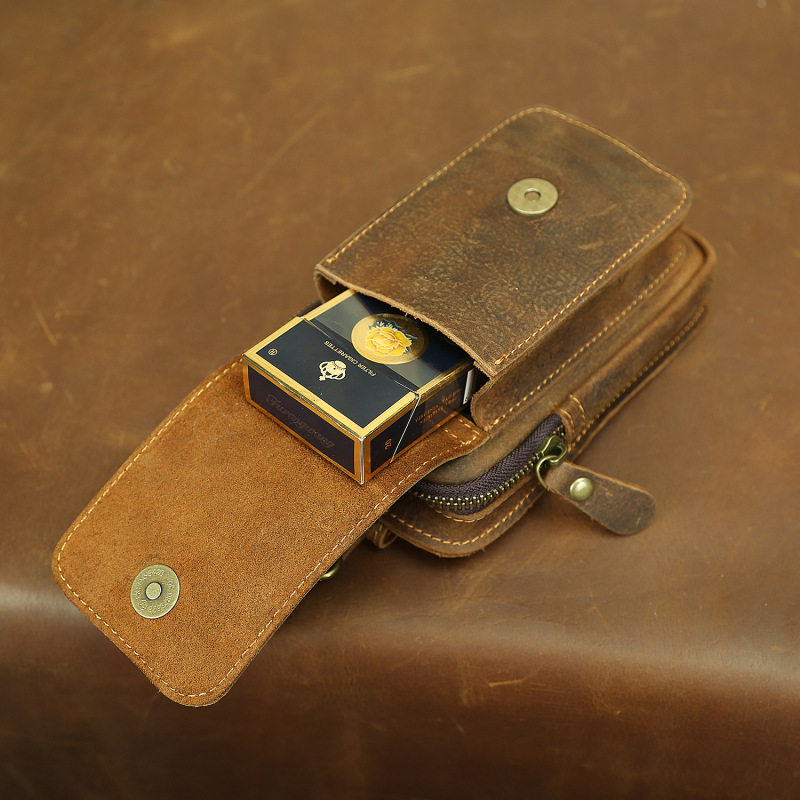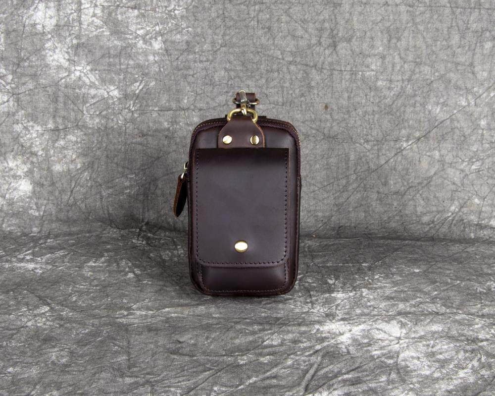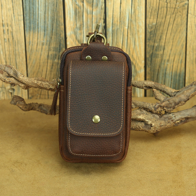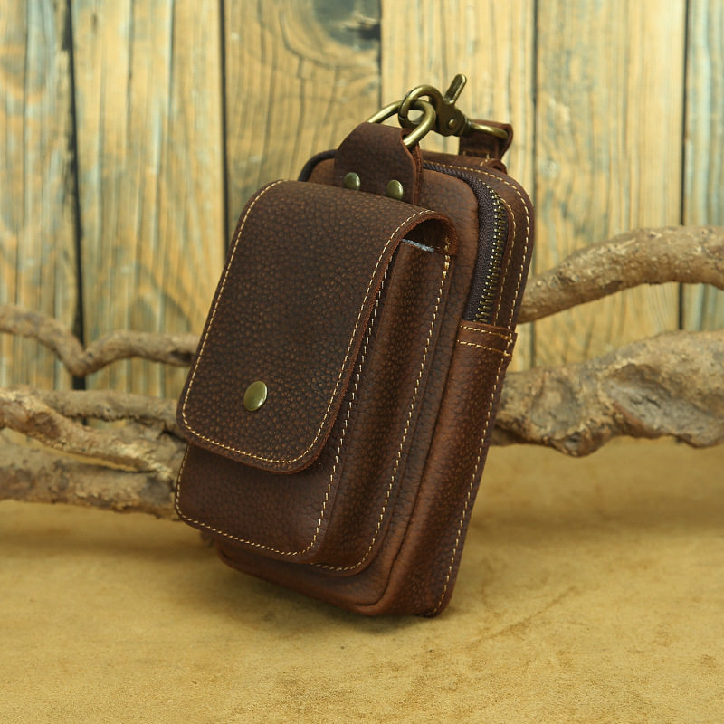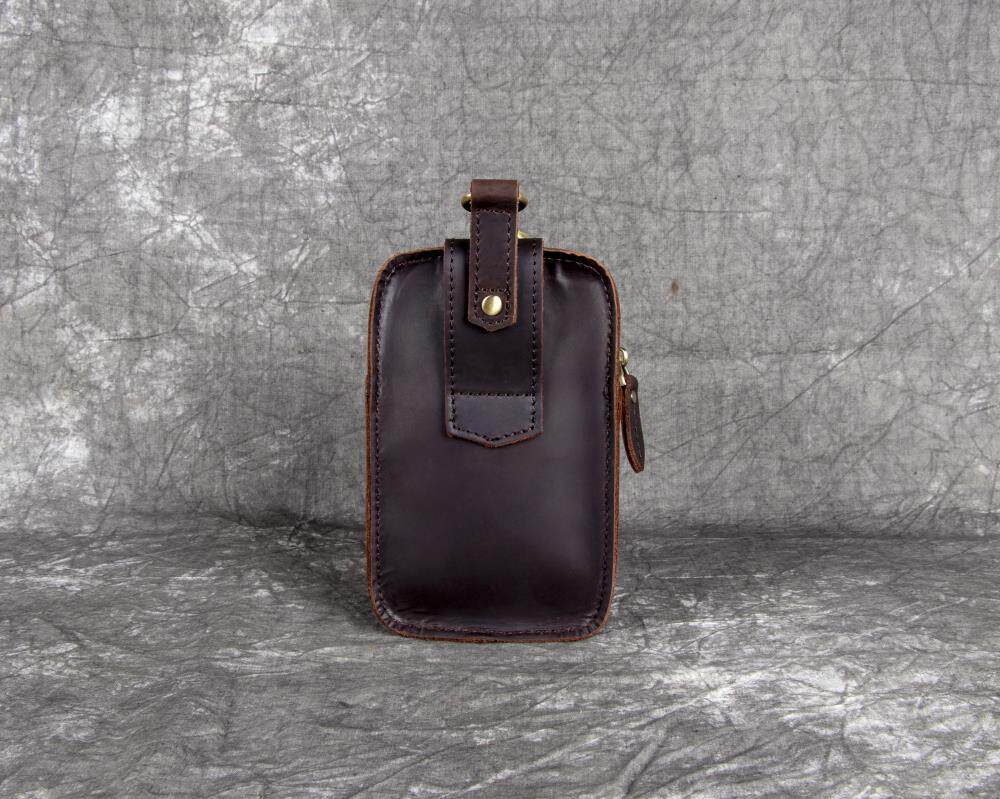 復古頭層牛皮手機包瘋馬皮男士穿皮帶腰包多功能手機套斜背腰掛包