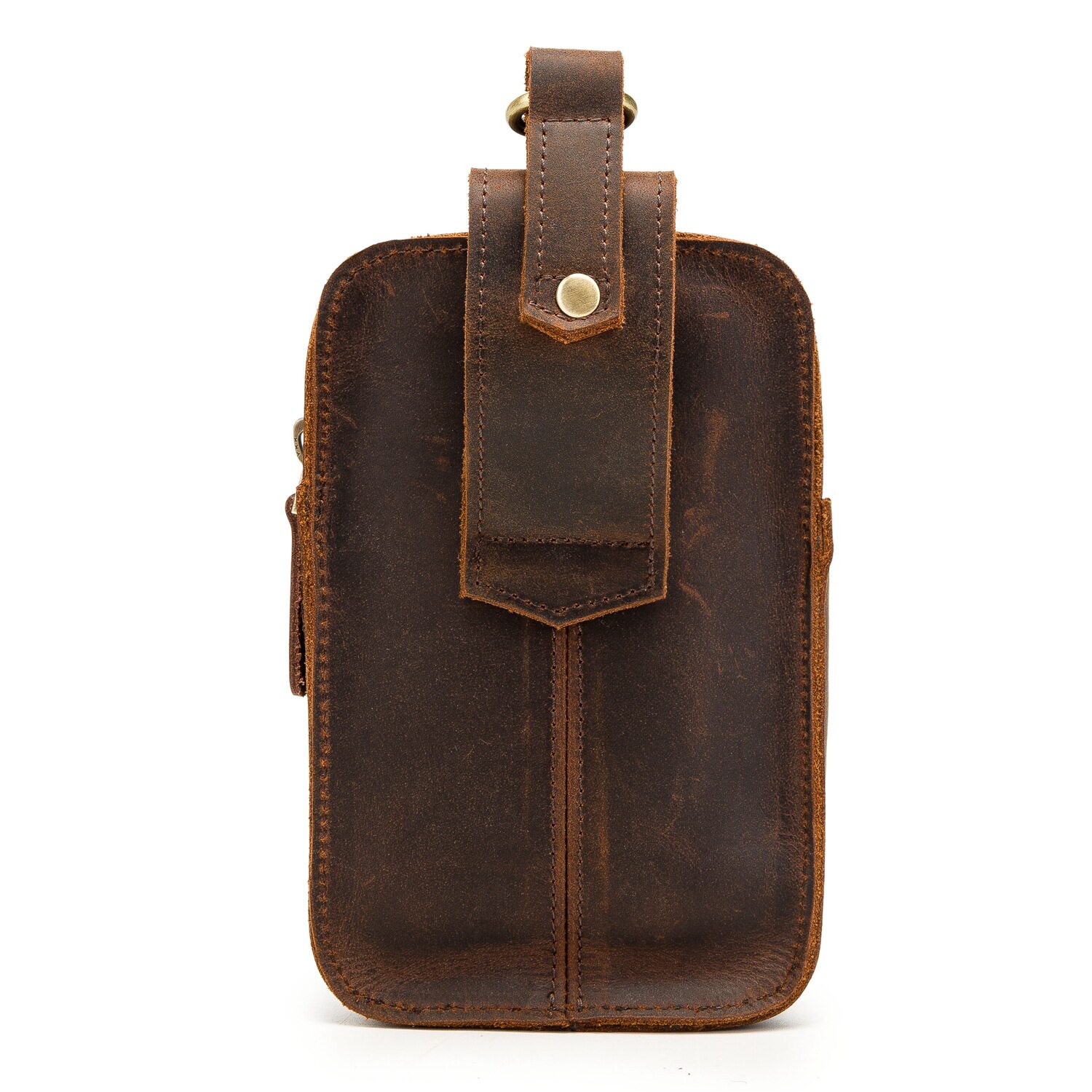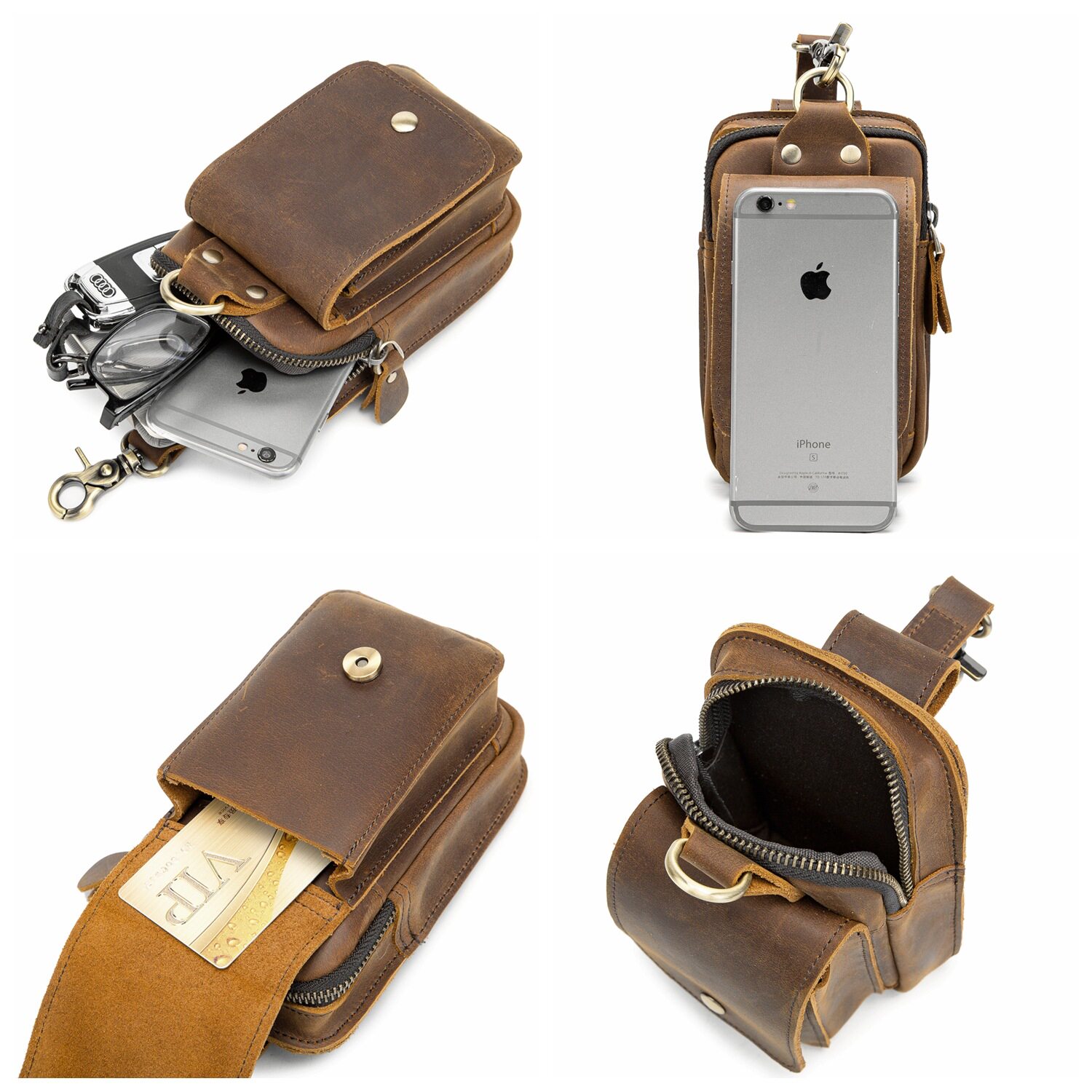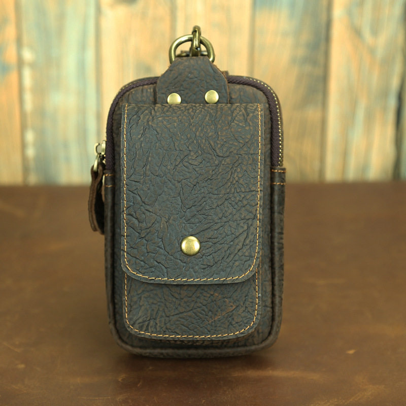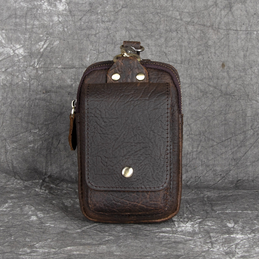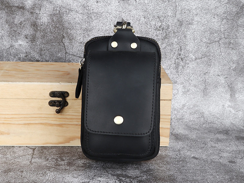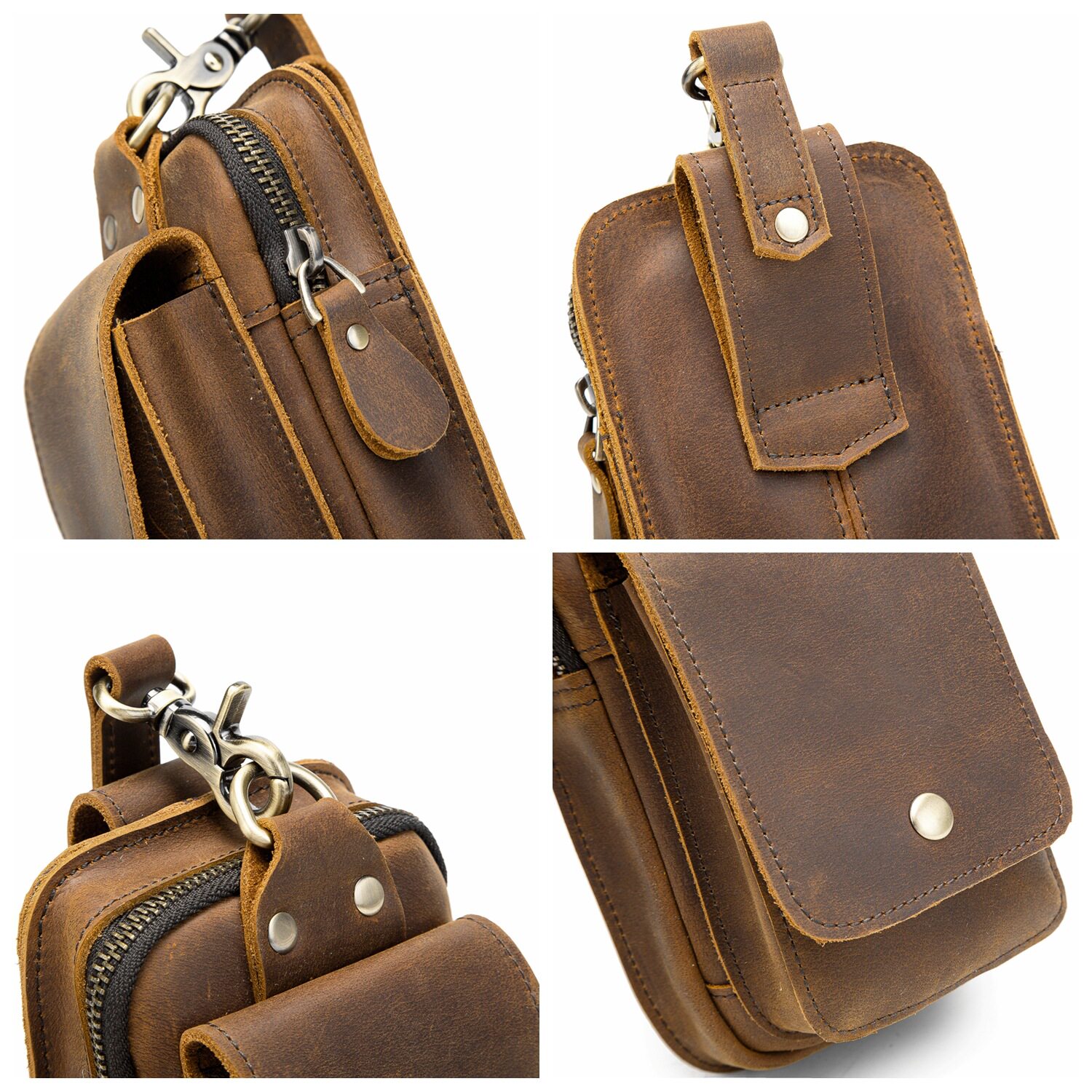 復古頭層牛皮手機包瘋馬皮男士穿皮帶腰包多功能手機套斜背腰掛包