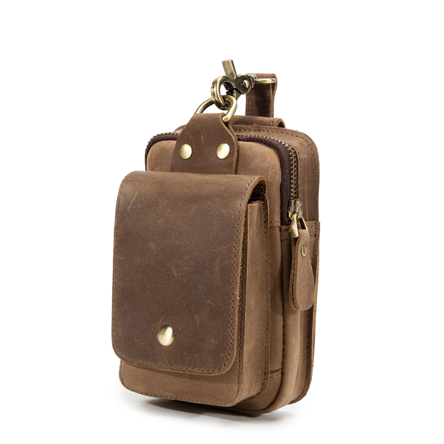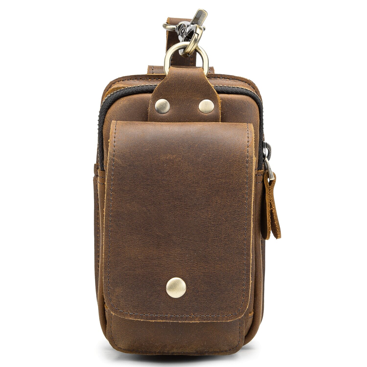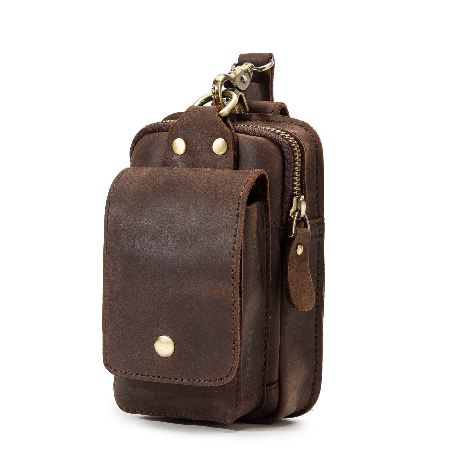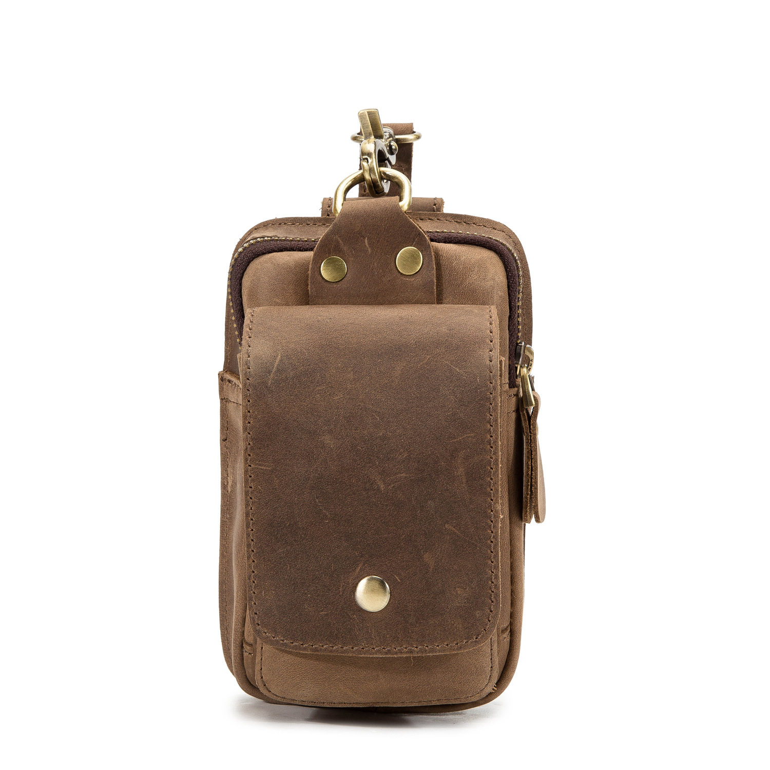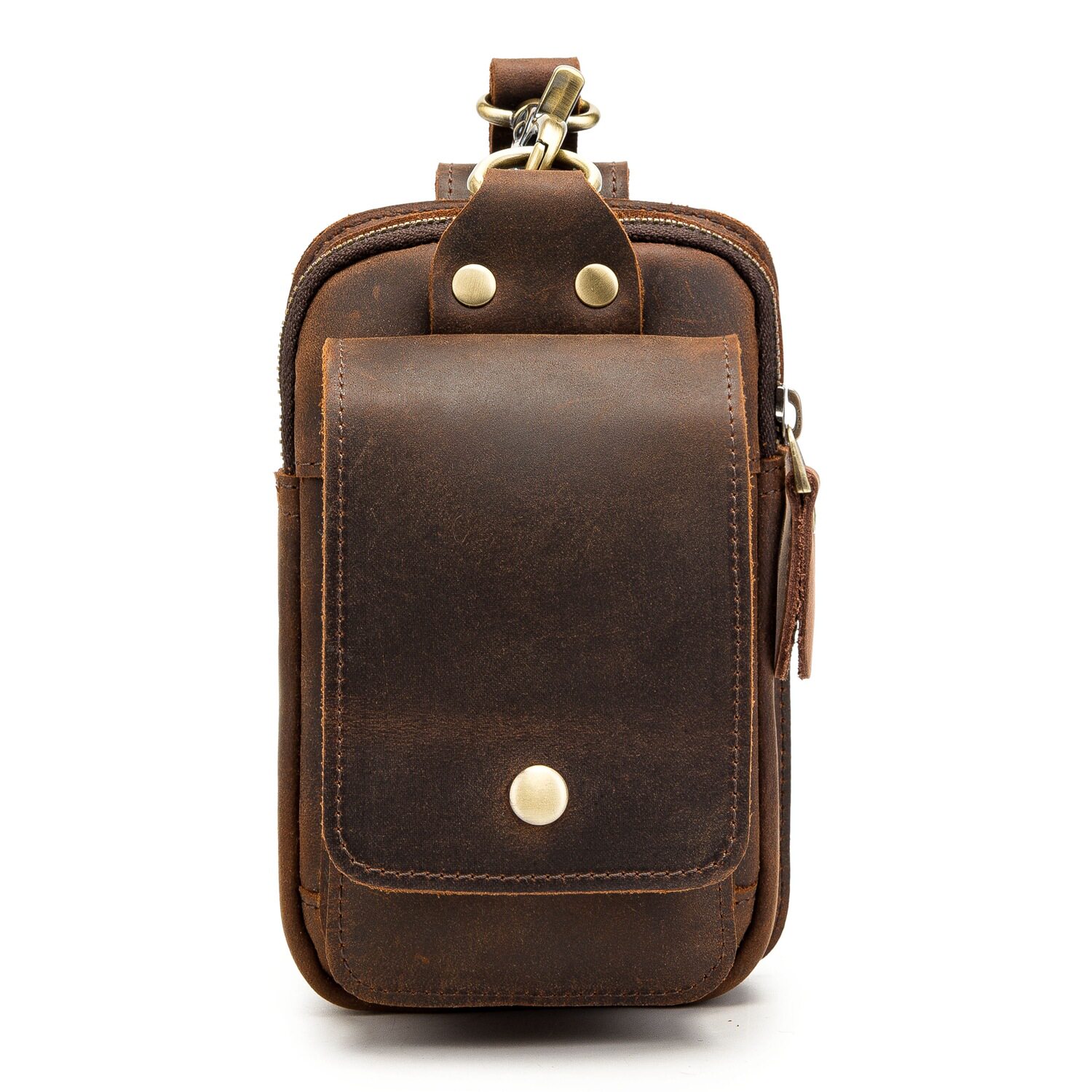 復古頭層牛皮手機包瘋馬皮男士穿皮帶腰包多功能手機套斜背腰掛包