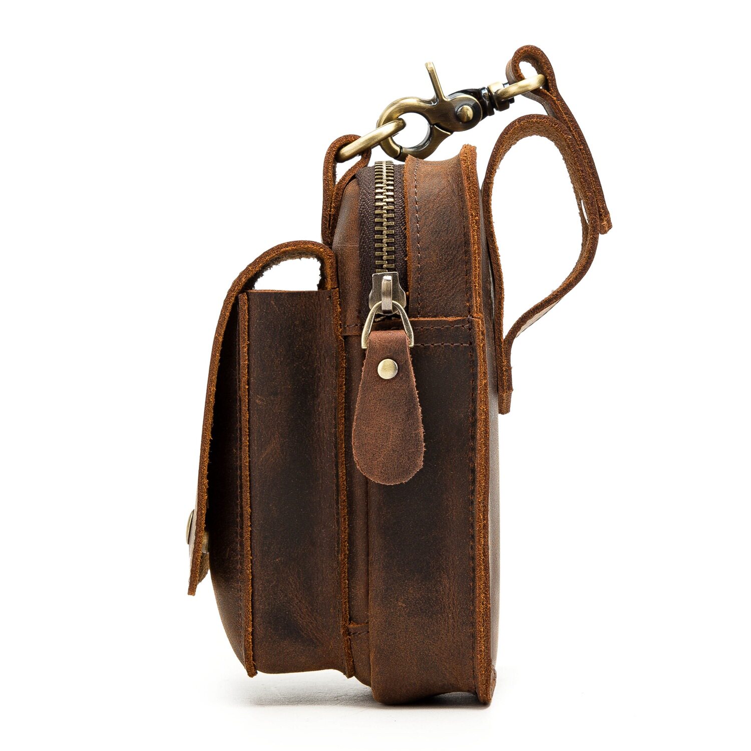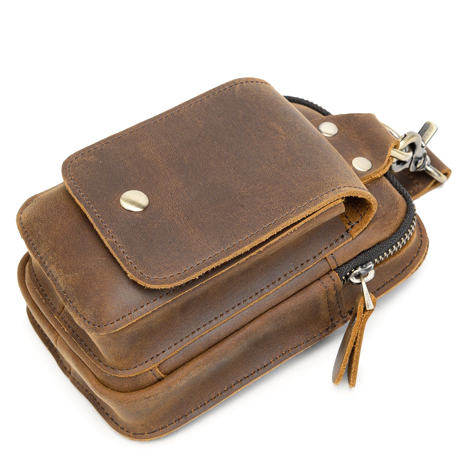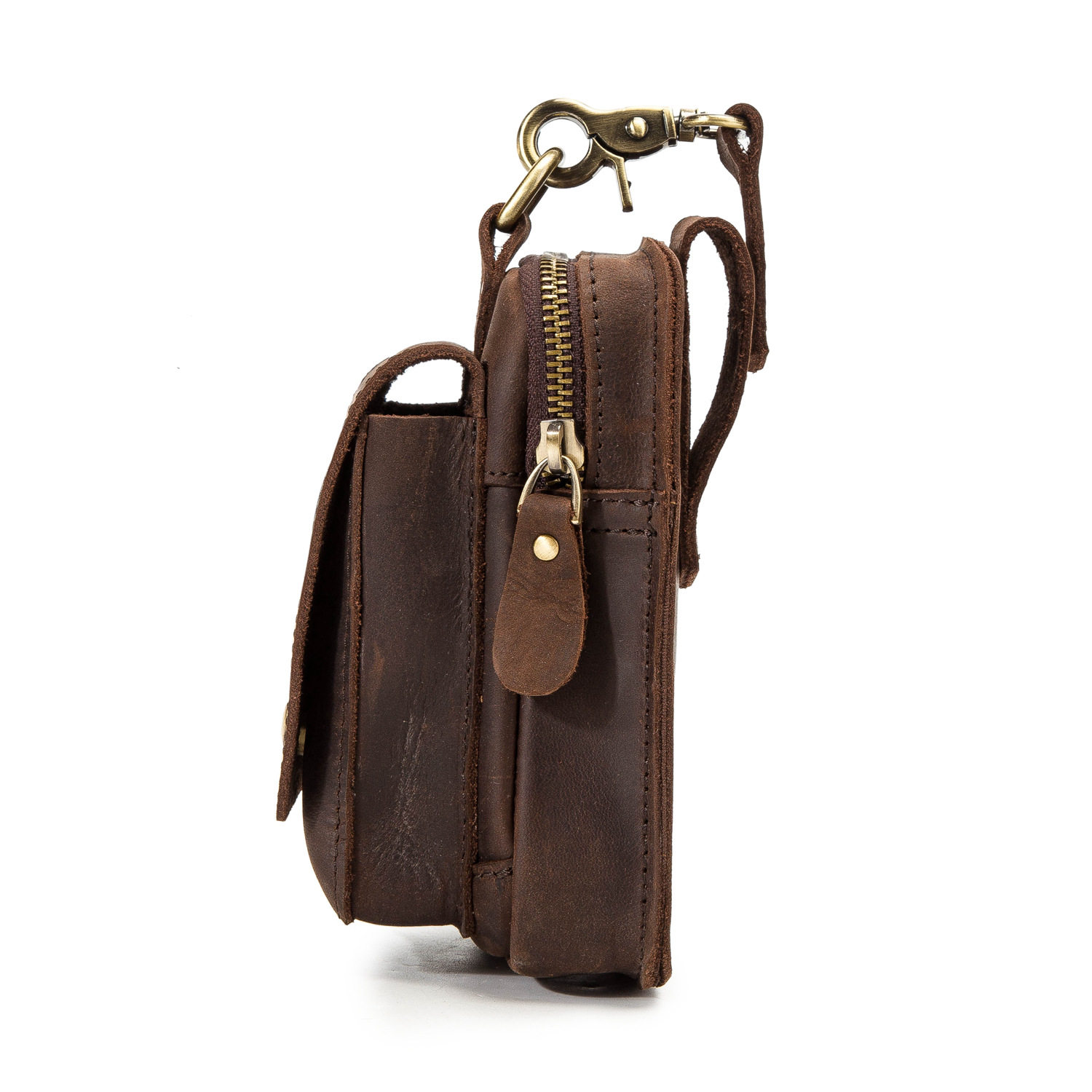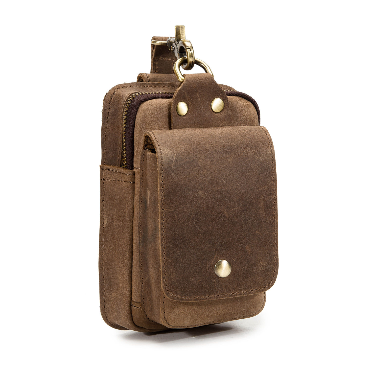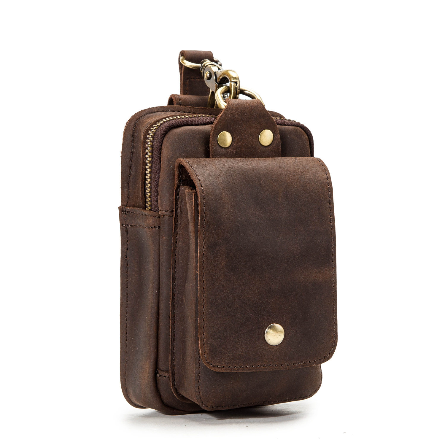 復古頭層牛皮手機包瘋馬皮男士穿皮帶腰包多功能手機套斜背腰掛包
