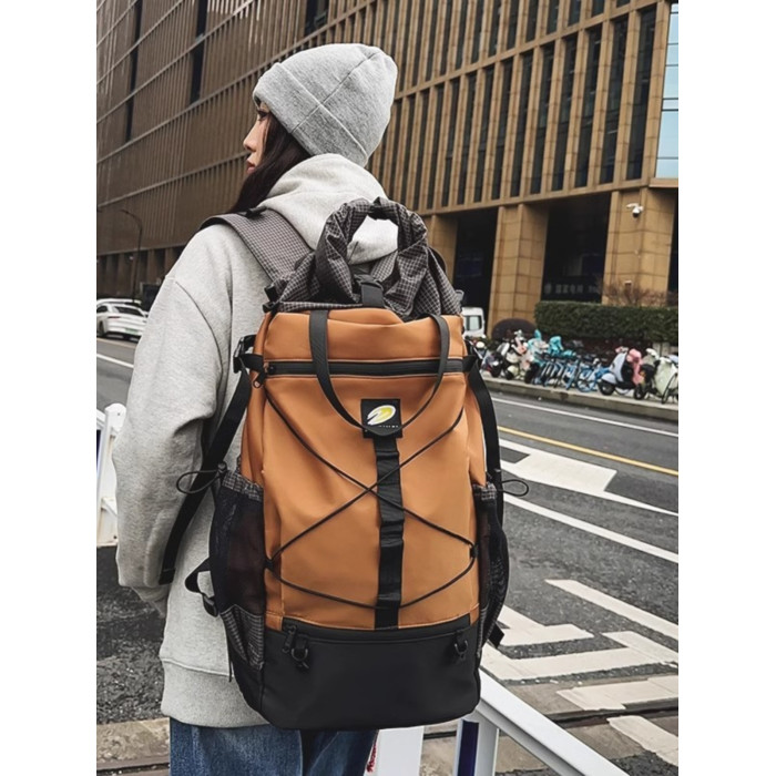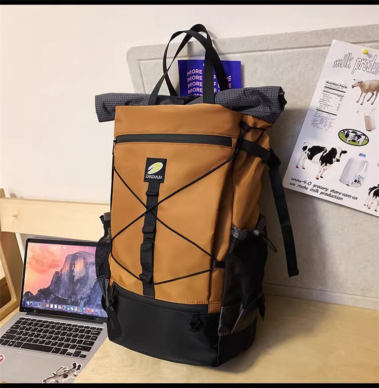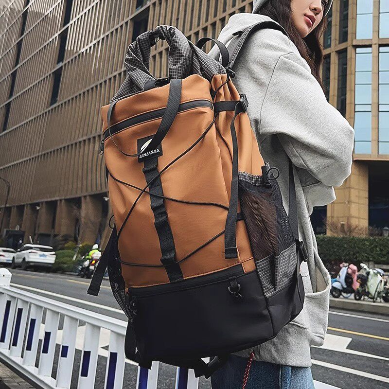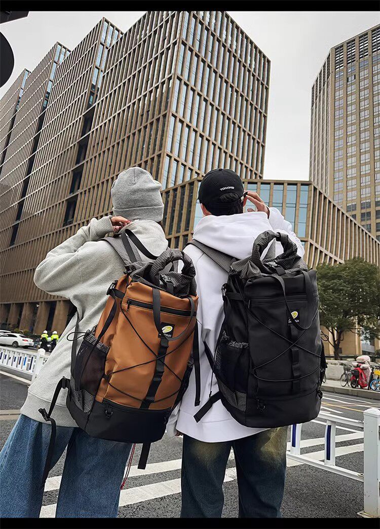 美式雙肩後後背包男高級感運動健身包雙肩包女款旅遊防水旅行包大容量