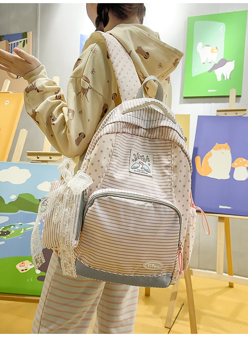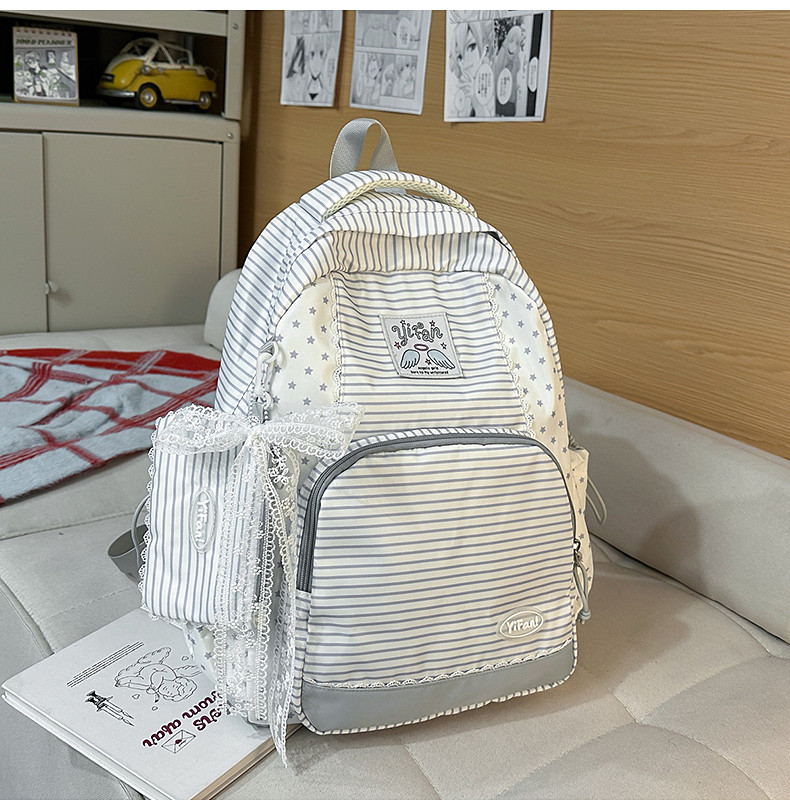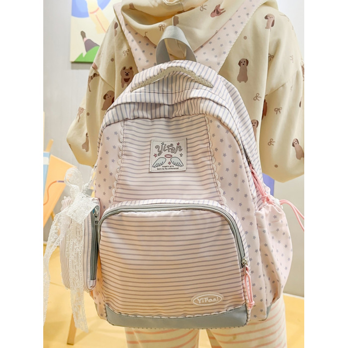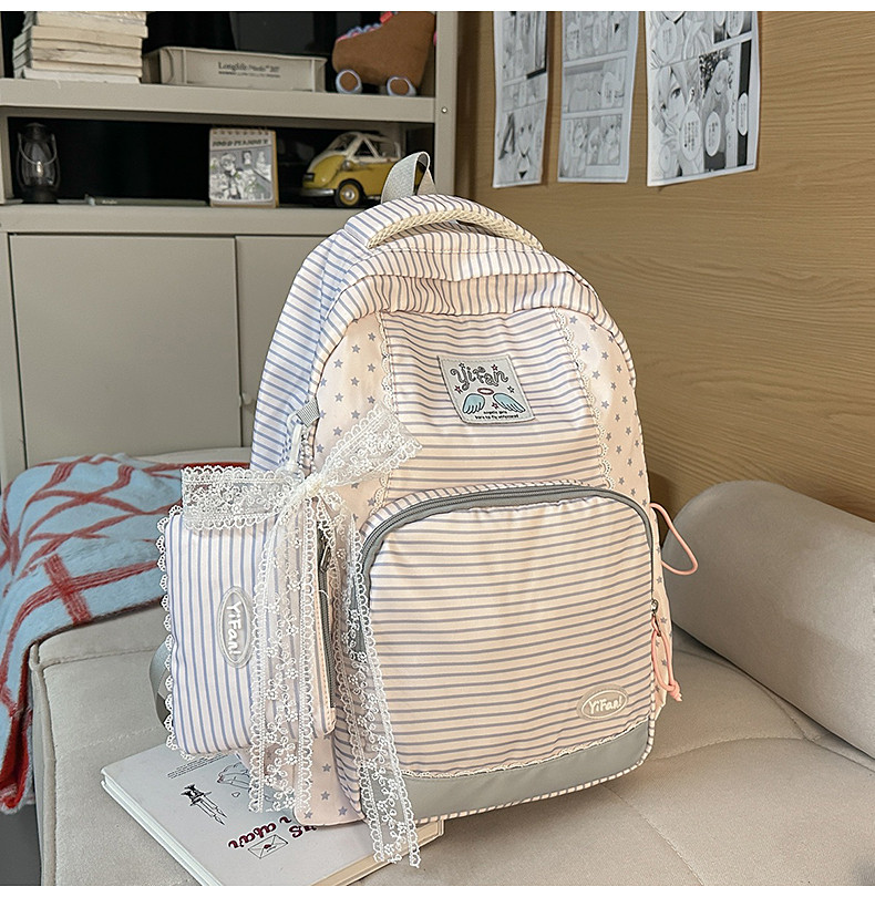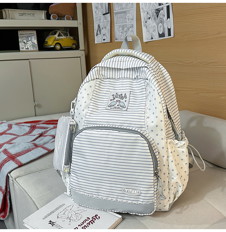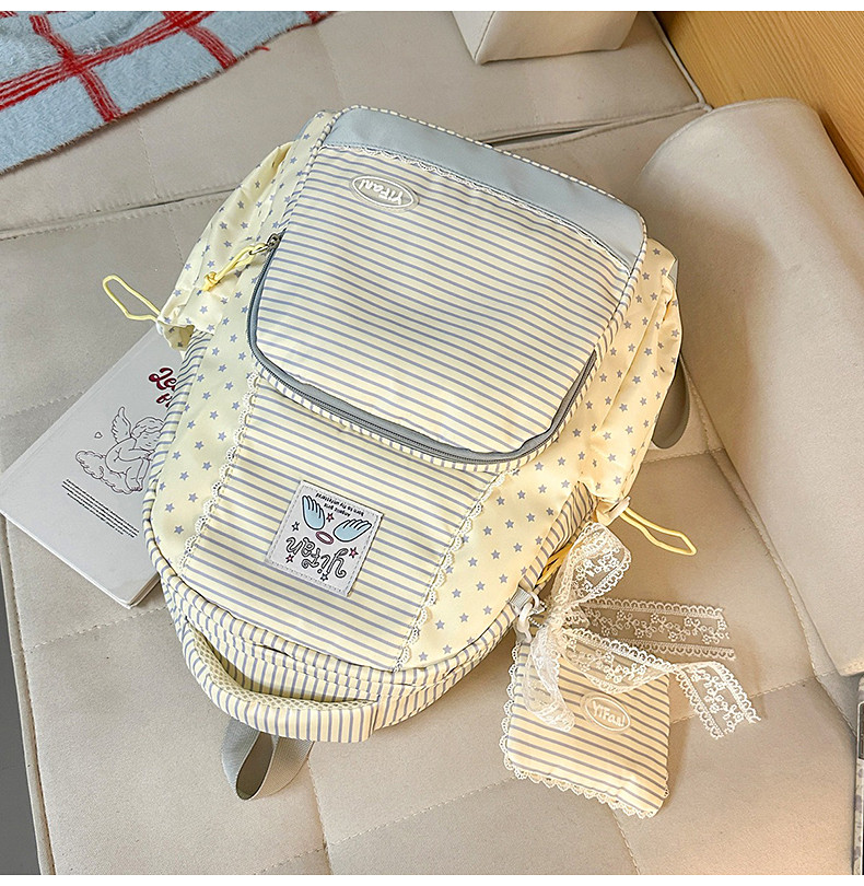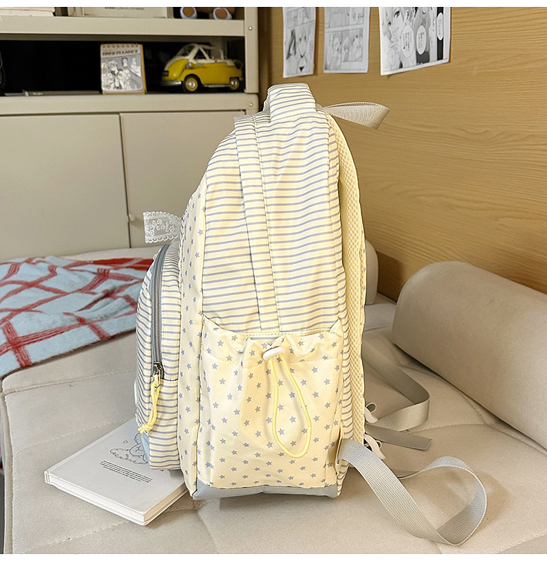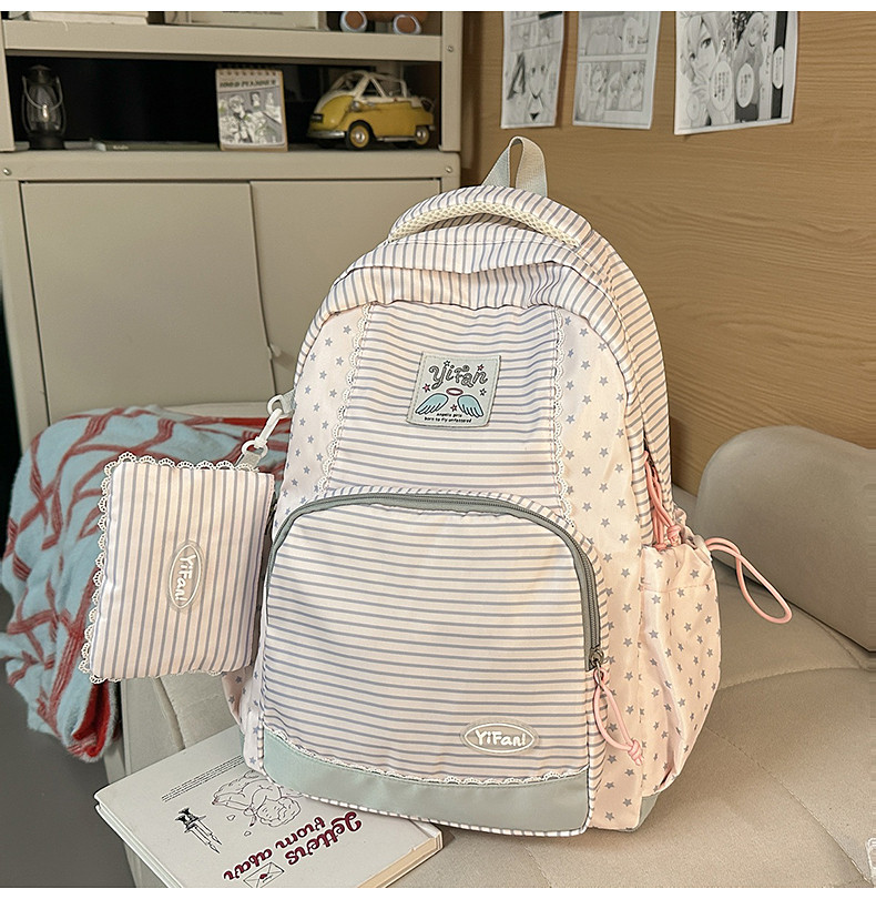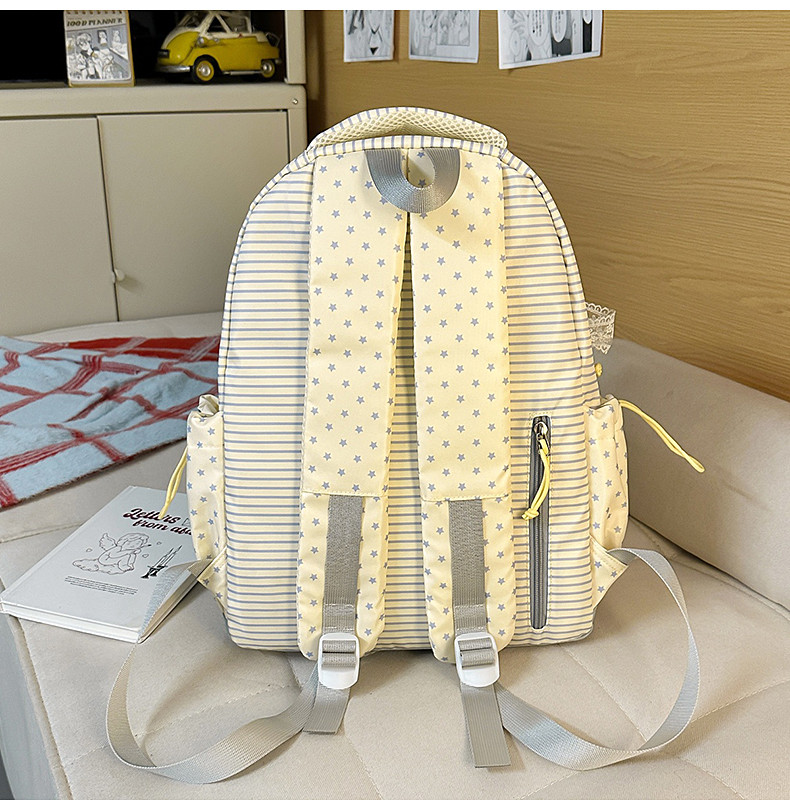 韓系ins風條紋星星雙肩包女學生大容量輕便書包復古後後背包