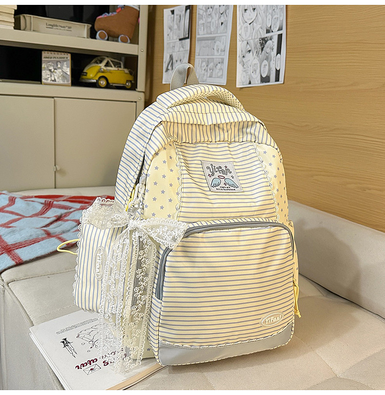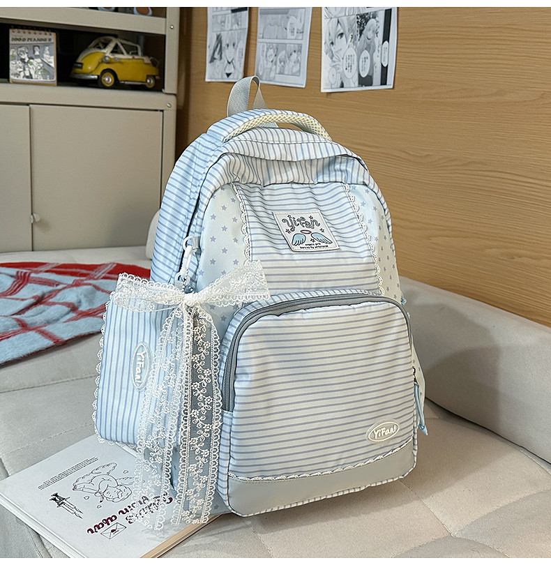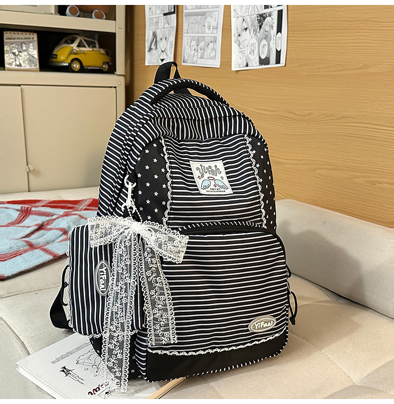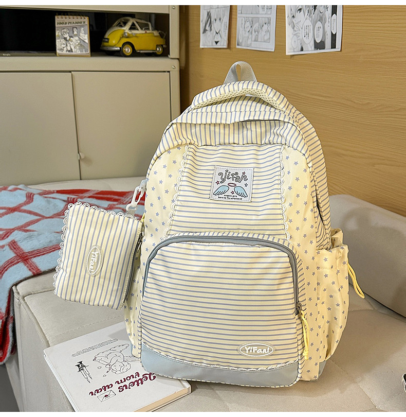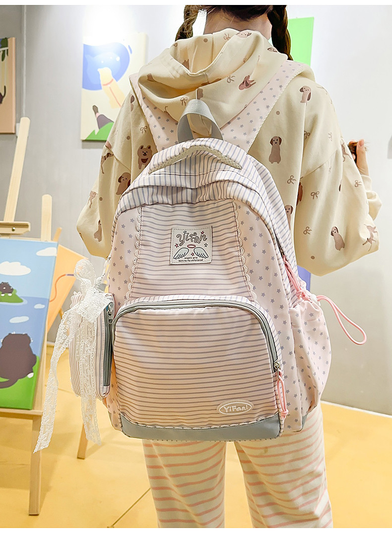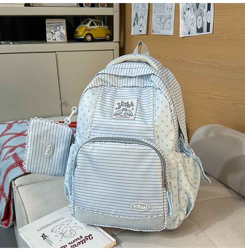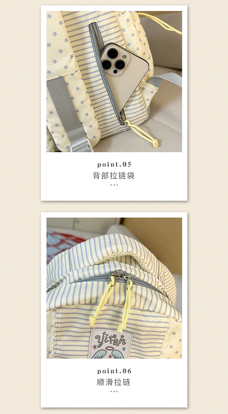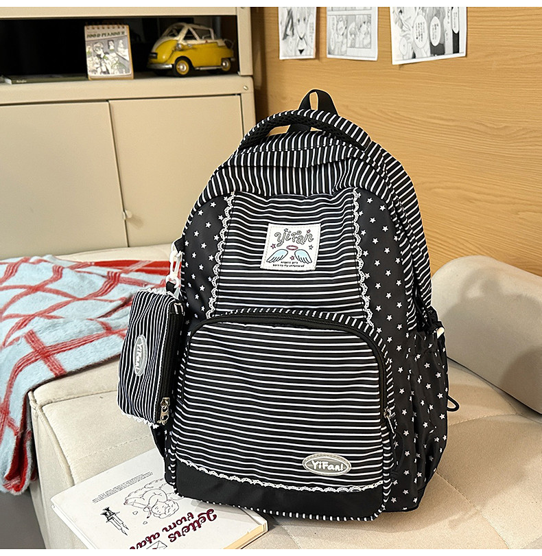 韓系ins風條紋星星雙肩包女學生大容量輕便書包復古後後背包