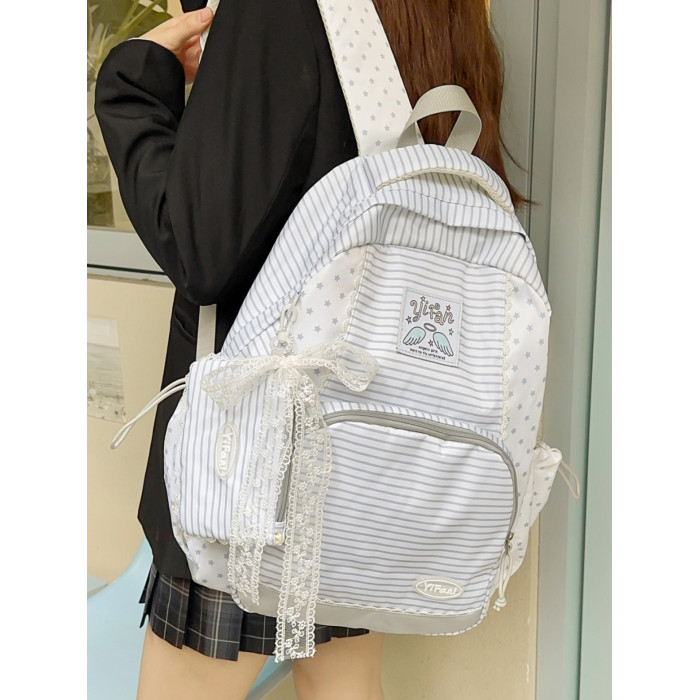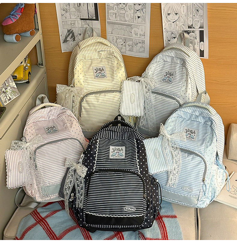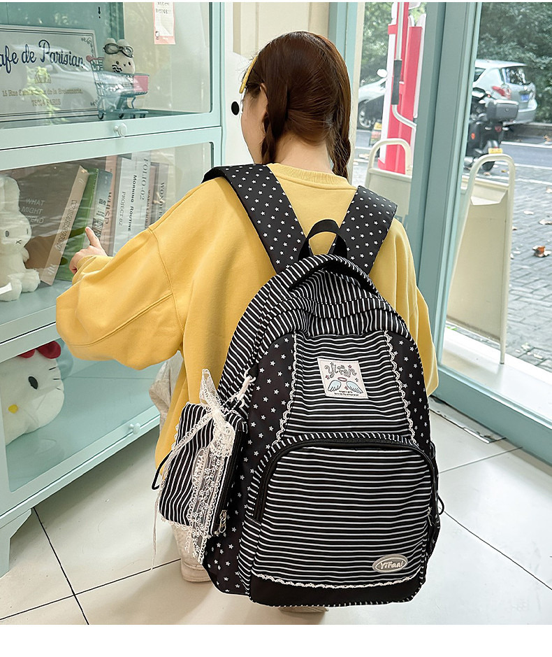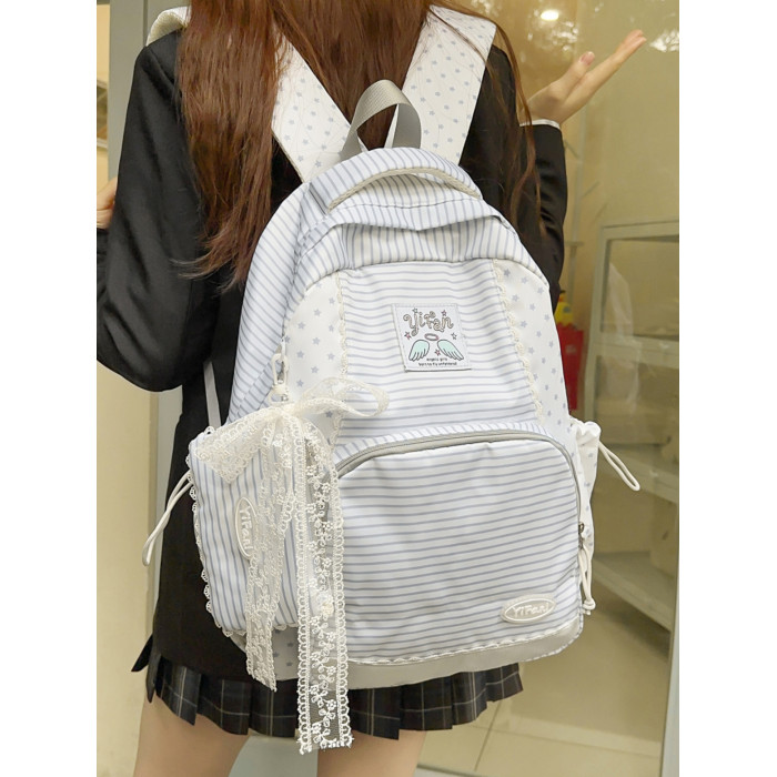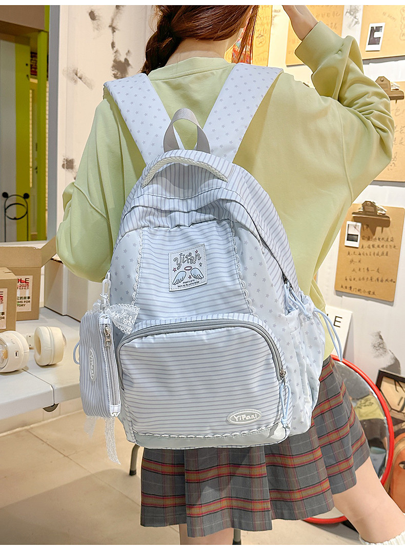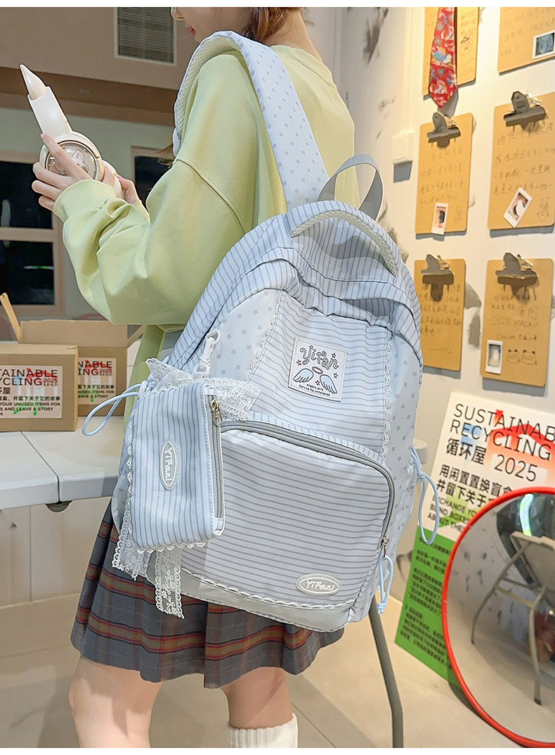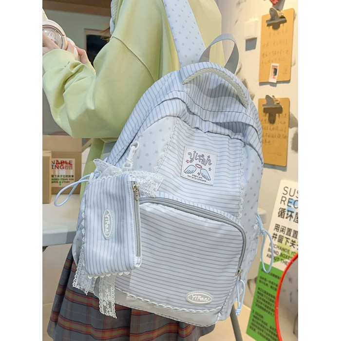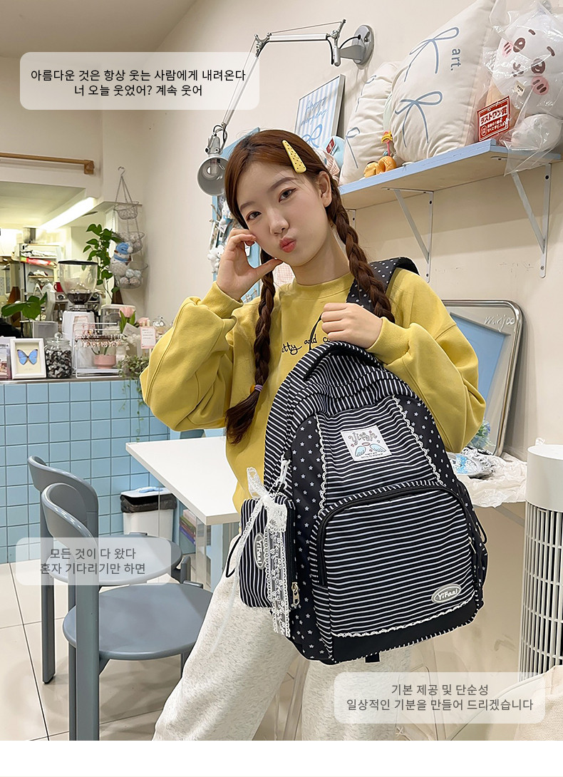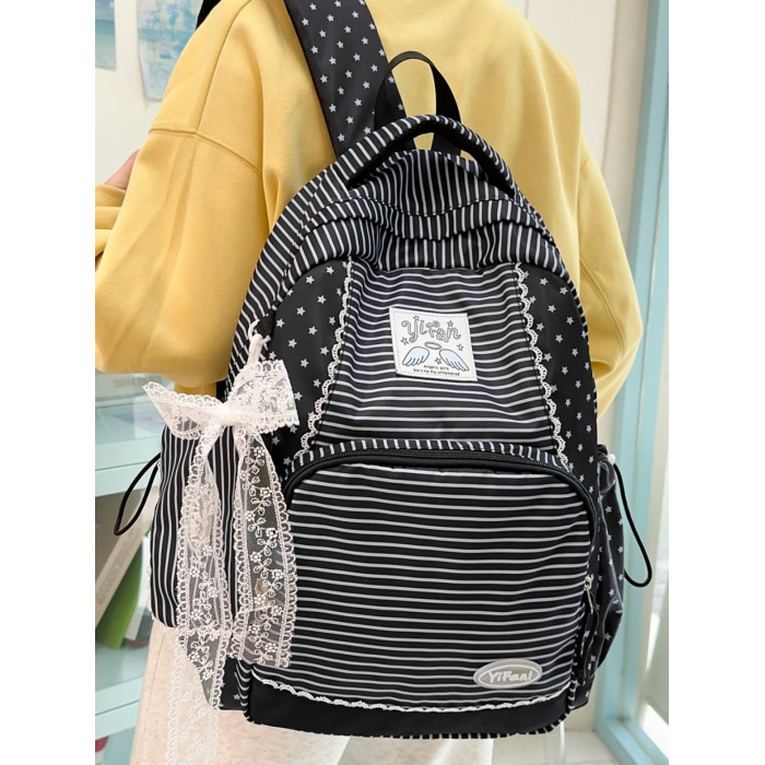 韓系ins風條紋星星雙肩包女學生大容量輕便書包復古後後背包