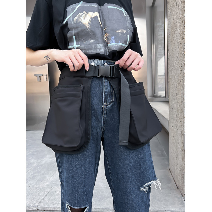 潮酷工裝多口袋實用腰包戶外騎行旅遊輕便貼身腰封圍裙包工具包