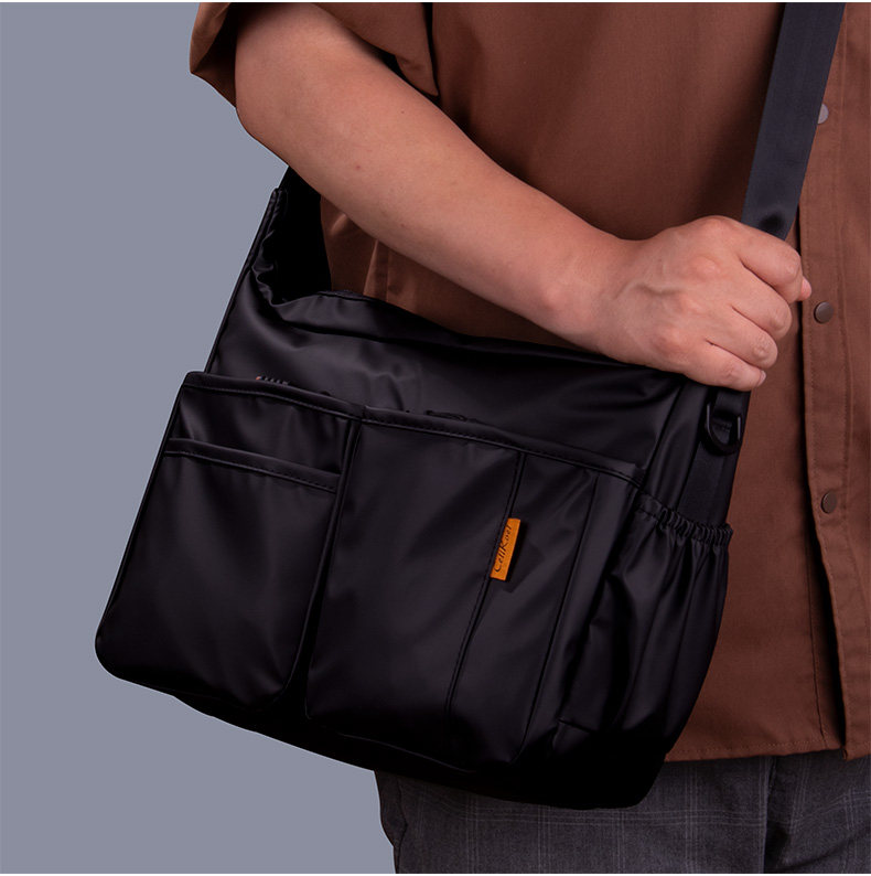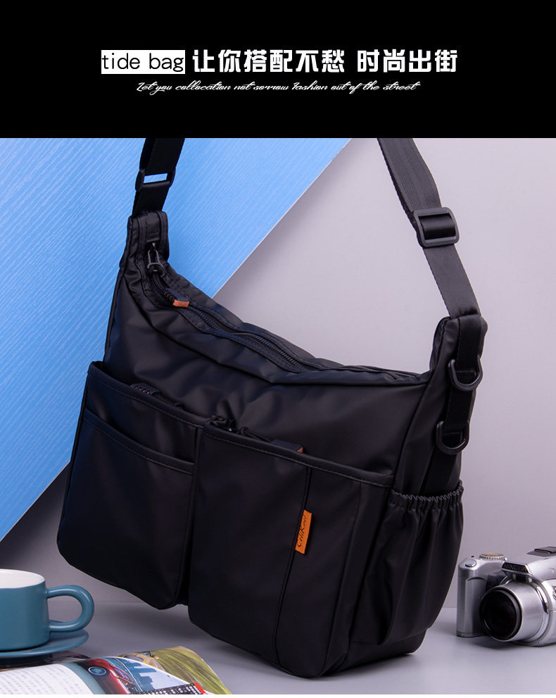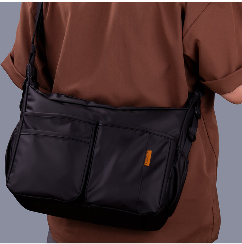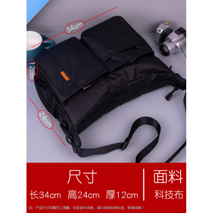 單肩包橫款大號斜後後背包男2024新款大容量男士後後背包休閒多功能帆布潮