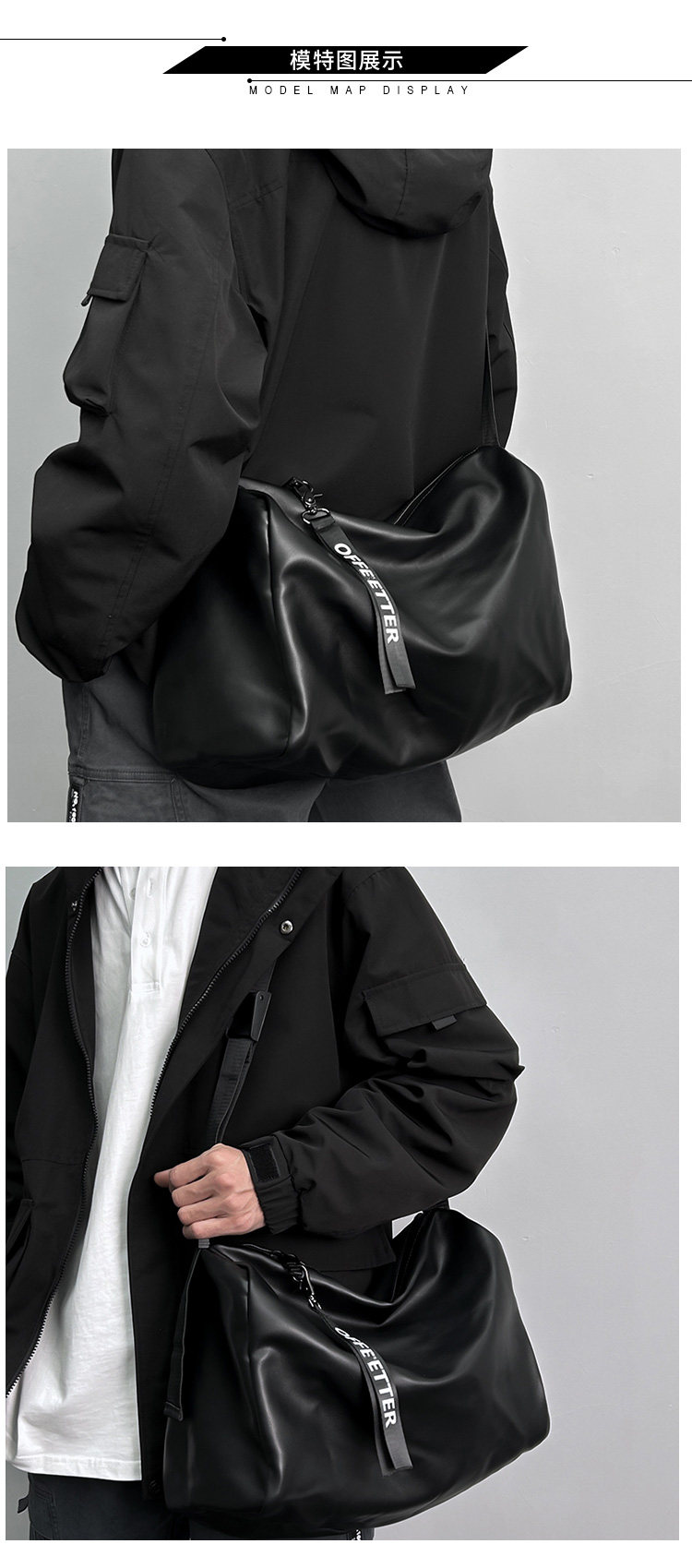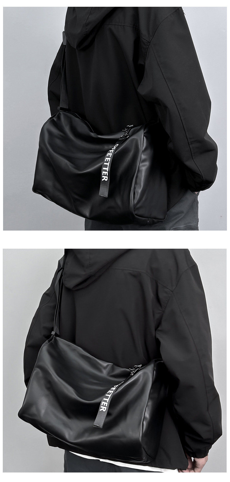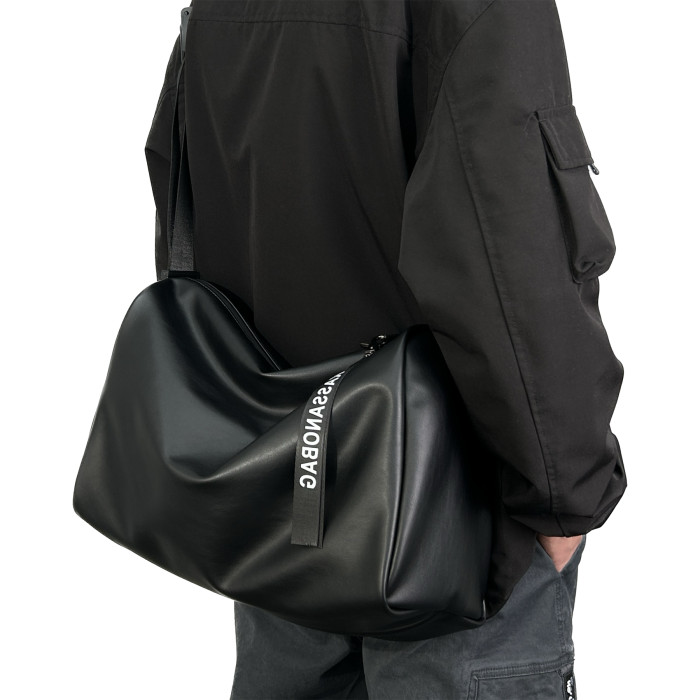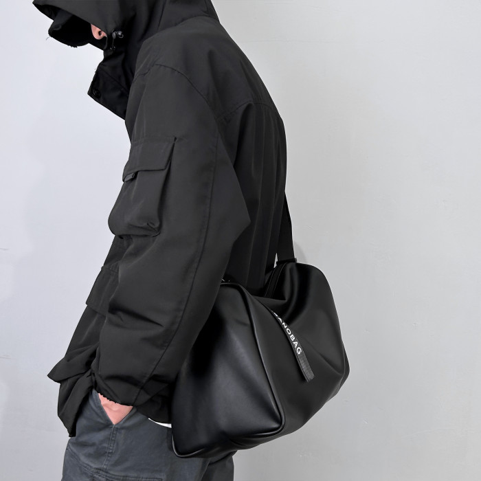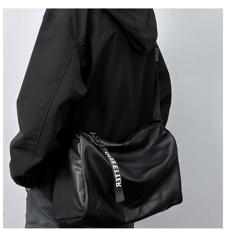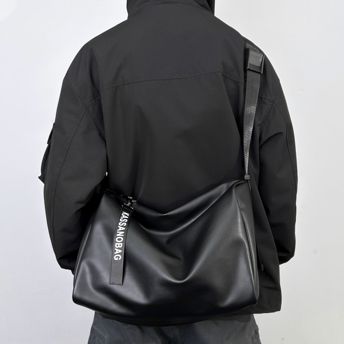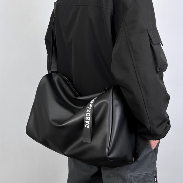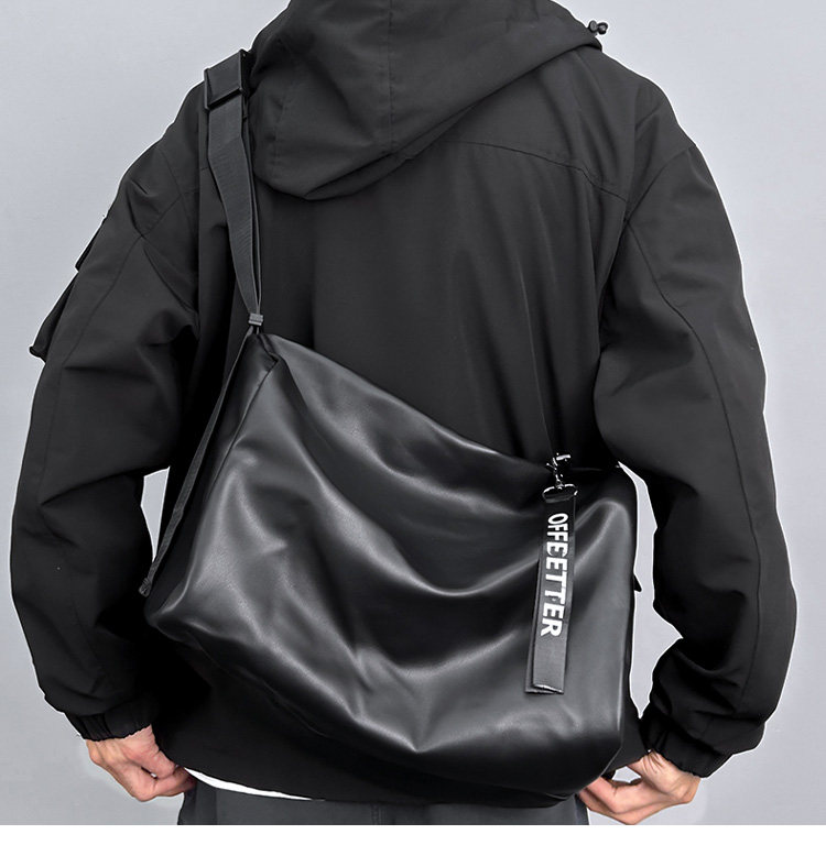 大容量斜後後背包男士後後背包2023新款休閒簡約軟皮單肩包男挎包健身包PU