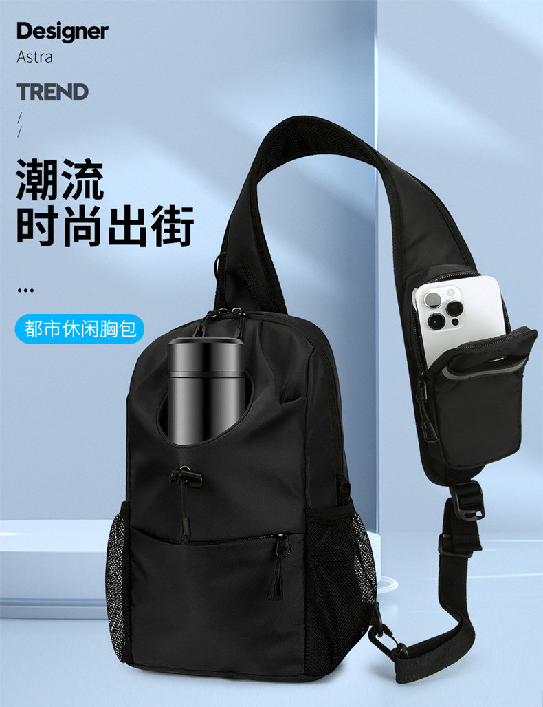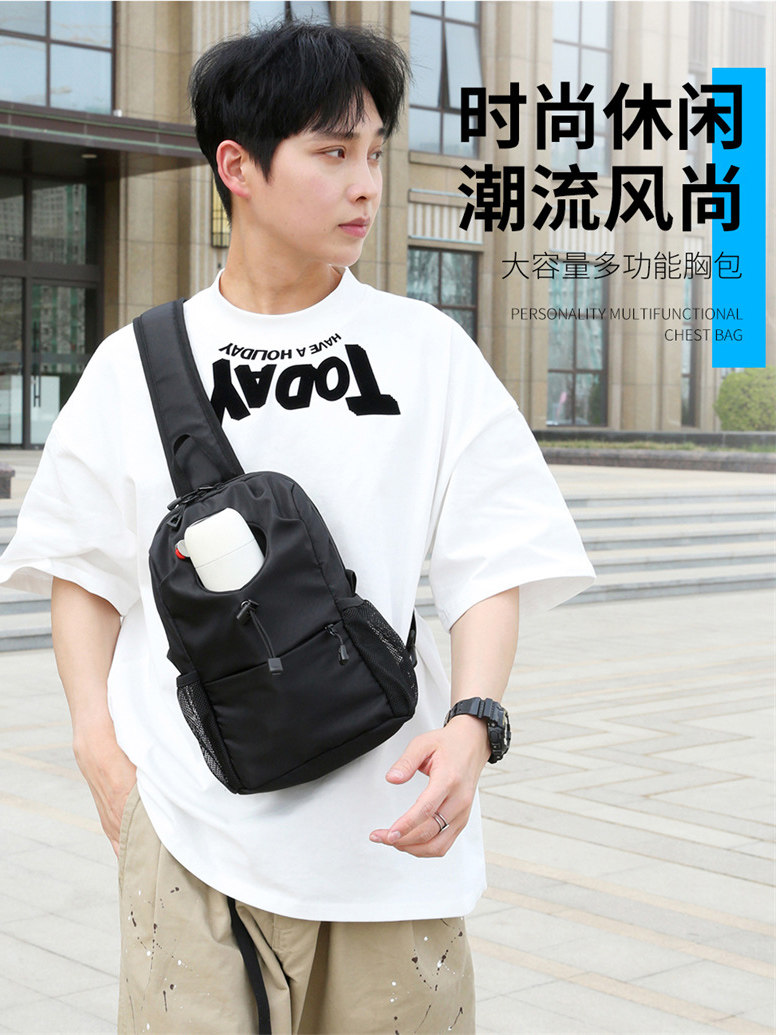 胸包斜後後背包男款胸前女生單肩包潮牌休閒多功能水杯水壺騎行小後後背包