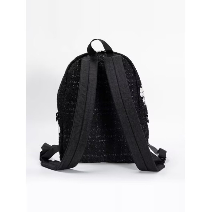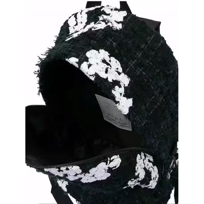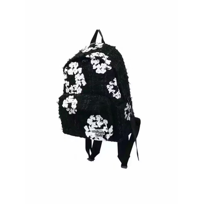 ReddymRde Denim Tedrs 聯名萬針木棉花黑白花卉萬針刺綉雙肩後後背包