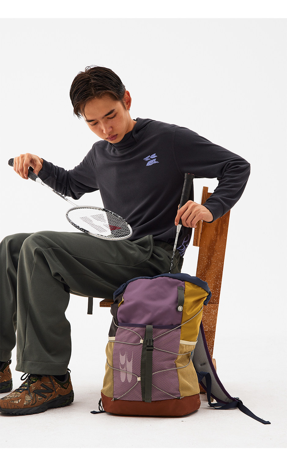 CryingCenter羽毛球網球秋冬美拉德多色拼接運動雙肩後後背包哭喊中心