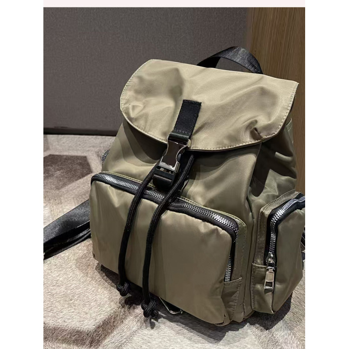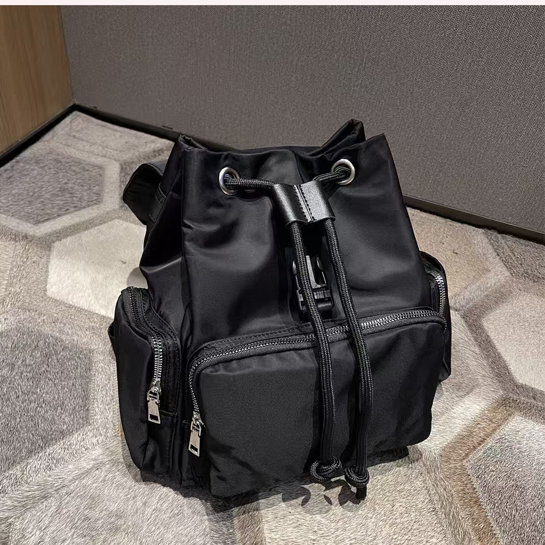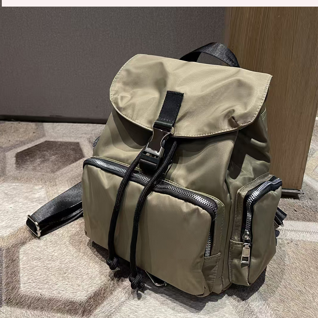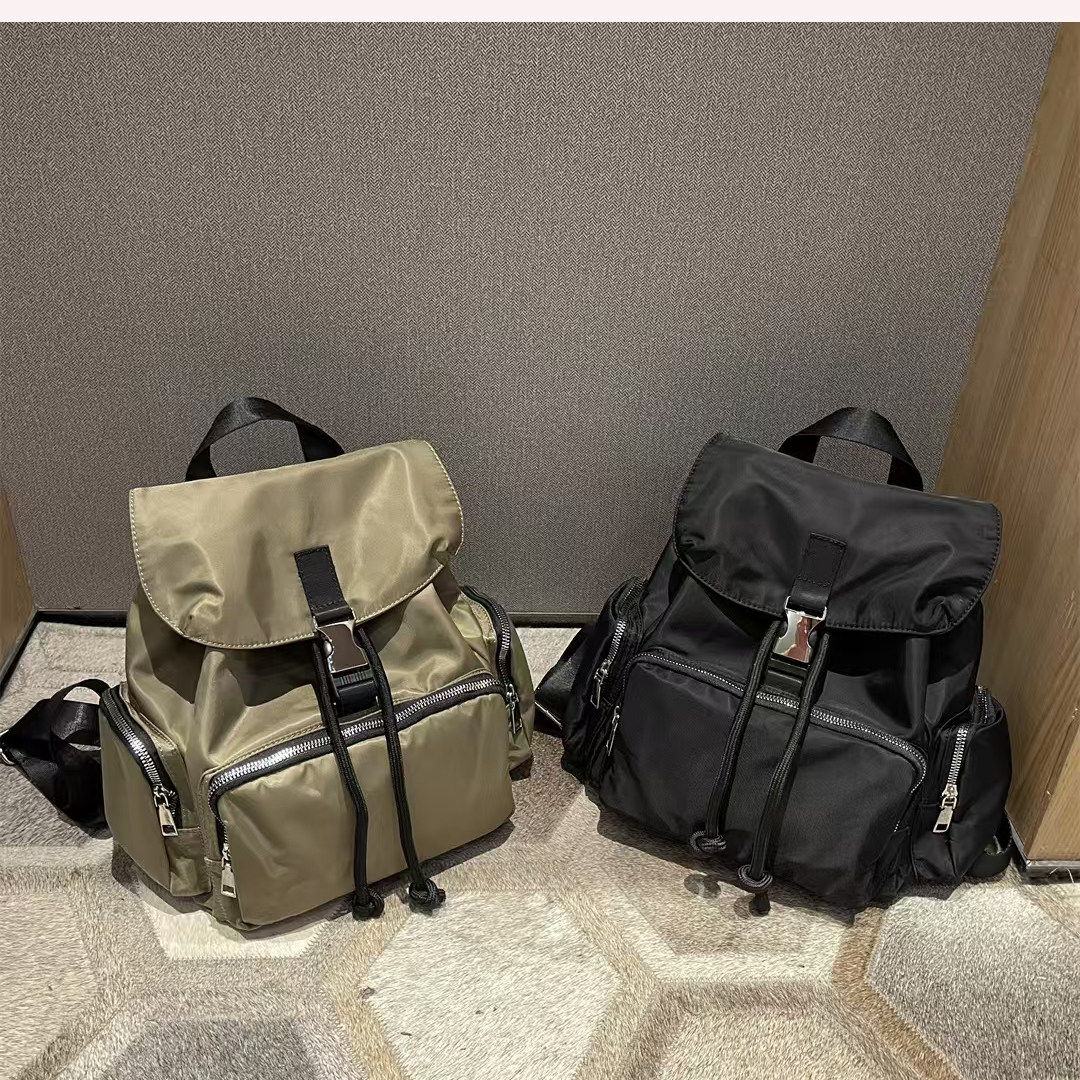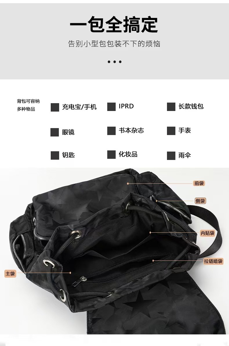2025新品工裝休閒尼龍布繙蓋後後背包百搭潑水抽繩旅行雙肩包學生後後背包