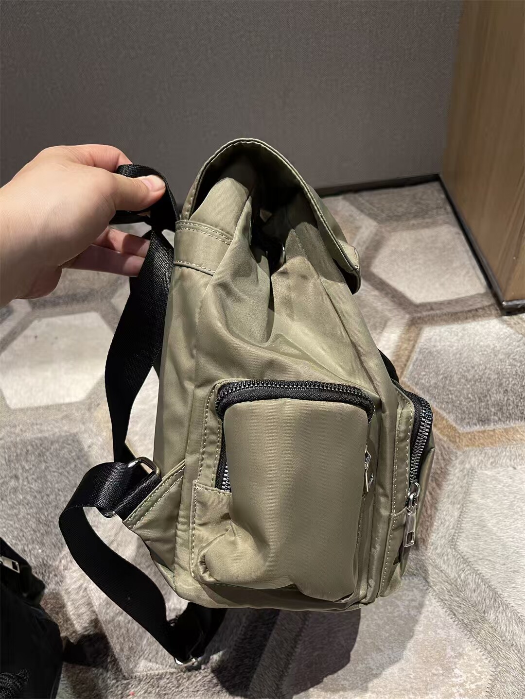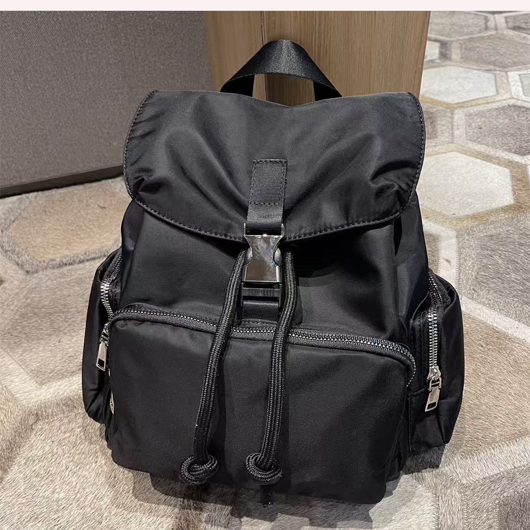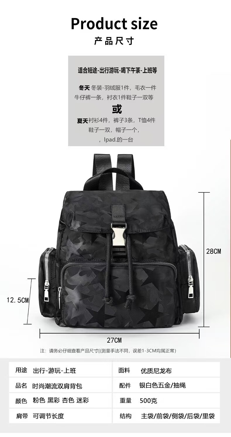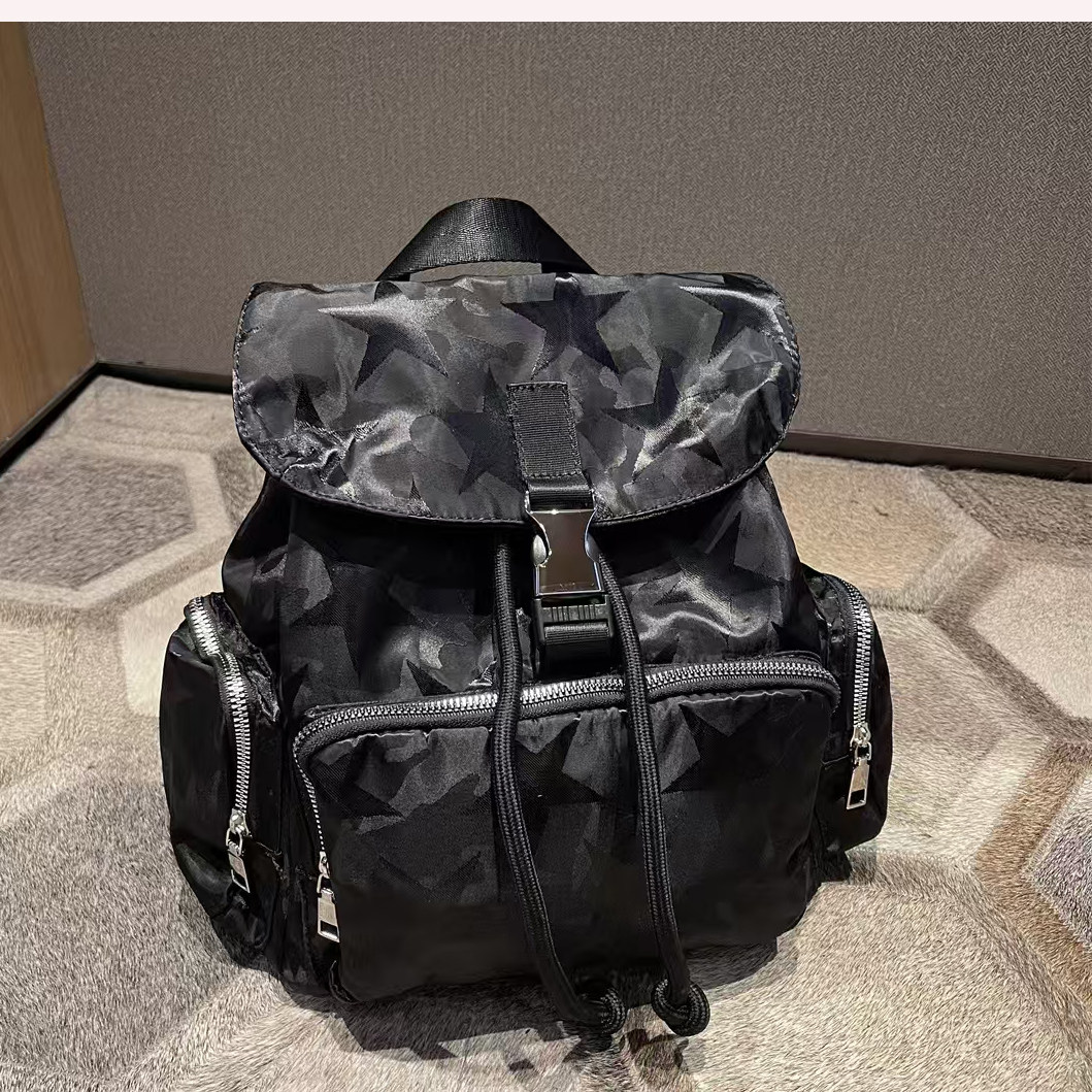 2025新品工裝休閒尼龍布繙蓋後後背包百搭潑水抽繩旅行雙肩包學生後後背包