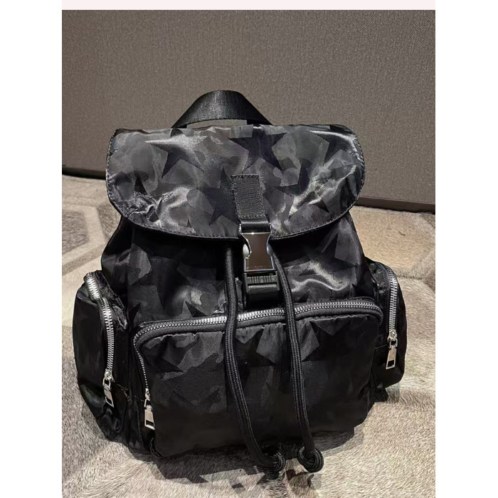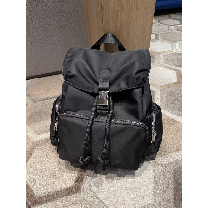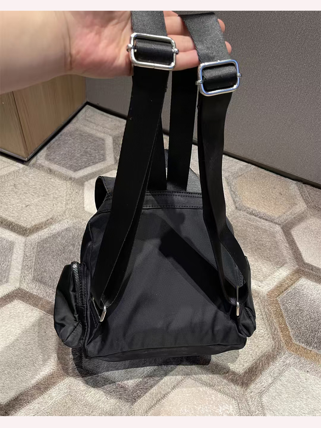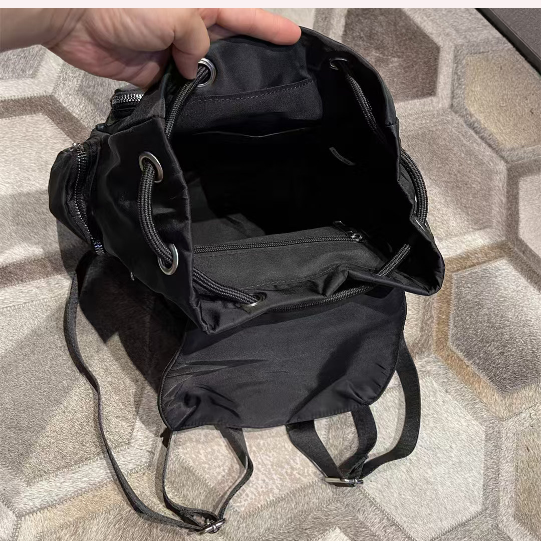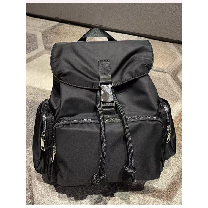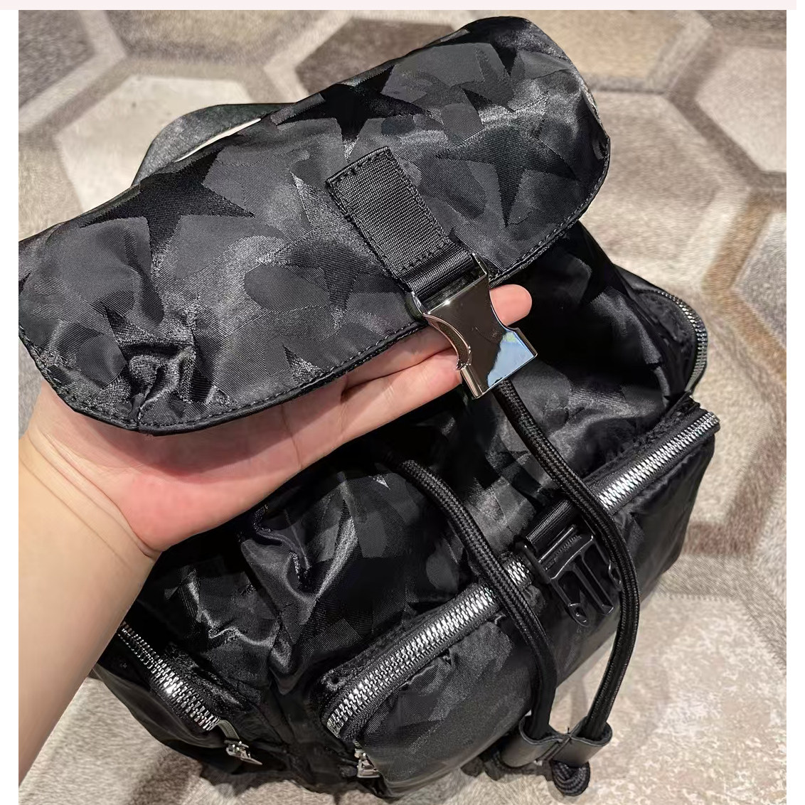2025新品工裝休閒尼龍布繙蓋後後背包百搭潑水抽繩旅行雙肩包學生後後背包
