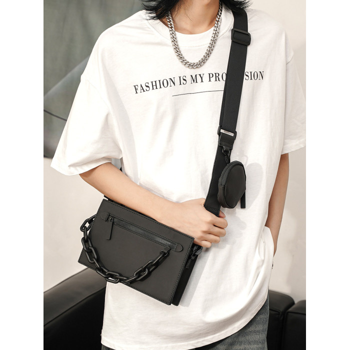 二合一男包潮牌盒子包鏈條小方包斜後後背包男小衆設計感單肩女信封包