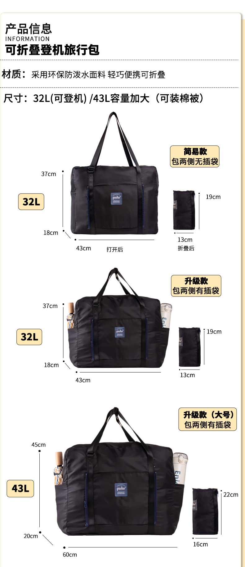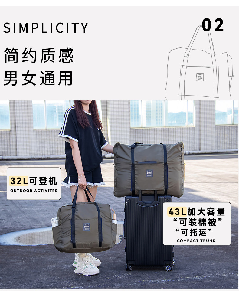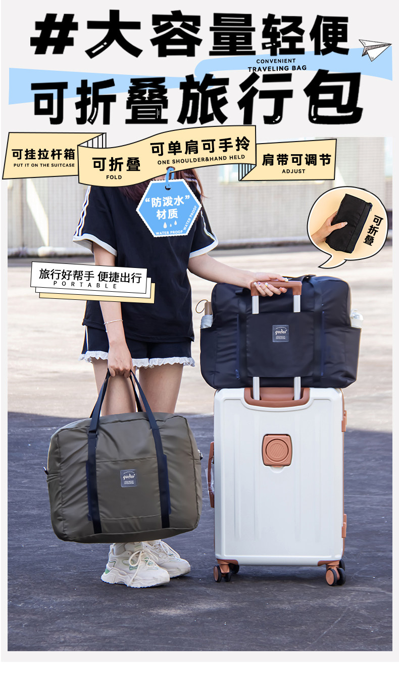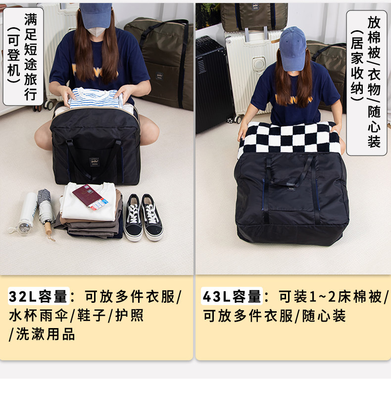 短途旅行包可折曡防水出差登機收納被子衣服大容量搬家旅遊行李袋