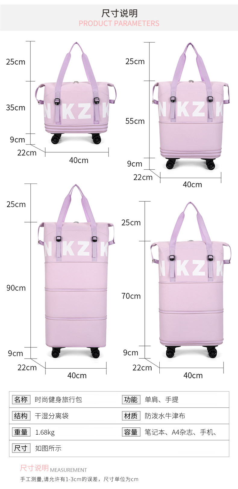 萬向輪雙肩背旅行包新款帶滑輪行李袋大容量學生背袋手提包登機包