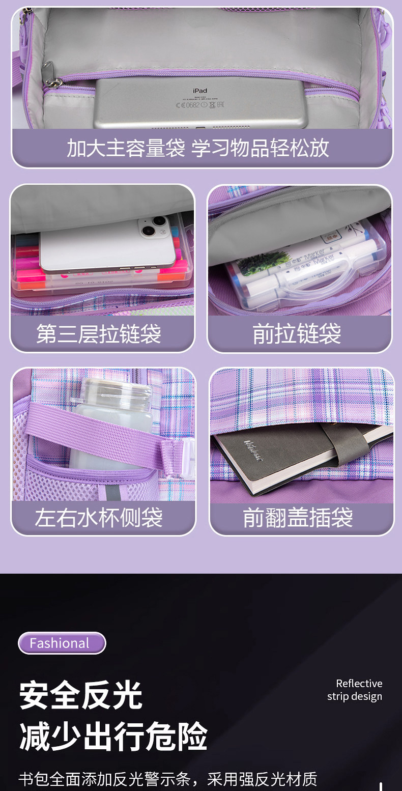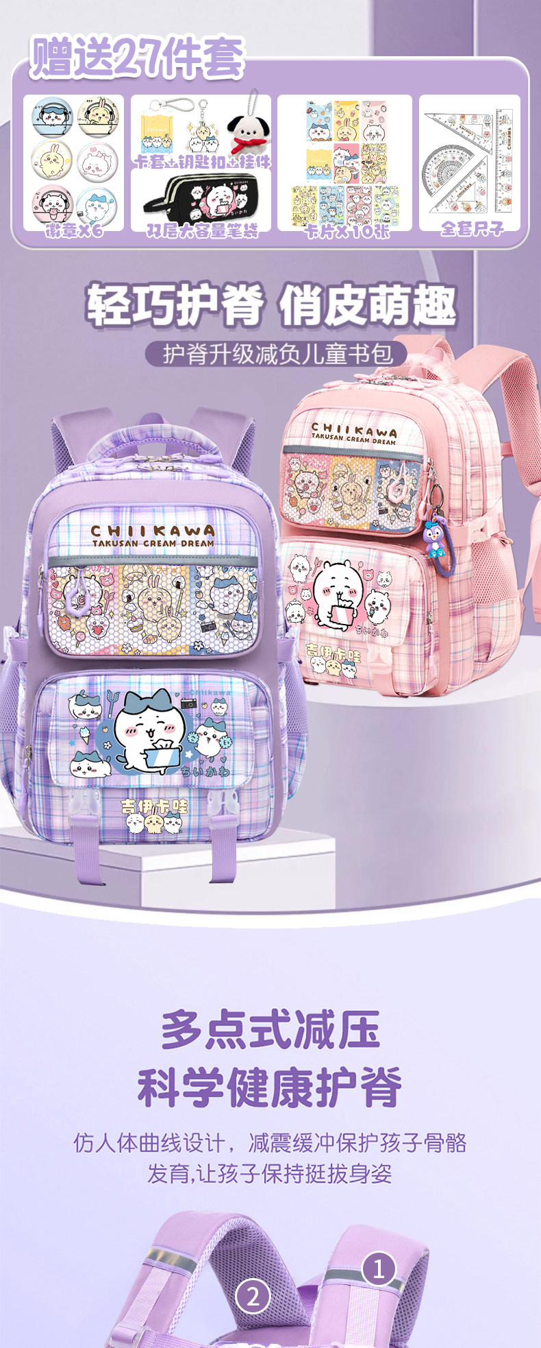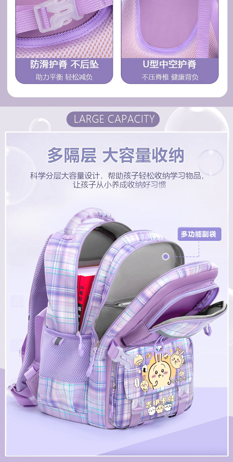 吉伊卡哇書包小學生女孩小八三到六年級初中大容量護脊減負雙肩包